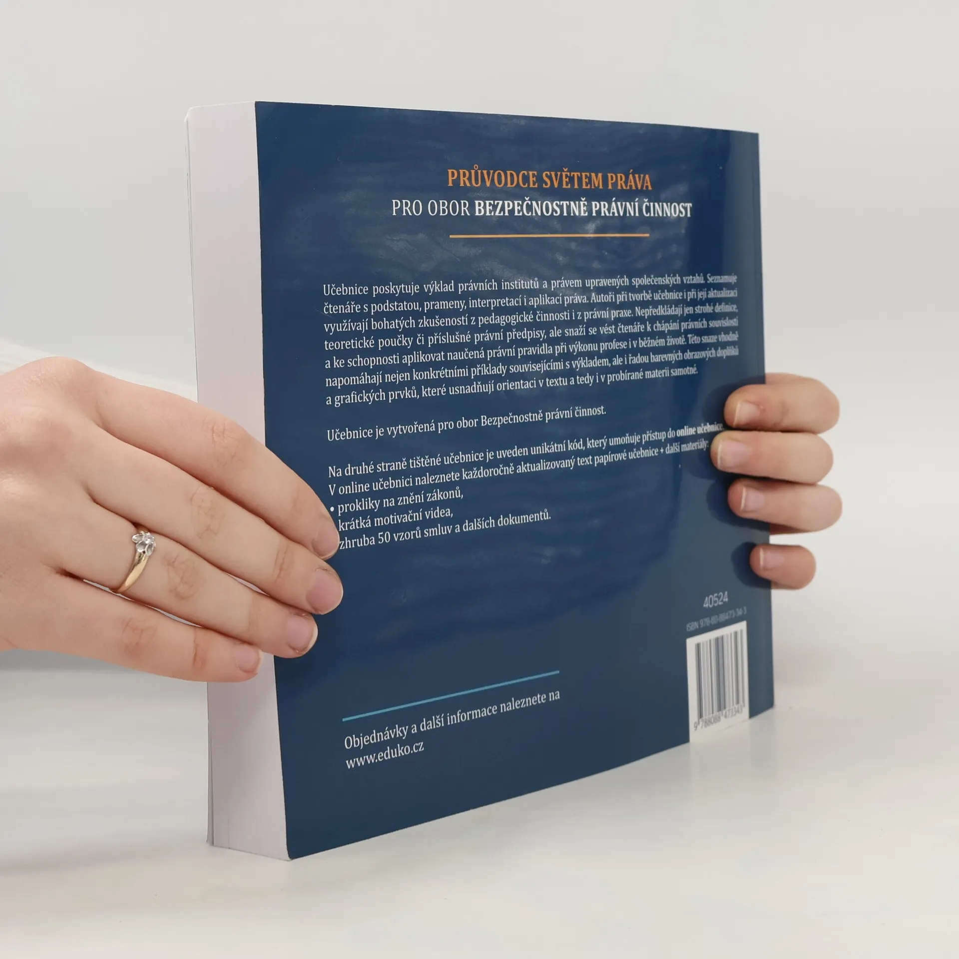 Barevná publikace je rozdělena na dvě velké části - na právo veřejné a na právo soukromé. Dále se pak člení do kapitol podle jednotlivých právních odvětví. Učebnice je vhodná zejména pro: - studenty středních škol s rozšířenou výukou práva, - studenty vyšších odborných škol právního zaměření, - všechny vyučující předmětu právo (společenské vědy), - širokou veřejnost. Na učebnici se podílelo 12 zkušených autorů. Vedoucím autorem části veřejnoprávní je JUDr. et PhDr. Jan Malast, Ph.D. a vedoucím autorem části soukromoprávní je JUDr. Karel Svoboda, Ph.D. Autoři nepředkládají jen strohé definice, teoretické poučky či příslušné právní předpisy, ale snaží se vést čtenáře k chápání právních souvislostí a ke schopnosti aplikovat naučená právní pravidla v praxi. Této snaze vhodně napomáhají nejen konkrétními příklady souvisejícími s výkladem, ale i řadou barevných obrazových doplňků a grafických prvků, které usnadňují orientaci v textu a tedy i v probírané materii samotné.