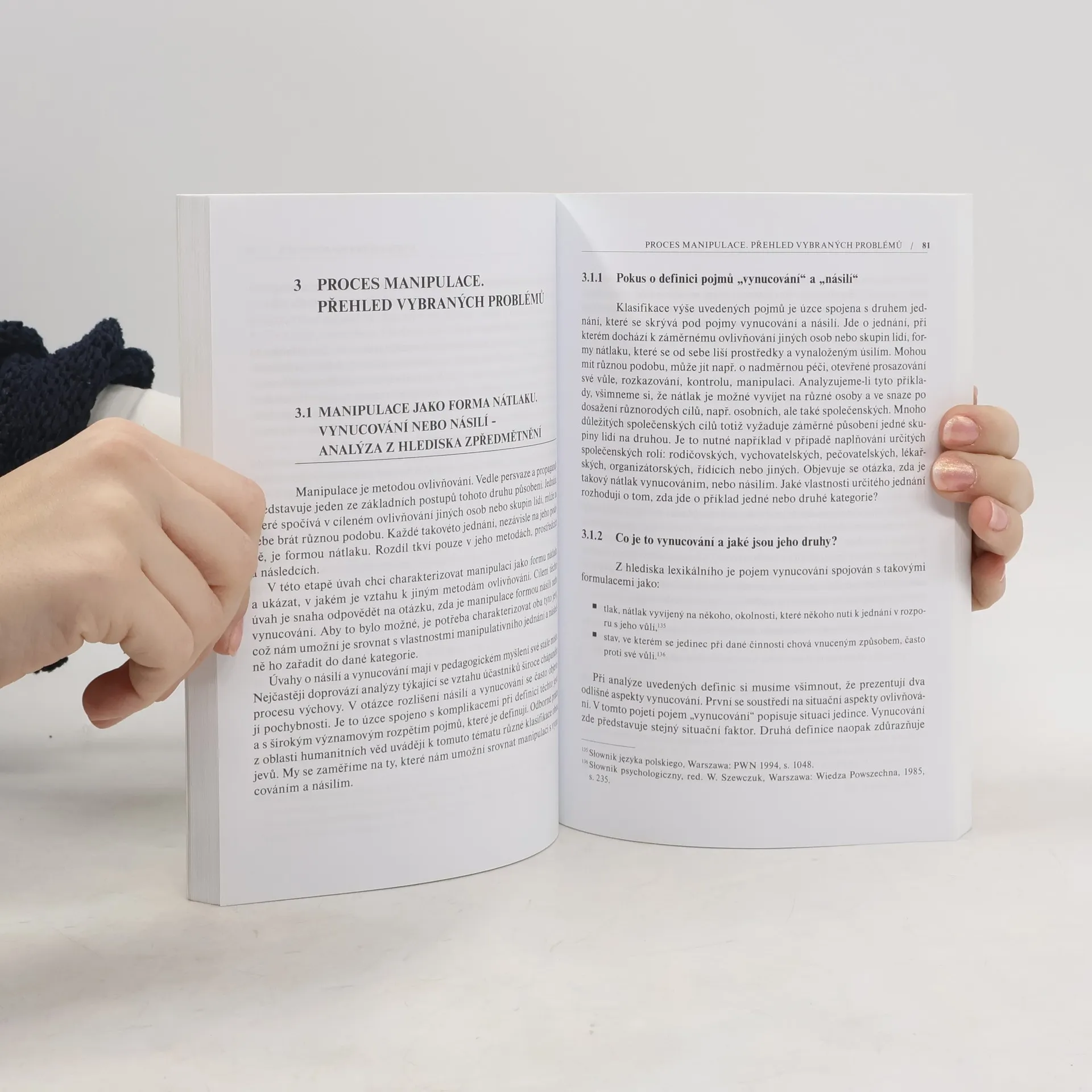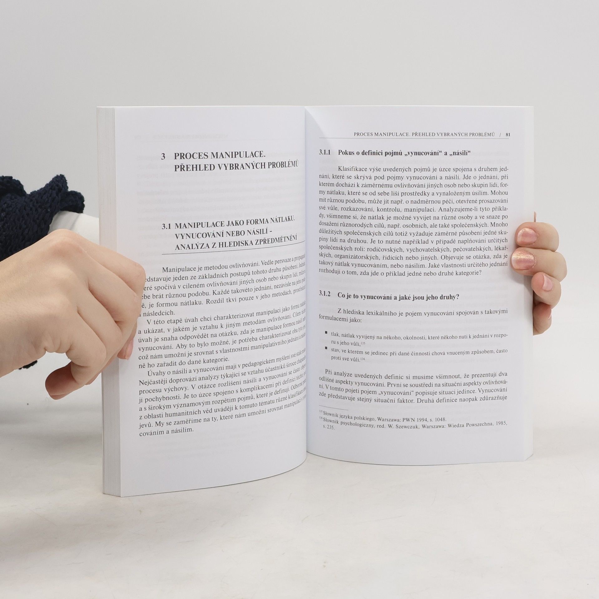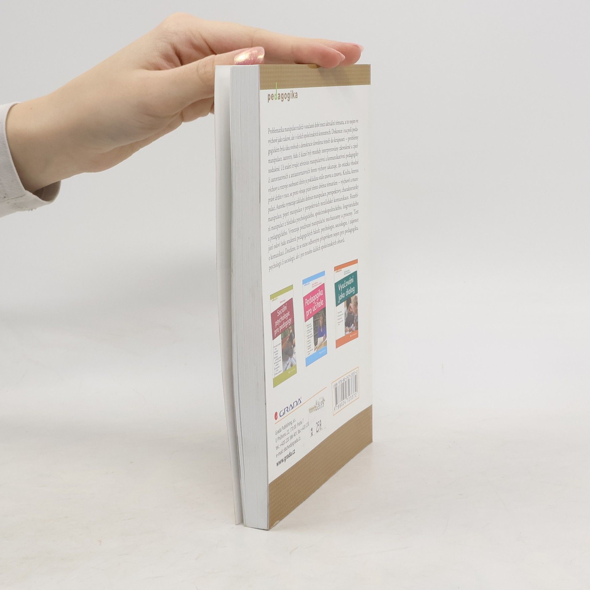 Teoretická studie věnovaná tématu manipulace se zaměřuje zejména na specifickou problematiku manipulativních metod v oblasti pedagogiky. Český překlad doktorské práce, která shrnuje výsledky bádání a analýz v oblasti manipulace se zaměřením na pedagogické kontexty. Autorka ozřejmuje podstatu manipulativního jednání, popisuje manipulativní mechanismy, charakterizuje manipulaci jako formu nátlaku a zabývá se vztahem manipulace k jiným metodám ovlivňování. Přibližuje téma manipulace ve výchovné skutečnosti (totalitární model výchovy v protikladu k pojetí výchovy v emancipační pedagogice). Práce zaujme studenty pedagogických fakult či studenty psychologie a sociologie.