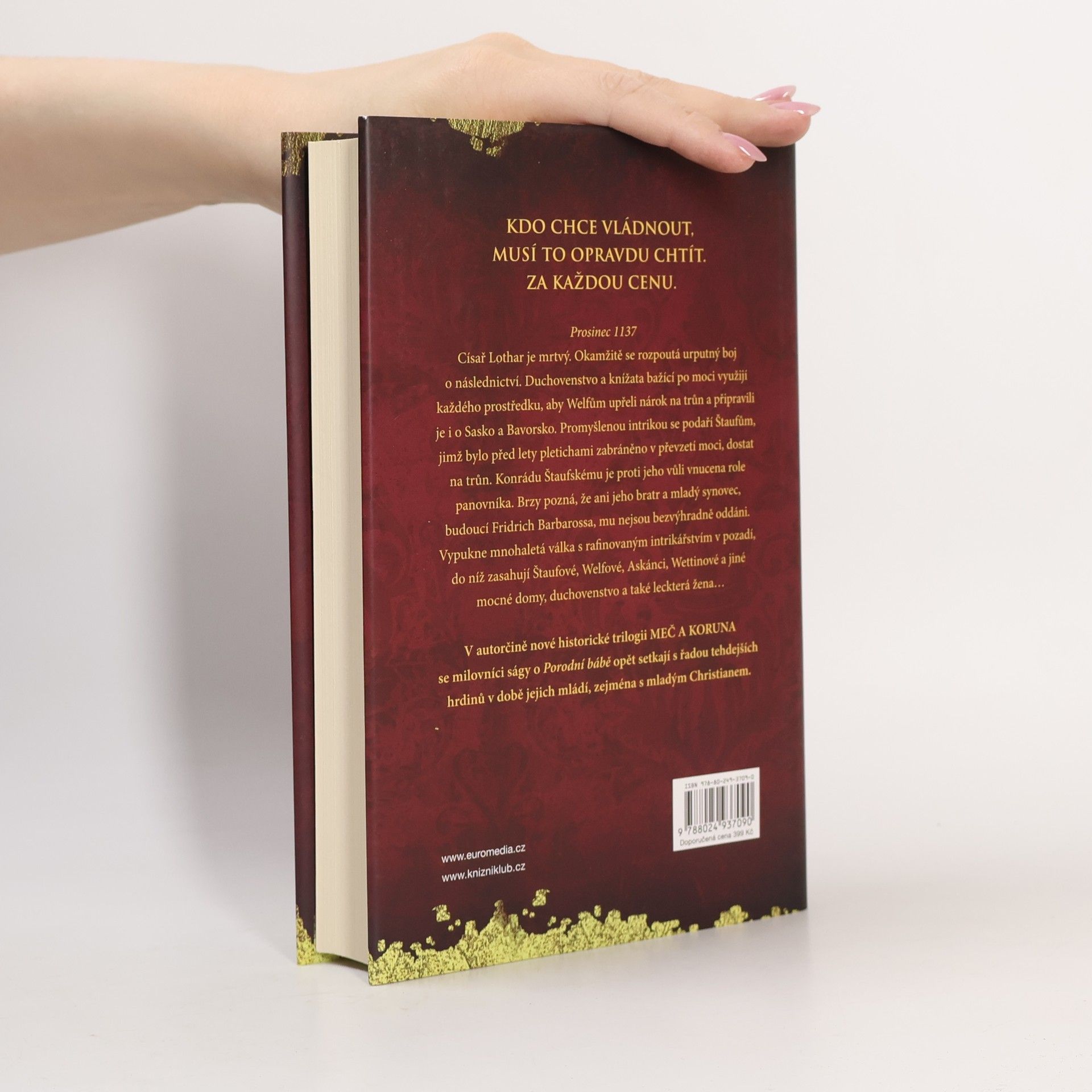 Začátek nevšední středověké trilogie MEČ A KORUNA dějově volně předchází pentalogii o Porodní bábě. Mistr mystifikace je úvod epické ságy, v níž nás autorka zavádí do pohnutých časů 12. století. Po smrti císaře Lothara v roce 1137 bojují Štaufové a Welfové o trůn, zatímco Askánci, Wettinové a jiné vlivné šlechtické rody se snaží udržet a rozšířit svá mocenská postavení. Nikdo z nich se neštítí jakéhokoli prostředku k dosažení svého cíle: intrik, zrady, vynucených manželských svazků ani otevřené války. Vazalové se musí rozhodnout, na kterou stranu se postaví, mladičké dívky jsou zavlečeny jako záruka věrnosti, některé ženy mají strach, jiné naopak v sobě najdou sílu se prosadit. Sledujeme vzestup Fridricha Barbarossy v nejmocnějšího panovníka středověku i pohnutý osud mladičké Kunigundy z Plötzkau, která musí překonat sama sebe. Milovníci historické ságy Sabine Ebertové o Porodní bábě se v této nové trilogii setkají s řadou tehdejších protagonistů v době jejich mládí, zejména s mladým Christianem.