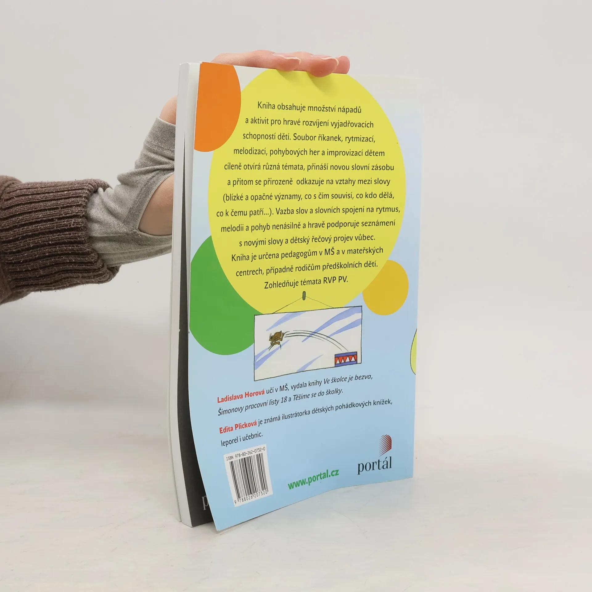 Hry a aktivity pro rozvoj vyjadřovacích dovedností předškolních dětí. Množství nápadů a aktivit pro hravé rozvíjení vyjadřovacích schopností dětí. Soubor říkanek, rytmizací, melodizací, pohybových her a improvizací dětem cíleně otvírá různá témata, přináší slovní zásobu, odkazuje se přitom přirozeně na vztahy mezi slovy (blízké a opačné významy, co s čím souvisí, co kdo dělá, co k čemu patří…). Vazba slov a slovních spojení na rytmus, melodie a pohyb přirozeně a hravě podporují seznámení s novými slovy a dětský řečový projev vůbec. Knížka je určena pedagogům v MŠ, v mateřských centrech, případně rodičům předškolních dětí. Zohledňuje témata RVP PV. Aktivity lze zařazovat ve větších celcích či vybírat jednotlivé nápady.
