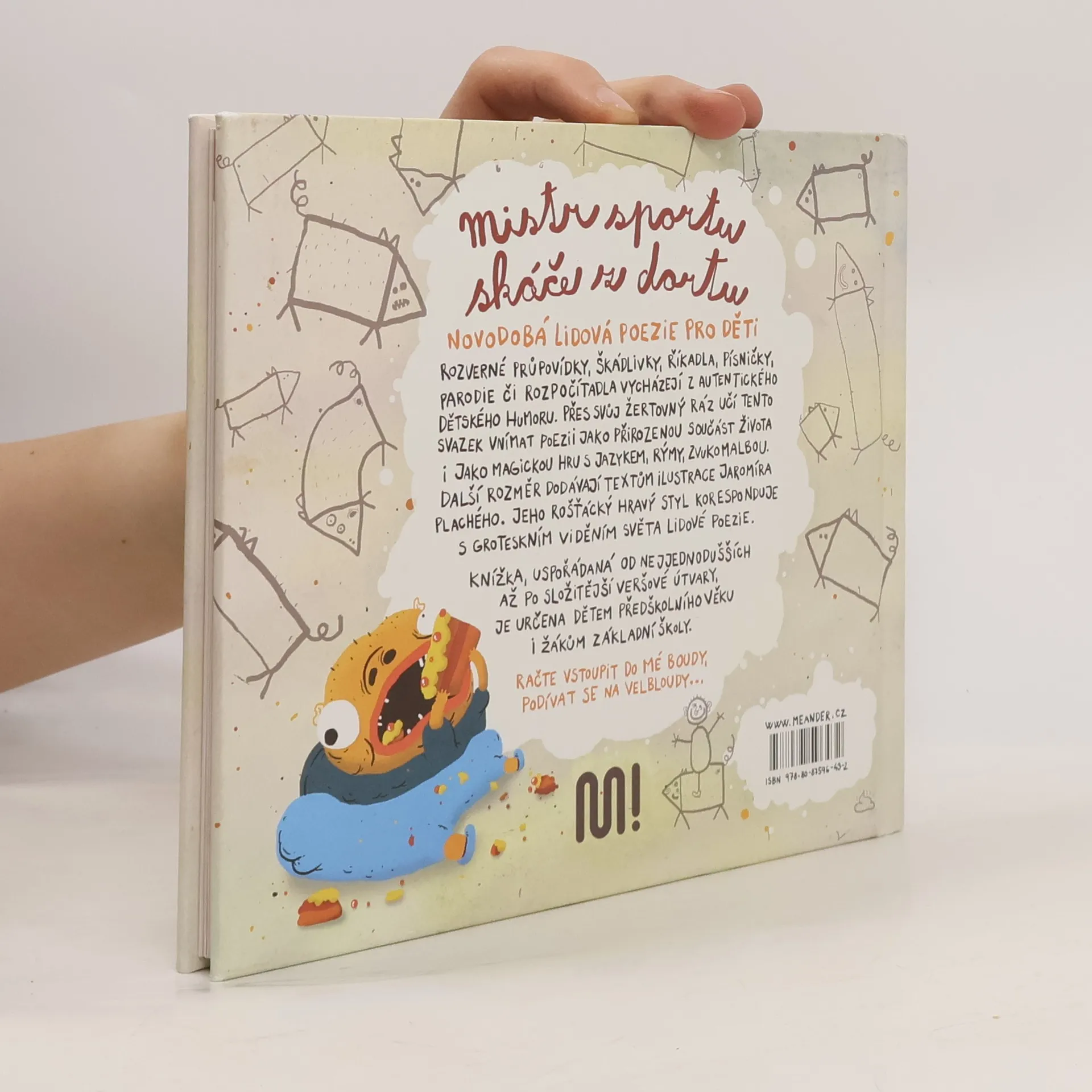 Podtitul: Říkadla, básničky, písničky a jiné srandičky Soubor novodobé lidové poezie pro děti Rozverné průpovídky, škádlivky, říkadla, písničky, parodie či rozpočítadla vycházejí často přímo z autentického dětského humoru. Přes svůj žertovný ráz učí tento svazek vnímat poezii jako přirozenou součást života i jako magickou hru s jazykem, rýmy, zvukomalbou Další rozměr dodávají textům ilustrace Jaromíra Plachého. Jeho rošťácký hravý styl koresponduje s groteskním viděním světa lidové poezie. Knížka, uspořádaná od nejjednodušších až po složitější veršové útvary, je určena dětem předškolního věku i žákům základní školy. Račte vstoupit do mé boudy, podívat se na velbloudy...