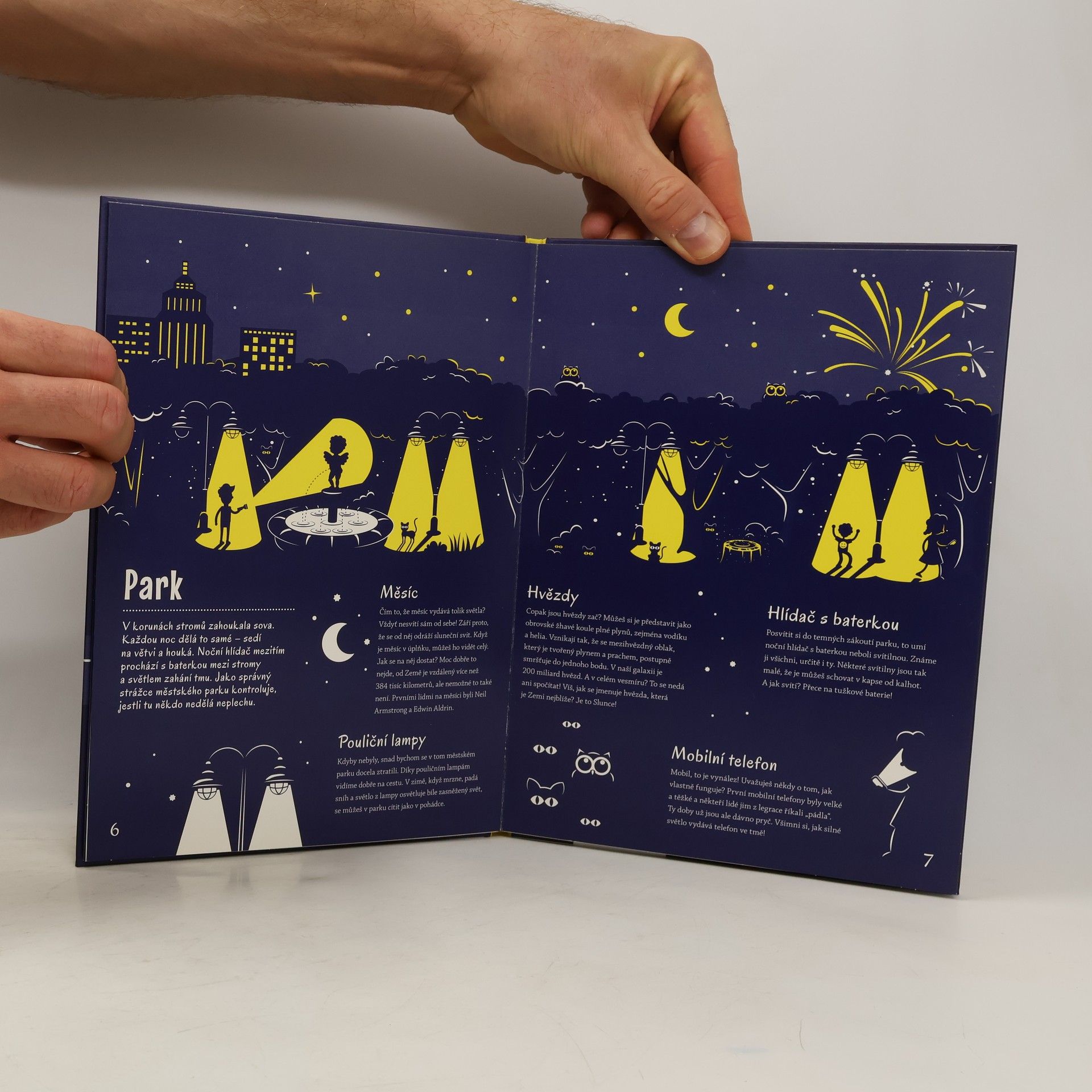 Je jen málo knih, které září. Město v noci a Příroda v noci. Knížky, které si můžeš prohlížet ve tmě. Přečti si je, nasviť lampičkou, a pak zhasni…