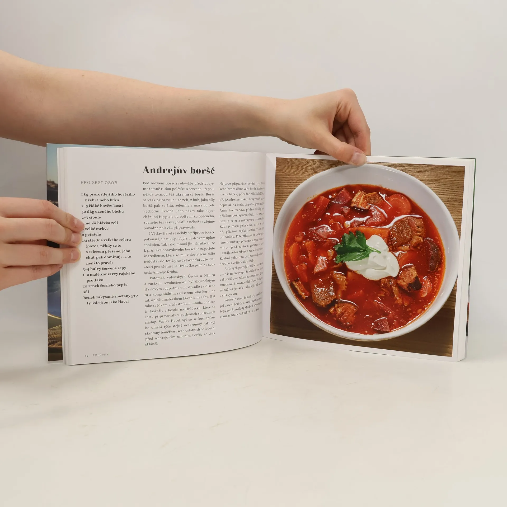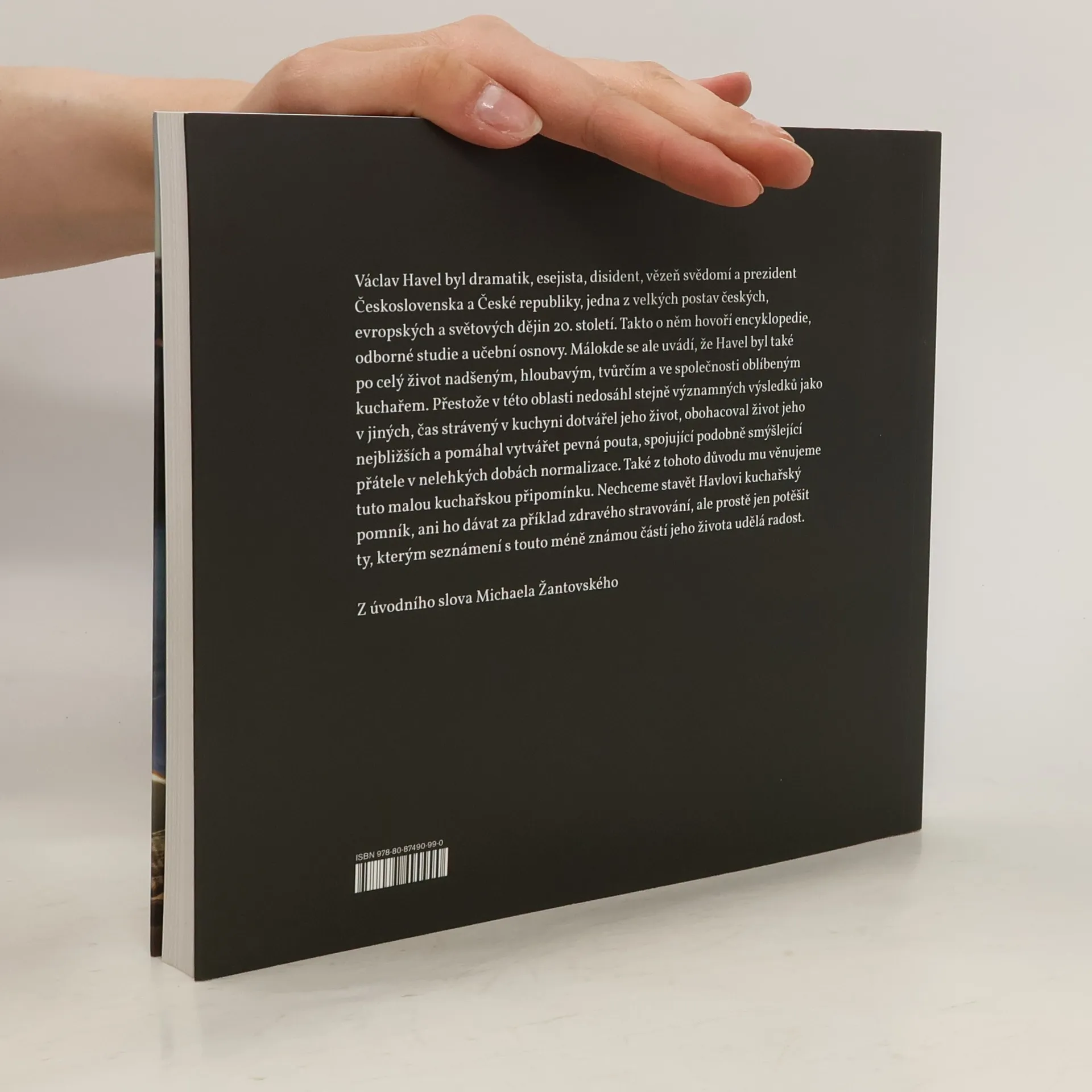 Kniha receptů spjatých s Václavem Havlem – ať už v roli spokojeného strávníka či po všech stránkách svébytného kuchaře. Václav Havel byl dramatik, esejista, disident, vězeň svědomí a prezident Československa a České republiky, jedna z velkých postav českých, evropských a světových dějin 20. století. Takto o něm hovoří encyklopedie, odborné studie a učební osnovy. Málokde se ale uvádí, že Havel byl také po celý život nadšeným, hloubavým, tvůrčím a ve společnosti oblíbeným kuchařem. Přestože v této oblasti nedosáhl stejně významných výsledků jako v jiných, čas strávený v kuchyni dotvářel jeho život, obohacoval život jeho nejbližších a pomáhal vytvářet pevná pouta, spojující podobně smýšlející přátele v nelehkých dobách normalizace. Také z tohoto důvodu mu věnujeme tuto malou kuchařskou připomínku. Nechceme stavět Havlovi kuchařský pomník, ani ho dávat za příklad zdravého stravování, ale prostě jen potěšit ty, kterým seznámení s touto méně známou částí jeho života udělá radost. Veškerý výtěžek z prodeje této knihy (včetně autorských honorářů) bude použit na rozvoj aktivit Knihovny VH