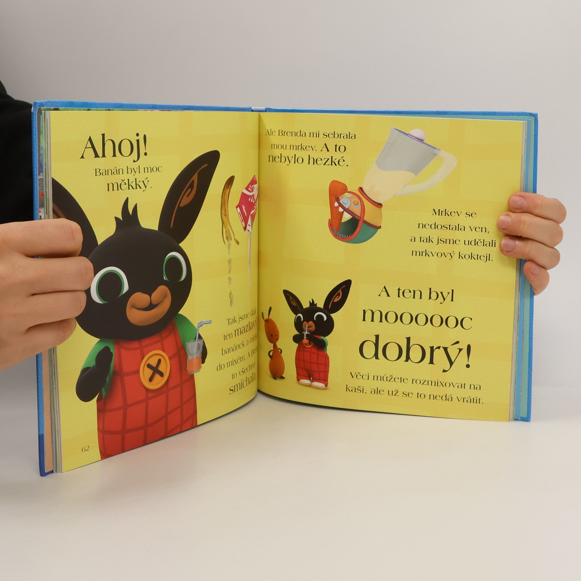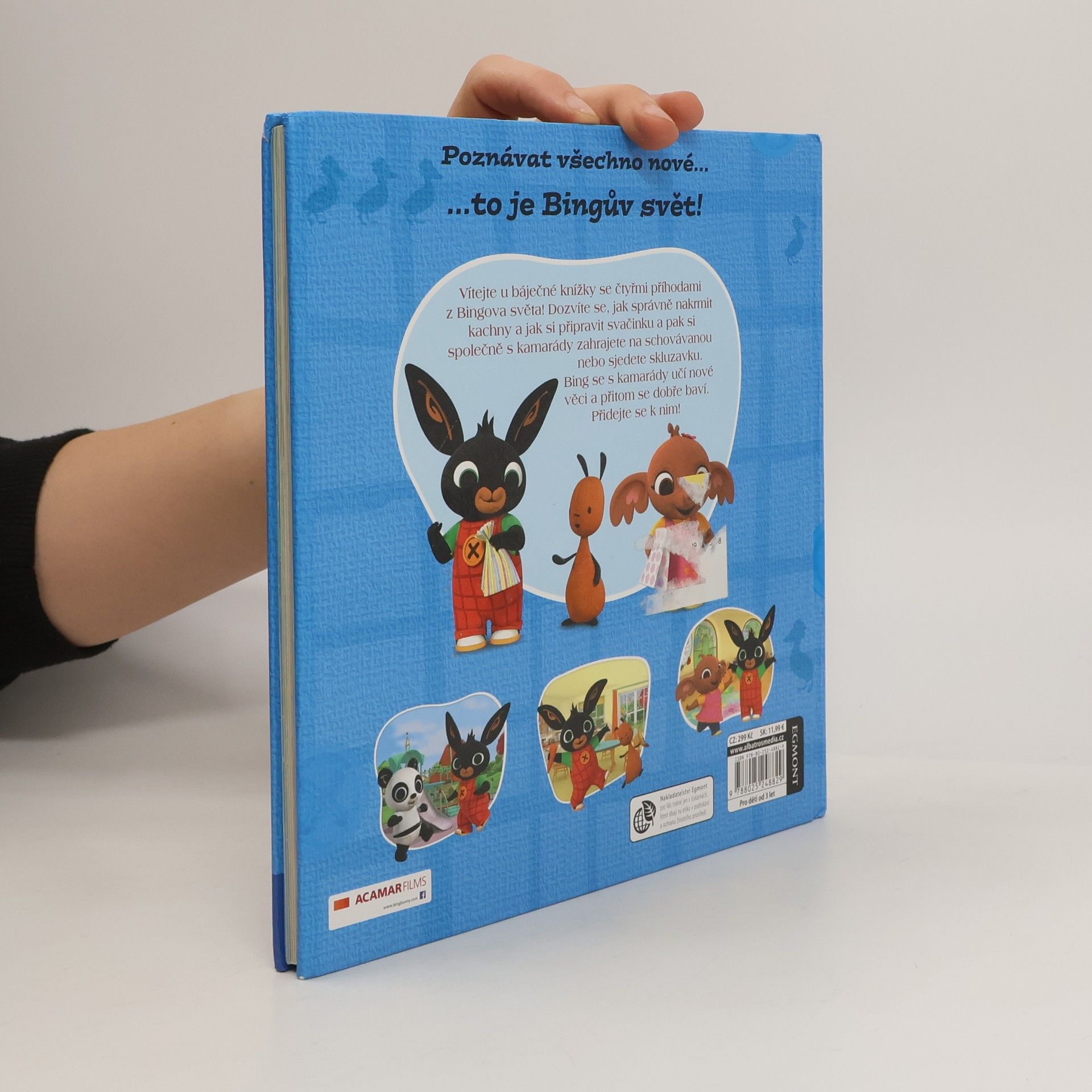 Seznamte se se zvídavým Bingem a jeho kamarády! Vítejte u báječné knížky se čtyřmi příhodami z Bingova světa! Dozvíte se, jak správně nakrmit kachny a jak si připravit svačinku a pak si společně s kamarády zahrajete na schovávanou nebo sjedete skluzavku. Bing se s kamarády učí nové věci a přitom se dobře baví. Přidejte se k nim!