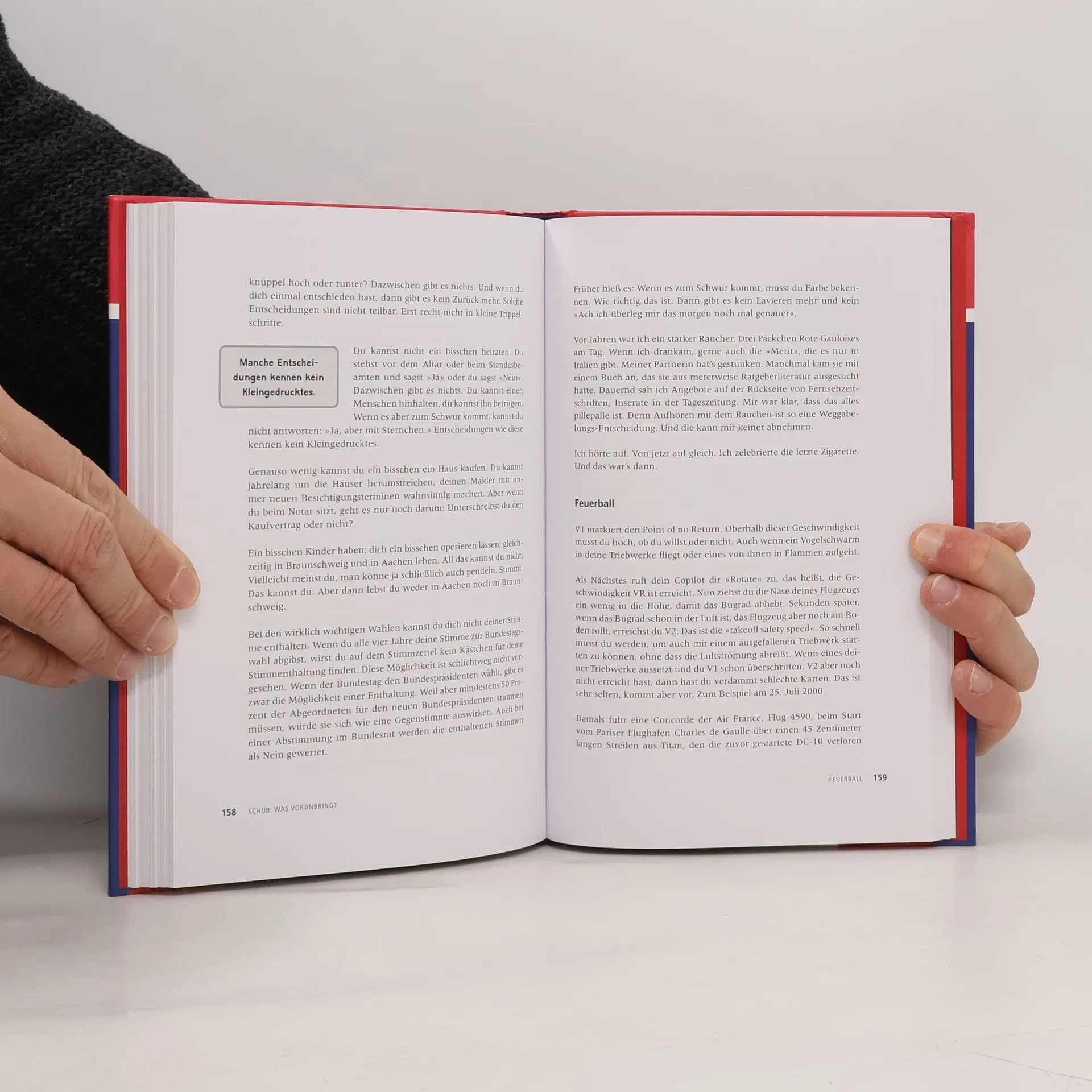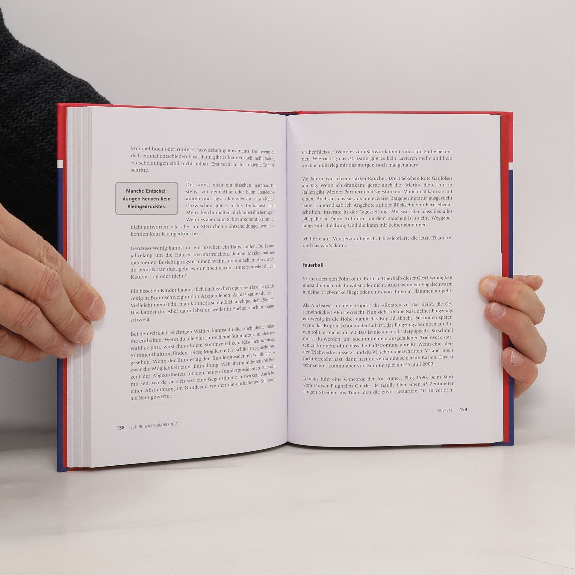Für jeden Autokauf nimmt sich der Deutsche im Durchschnitt 20 Stunden Zeit. Die wirklich wichtigen Entscheidungen im Leben jedoch werden gerne auf morgen, übermorgen und letztlich den Sankt-Nimmerleinstag verschoben. Unter Durchhalte-Parolen schleppt man sich jahrelang auf die verhasste Arbeitsstelle, geht Konflikten zähneknirschend aus dem Weg oder hält eine Partnerschaft am Leben, die eh schon längst nicht mehr zu retten ist. Wer um schwere Entscheidungen einen Bogen macht, gibt das Steuer aus der Hand. Statt selbst zu entscheiden, entscheiden die Umstände oder andere. Im besten Fall landet man dann am falschen Ziel, im schlimmsten in einer Katastrophe. Beruflich wie privat. Das Buch zeigt, wie man in den wichtigen Momenten des Lebens sein eigener Pilot bleibt. Denn nur, wer die Verantwortung für sein Leben nicht an den Tower abgibt, wird wie „Sully“ Sullenberger nach einem Ausfall beider Triebwerke seinen Airbus A320 sicher im Hudson River vor New York notwassern können – statt über Manhattan abzustürzen. Ein lebendig geschriebener und packender Befreiungsschlag in Richtung Selbstbestimmung und Erfüllung mit starken Beispielen aus der Welt der Fliegerei.