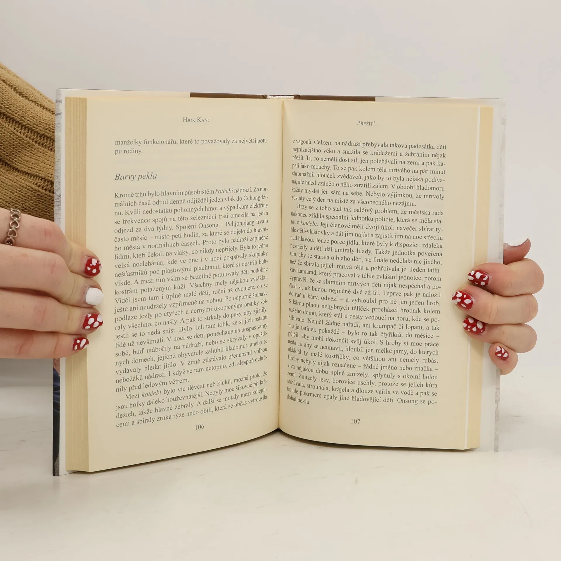 Otřesné svědectví o životě v komunistickém ráji, kde se naprosto zhroutila ekonomika a obyvatelé umírají hladem (při hladomoru v letech 1993–1994 zahynuly podle odhadu dva miliony lidí). Autor vypráví o unifikovaném bydlení, škole s krutými tresty, funkcionářském kastovnictví. Děsivé jsou jeho vzpomínky na hladomor, kdy se každý staral jen sám o sebe a mrtví zůstávali ležet celé hodiny na ulicích bez povšimnutí. Lidé vařili polévku ze stromové kůry, chytali krysy, docházelo dokonce ke kanibalismu. V roce 1988 se Hjokovi rodiče rozhodli uprchnout do Číny. Působivé svědectví o nelidském režimu.