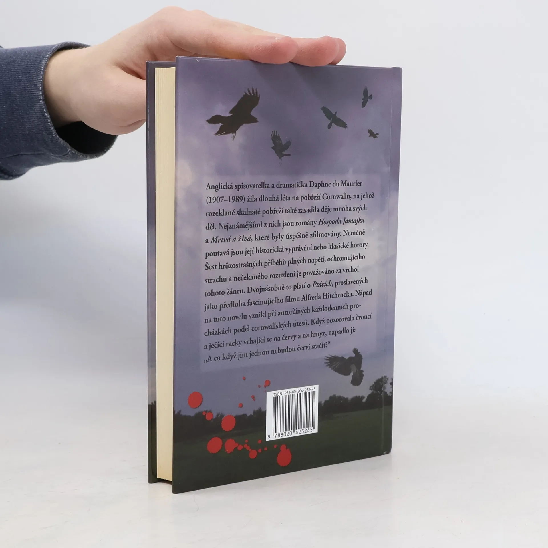 Anglická spisovatelka a dramatička Daphne du Maurier (19071989) žila dlouhá léta na pobřeží Cornwallu, na jehož rozeklané skalnaté pobřeží také zasadila děje mnoha svých děl. Nejznámějšími z nich jsou romány Hospoda Jamajka a Mrtvá a živá, které byly úspěšně zfilmovány. Neméně poutavá jsou její historická vyprávění nebo klasické horory. Šest hrůzostrašných příběhů plných napětí, ochromujícího strachu a nečekaného rozuzlení je považováno za vrchol tohoto žánru. Dvojnásobně to platí o Ptácích, proslavených jako předloha fascinujícího filmu Alfreda Hitchcocka. Nápad na tuto novelu vznikl při autorčiných každodenních procházkách podél cornwallských útesů. Když pozorovala řvoucí a ječící racky vrhající se na červy a na hmyz, napadlo ji: A co když jim jednou nebudou červi stačit?