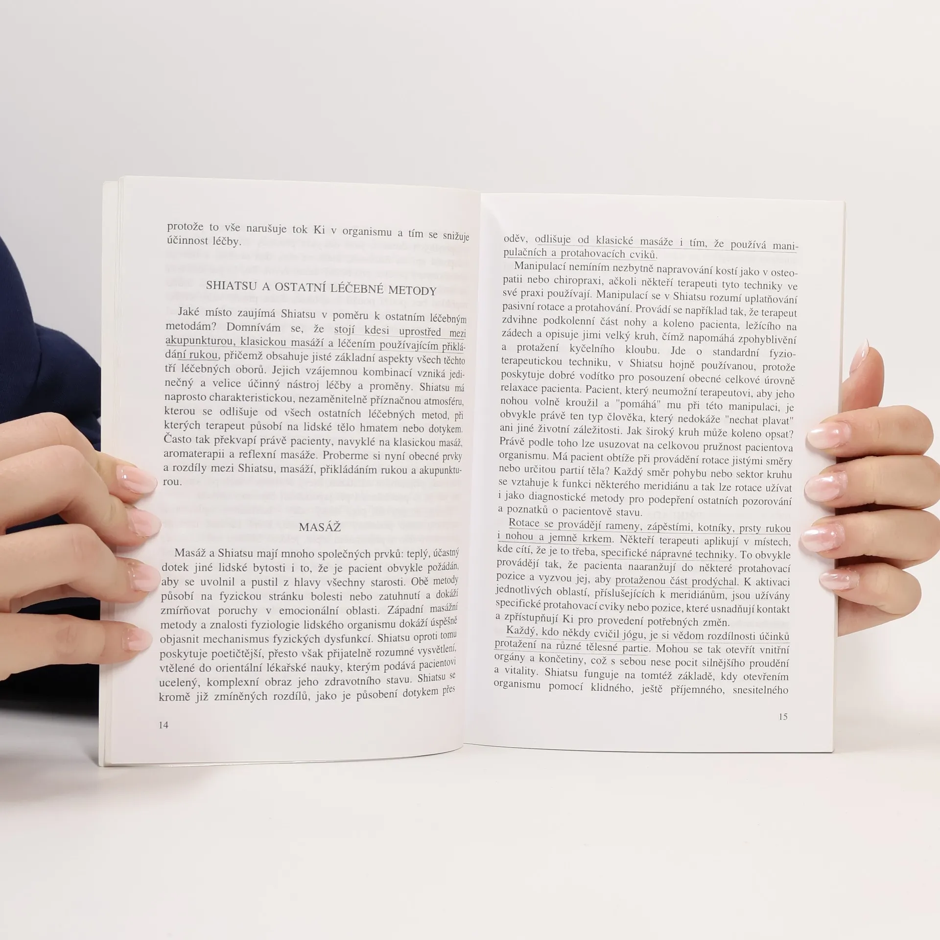 Shiatsu znamená "tlak prsty" a je to japonské léčitelské umění založené na stejné východní tradici jako akupunktura. Místo jehliček však ke stimulaci meridiánů a energetických bodů využívá prstů, kolenou a p. Shiatsu přináší tělu relaxaci a energii.