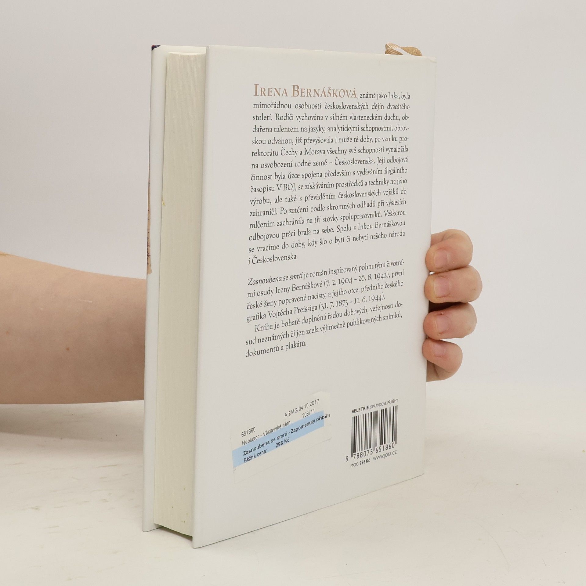 Řadou dobových, dosud veřejnosti neznámých či jen zcela výjimečně publikovaných snímků, dokumentů a plakátů bohatě doplněná publikace Zasnoubena se smrtí z pera novinářky, spisovatelky a překladatelky Jany Vrzalové, je inspirována pohnutými životními osudy první české ženy popravené nacisty Ireny Bernáškové (7. 2. 1904 – 26. 8. 1942) a jejího otce, předního českého grafika Vojtěcha Preissiga (31. 7. 1873 – 11. 6. 1944). Irena Bernášková, známá jako Inka, byla mimořádnou osobností dvacátého století. Rodiči vychována v silném vlasteneckém duchu, obdařena talentem na jazyky, analytickými schopnostmi, obrovskou odvahou, jíž převyšovala i muže té doby, po vzniku protektorátu Čechy a Morava všechny své schopnosti vynaložila na osvobození rodné země – Československa. Její odbojová činnost byla úzce spojena především s vydáváním ilegálního časopisu V BOJ, se získáváním prostředků a techniky na jeho výrobu, ale také s převáděním československých vojáků do zahraničí. Po zatčení podle skromných odhadů při výsleších mlčením zachránila na tři stovky spolupracovníků. Veškerou odbojovou práci brala na sebe. Spolu s Inkou Bernáškovou se vracíme do doby, kdy šlo o bytí či nebytí našeho národa i Československa. Knížka, která je zhmotněním paměti o naší minulosti v té nejtragičtější podobě, je prolnutím literatury faktu s beletrií.