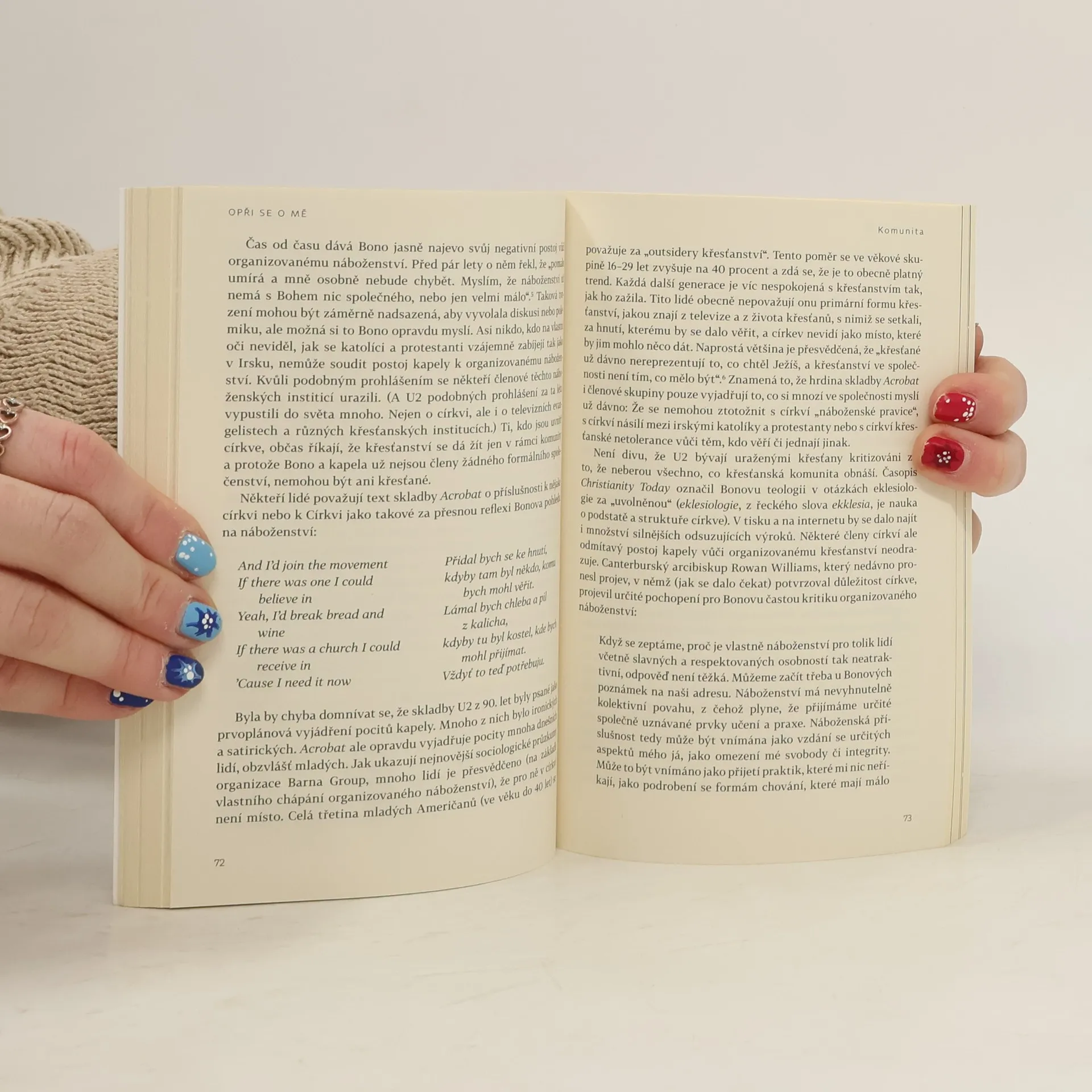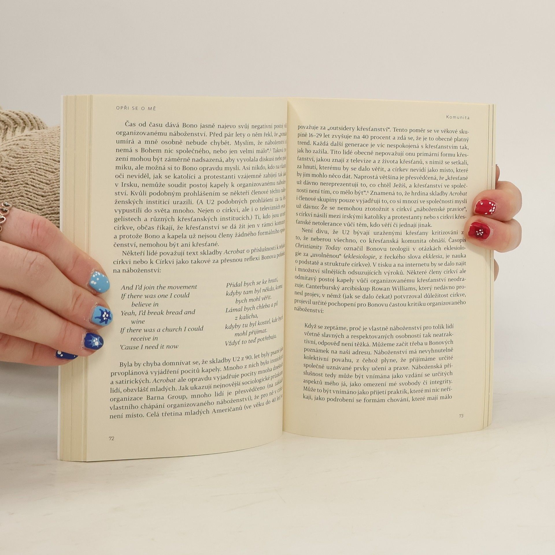Kapela U2 je jistě fenoménem v oblasti populární hudby. Jejich tvorba si našla milióny fanoušků po celém světě a to nejen díky vynikajícím textům a melodiím, ale také díky jejich duchovnímu poselství, které se dotýká člověka na jakési hlubší, bytostné rovině. Vliv U2 daleko přesahuje hranice popkultury. Jejich písně povzbudily mnohé posluchače k tomu, aby svoji víru proměnili v činy, aby se vydali na pomoc chudým a těm, kteří jsou na okraji společnosti. Tato kniha se vydává po stopách duchovních témat, která U2 ve svých písních sdílejí.