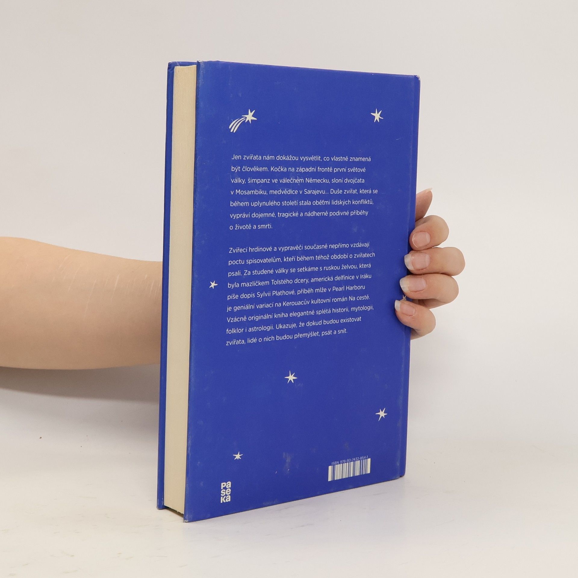 Jen zvířata nám dokážou vysvětlit, co vlastně znamená být člověkem. Kočka na západní frontě první světové války, šimpanz ve válečném Německu, sloní dvojčata v Mosambiku, medvěd v Sarajevu… Duše zvířat, která se během uplynulého století stala oběťmi lidských konfliktů, vypráví dojemné, tragické a nádherně podivné příběhy o svém životě a smrti. Zvířecí hrdinové a vypravěči současně nepřímo vzdávají poctu spisovatelům, kteří během téhož období o zvířatech psali. Během studené války se setkáme s ruskou želvou, která byla mazlíčkem Tolstého dcery, americký delfín v Iráku píše dopis Sylvii Plathové, příběh ústřice v Pearl Harboru je geniální variací na Kerouacův kultovní román Na cestě. Vzácně originální kniha elegantně splétá historii, mytologii, folklór i astrologii. Ukazuje, že dokud budou existovat zvířata, lidé o nich budou přemýšlet, psát a snít.