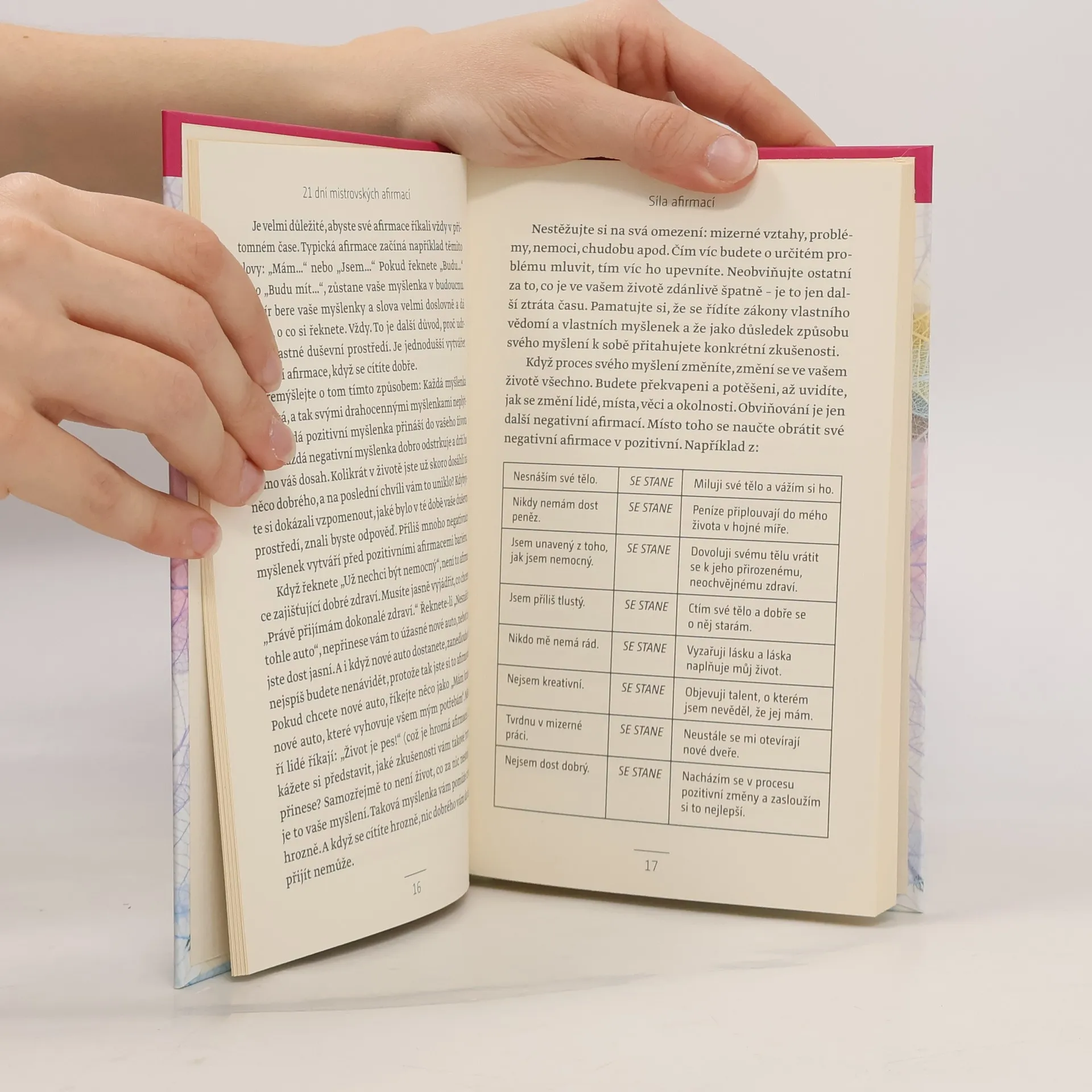 V této knize nám autorka ukazuje, co jsou to afirmace a jak naše myšlenky ovlivňují náš život. Protože výzkum ukázal, že abychom si osvojili nějaký zvyk, potřebujeme k tomu 21 dní, předkládá tato kniha krátký, jednadvacetidenní kurz praktického používání afirmací. Můžete učinit vědomé rozhodnutí, uzdravit svůj život a posunout se kupředu na cestě pozitivních změn. Není lepší čas než přítomnost pro to, abyste převzali moc nad svými myšlenkami.