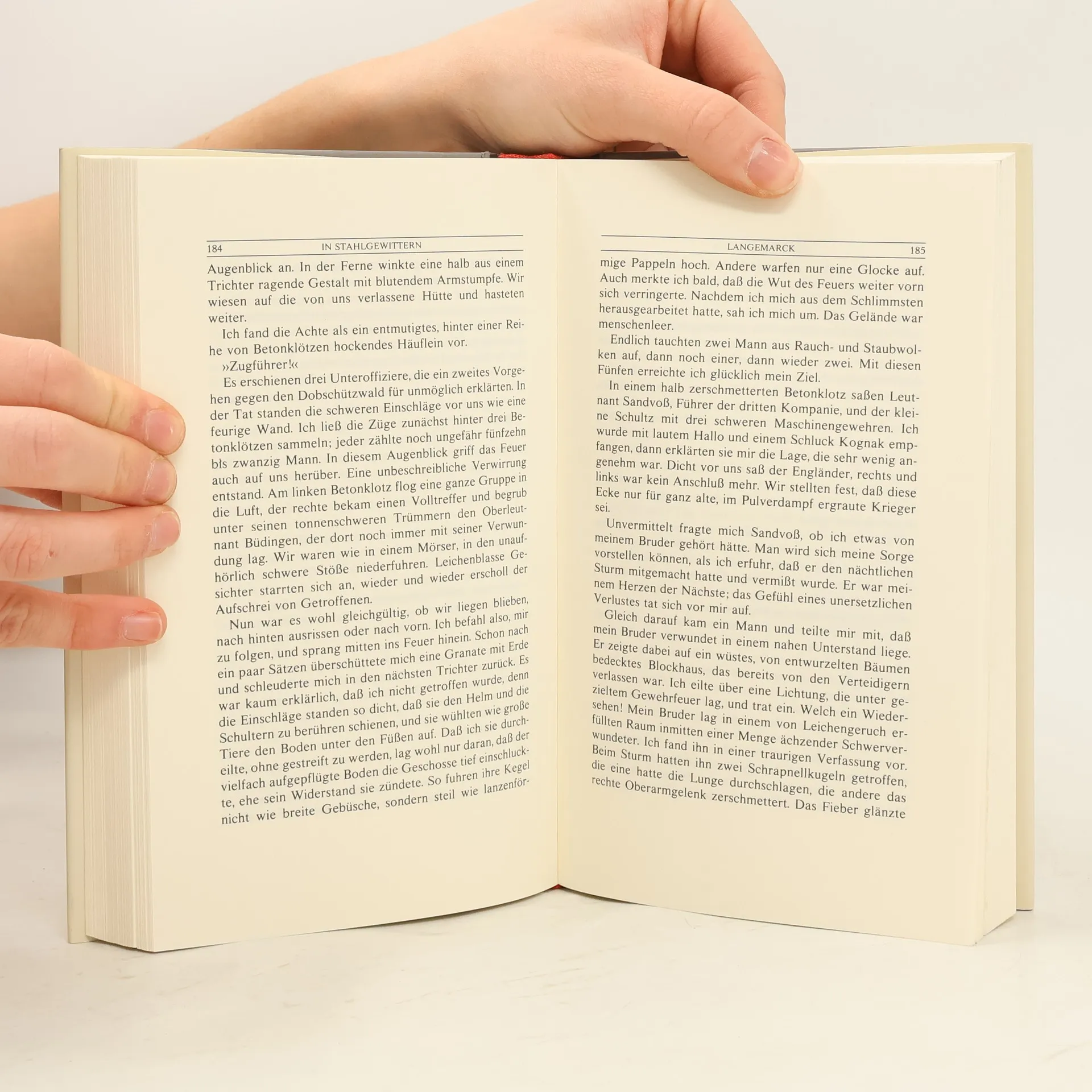 »›In Stahlgewittern‹ machte ihn zum Helden einer Generation junger Offiziere, die alles gegeben hatten und am Ende bestenfalls das Eiserne Kreuz davontrugen. Gide pries es als ›das schönste Kriegsbuch, das ich je las.‹ Tatsächlich ähnelt es keinem anderen Buch der damaligen Zeit – keine Spur von den pastoralen Meditationen eines Siegfried Sassoon oder Edmund Blunden, kein Anflug von Feigheit wie bei Hemingway, kein Masochismus wie bei T. E. Lawrence und kein Mitleid wie bei Remarque.« Bruce Chatwin