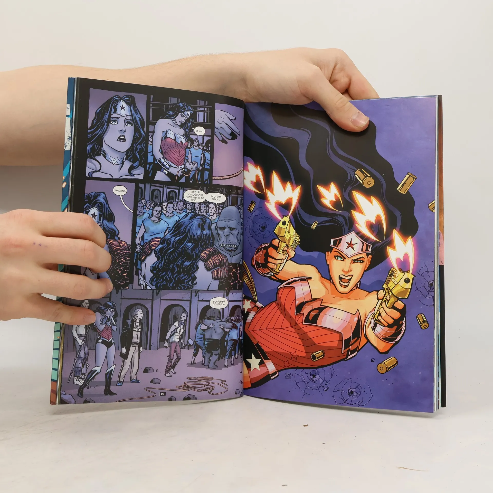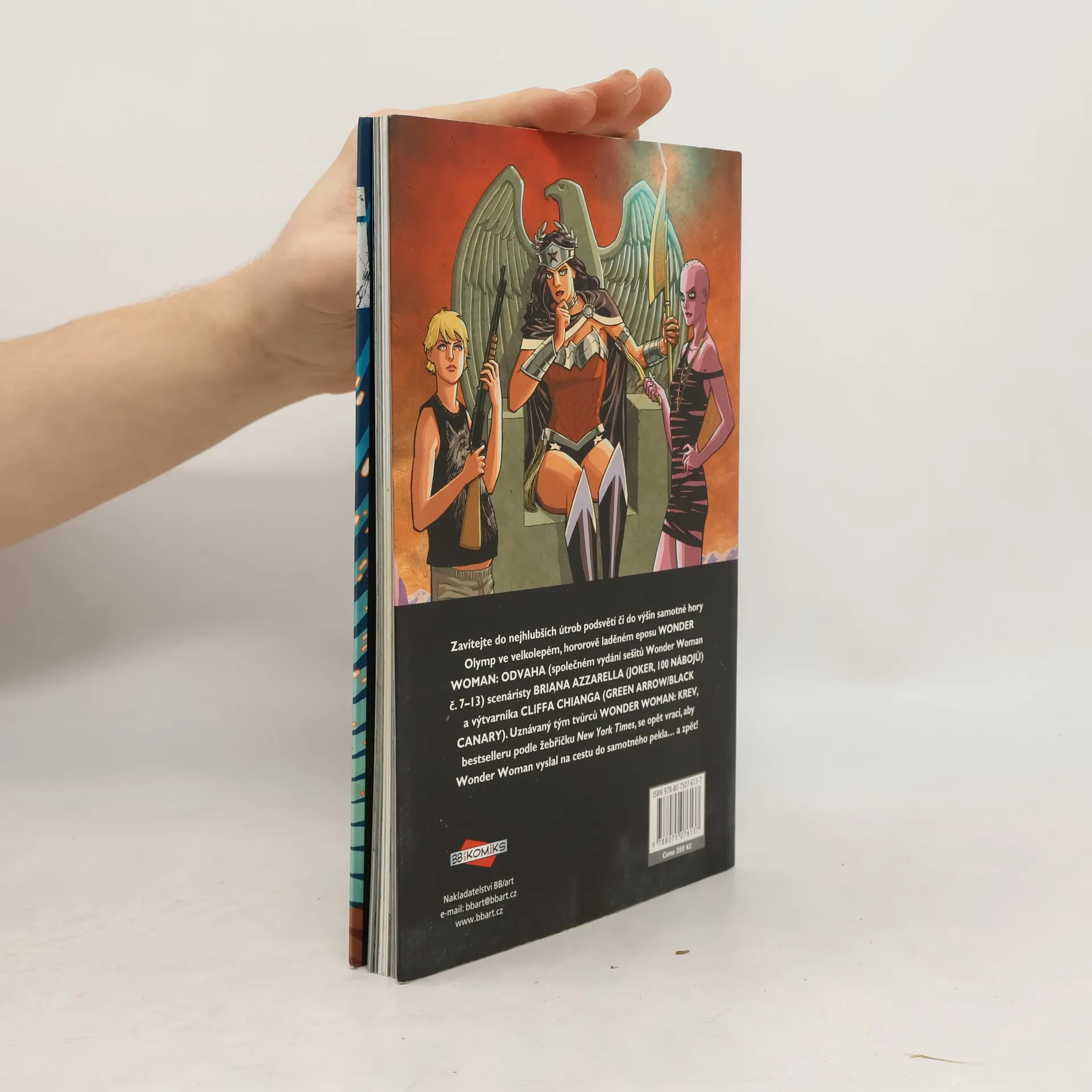 Wonder Woman by udělala cokoliv, aby zachránila život (a duši) lidem, kteří jsou jí drazí. Teď si kvůli tomu musí projít peklem. A zpět. Doslova. Její všemocný otec Zeus se stále pohřešuje a Wonder Woman se ocitá uprostřed předobrazu všech rodinných klání: mezi jejími božskými příbuznými se rozpoutala bitva o olympský trůn. Přítelkyně Zola – velmi smrtelná a (za což vděčí Diovi) velmi těhotná – je jen jednou z mnoha obětí, odvlečených do stínové říše náležící Hádovi, vládci podsvětí. Pokud chce Diana vůbec doufat, že Zolu ještě osvobodí, musí se vyrovnat s nejtemnějším tajemstvím Amazonek… vyzbrojit se zbraněmi ukutými ve výhni bohů… uzavřít spojenectví s vrtkavými božstvy, jejichž motivace je přinejlepším nejasná… a vydat se do samotného pekla, v němž se každý Hádův vrtoch stává hrůznou skutečností. Navíc musí být připravena podstoupit i oběť nejvyšší. Ten šílený a pomstychtivý bůh chce totiž mnohem víc než pouhou její duši…