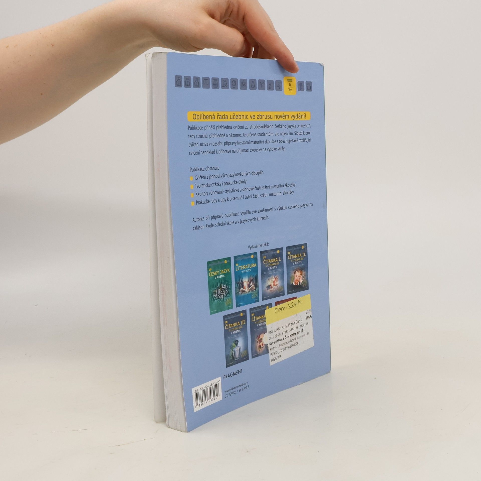 Oblíbená řada učebnic ve zbrusu novém přepracovaném vydání! Publikace přináší přehledná cvičení ze středoškolského českého jazyka „v kostce“, tedy stručně, přehledně a názorně. Je určena studentům, ale nejen jim. Slouží k procvičení učiva v rozsahu přípravy ke státní maturitní zkoušce a obsahuje také rozšiřující cvičení například k přípravě na přijímací zkoušky na vysoké školy. Publikace obsahuje: • Cvičení z jednotlivých jazykovědných disciplín • Teoretické otázky i praktické úkoly • Kapitoly věnované stylistické a slohové části státní maturitní zkoušky • Praktické rady a tipy k písemné i ústní části státní maturitní zkoušky Autorka při přípravě publikace využila své zkušenosti s výukou českého jazyka na základní škole, střední škole a v jazykových kurzech.