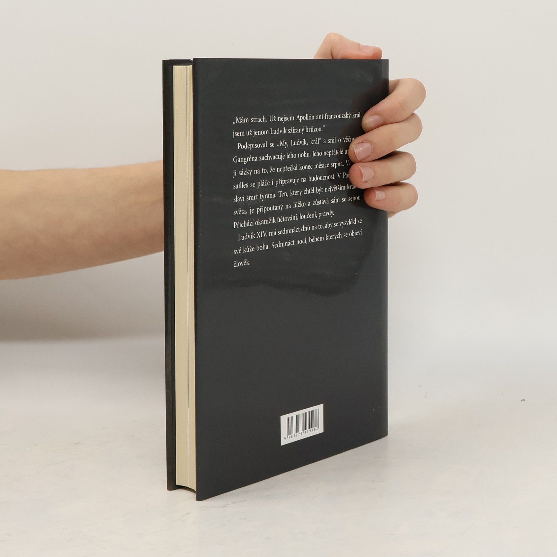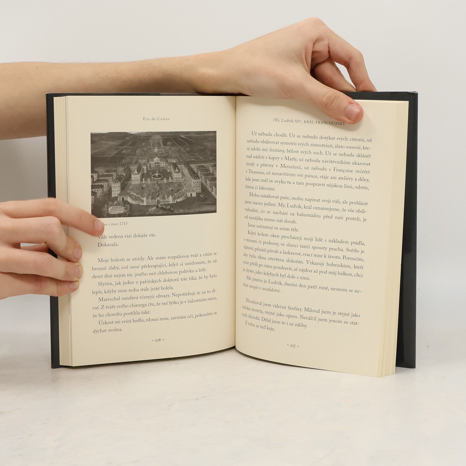 Historický román z posledních dnů života Krále Slunce. Nemocný panovník, s jehož chorobou si lékaři nevědí rady, se ve vzpomínkách vrací k významným postavám své vlády i svého soukromí, důležité místo patří králově manželce, dětem, tajné druhé ženě a milenkám. Král přemítá nad událostmi své vlády, nad význačnými stavbami, které založil, především nad svou pýchou – zámkem Versailles a jeho zahradami. Zajímavý je popis tehdejších metod medicíny, která byla na většinu nemocí krátká. Jak nemoc královy nohy, zachvácené gangrénou, postupuje, vidíme proměnu Ludvíka Velikého v muže čelícího smrti.