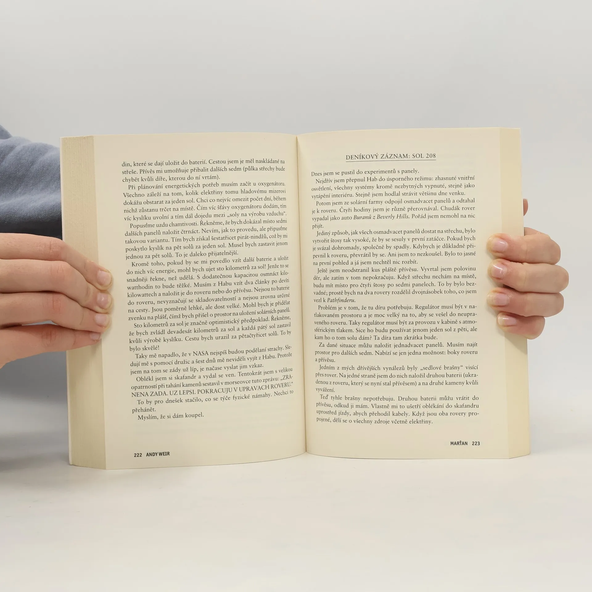 5. vydání. Je nejslavnějším mužem na Zemi. Má to však háček: není na Zemi... Mark Watney se jako jeden z prvních lidí prošel po Marsu. Zdá se však, že bude také prvním člověkem, který tam zemře. Ztratil se v prašné bouři a zbytek jeho posádky odletěl v domnění, že je mrtvý. Mark nemá jak odeslat zprávu, že přežil. A i kdyby se s lidmi na Zemi spojit dokázal, zásoby mu dojdou mnohem dřív, než by stačila dorazit pomoc. Mark se však nevzdává. Vyzbrojen svým důvtipem, technickými dovednostmi a nevyčerpatelným smyslem pro humor se pouští do tvrdošíjného boje o přežití. Jenže Mars mu přichystá nejedno překvapení...Strhující, podmanivý a přesvědčivý příběh o lidské nezdolnosti a vynalézavosti tváří v tvář beznadějné situaci obletěl celý čtenářský svět a stal se doslova hitem, robinzonádou 21. století. Zaujal i filmové tvůrce, režisér Ridley Scott natočil úspěšnou adaptaci` s Mattem Damonem v hlavní roli.
