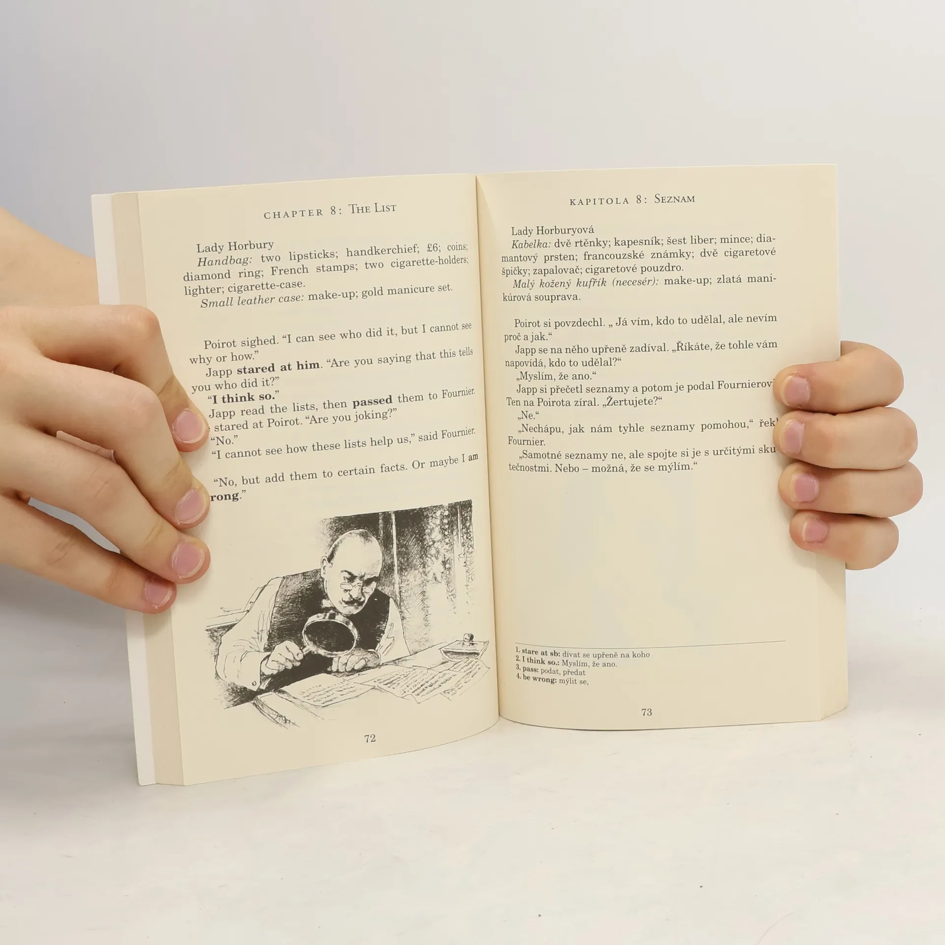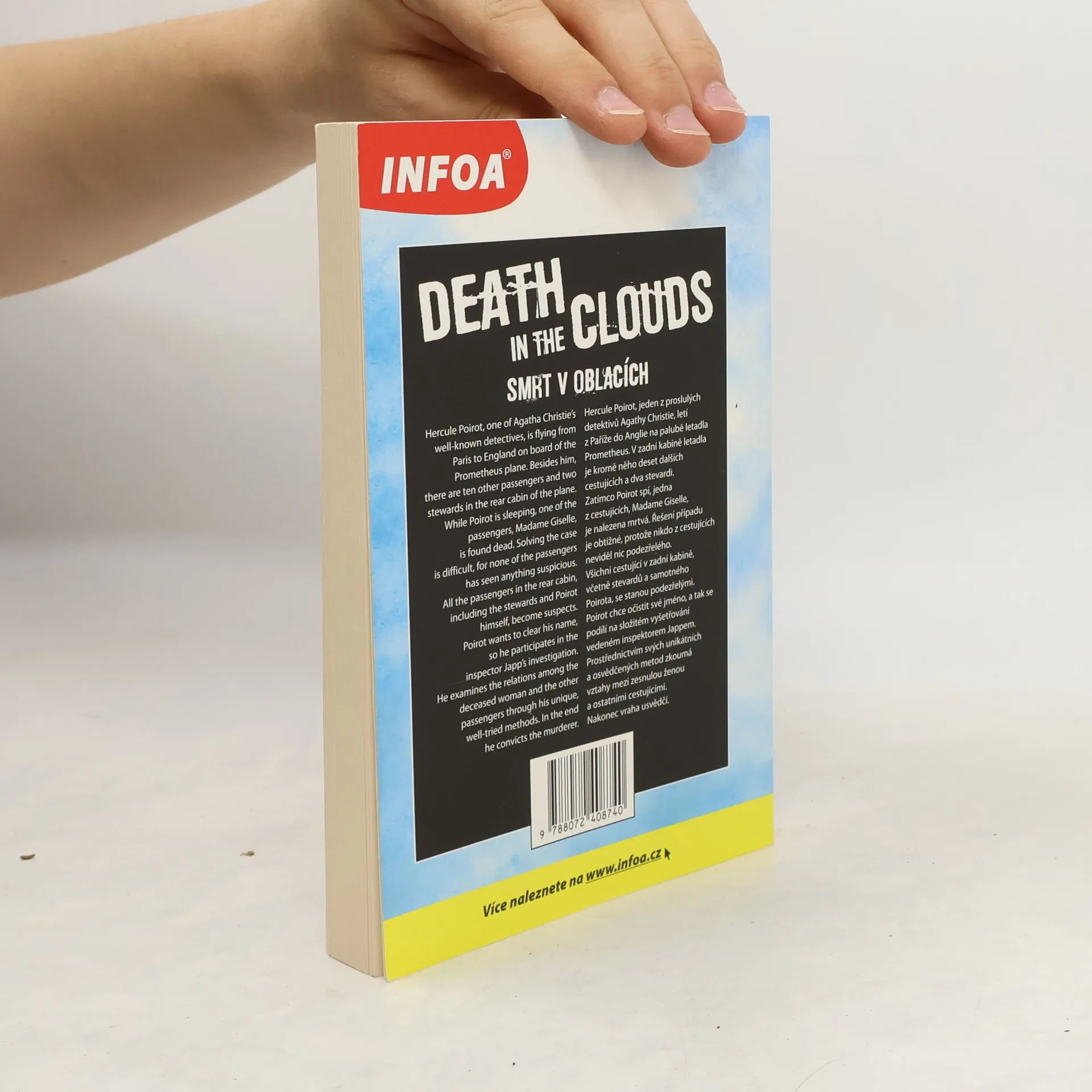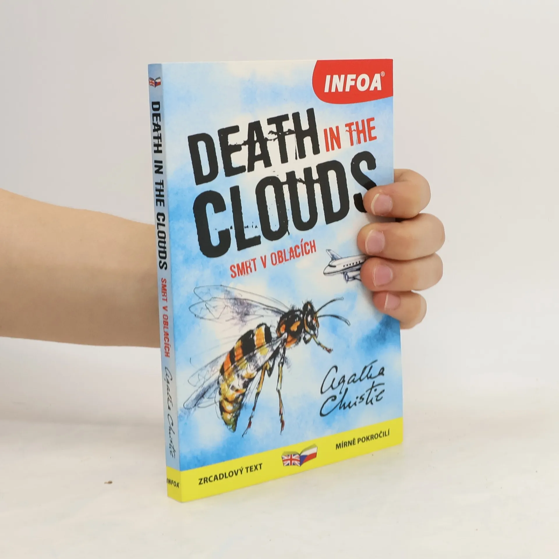 Podle příběhu Agathy Christie. Souběžný český text. Určeno pro mírně pokročilé. Hercule Poirot cestuje letadlem z Paříže do Londýna. Společně s dalšími deseti pasažéry sdílí kabinu letadla Prometheus a zdá se, že jeho pozorovatelským schopnostem jen tak něco neunikne, byť se neděje nic neobvyklého – až na nepříjemnost s vosou. Opak je však pravdou – v půli cesty stevard zjistí, že jedna z cestujících je mrtvá. Nehodu vyloučí vzápětí sám Poirot, když na podlaze najde foukací šipku. Vražednou zbraň však policie objeví tam, kde by to nikdy nečekala – pod sedadlem slavného Belgičana! Poirotovi nezbývá než očistit své jméno a dopadnout pachatele zločinu, jejž nikdo neviděl a přece se odehrál před zraky několika párů očí včetně těch nejslavnějšího detektiva všech dob.