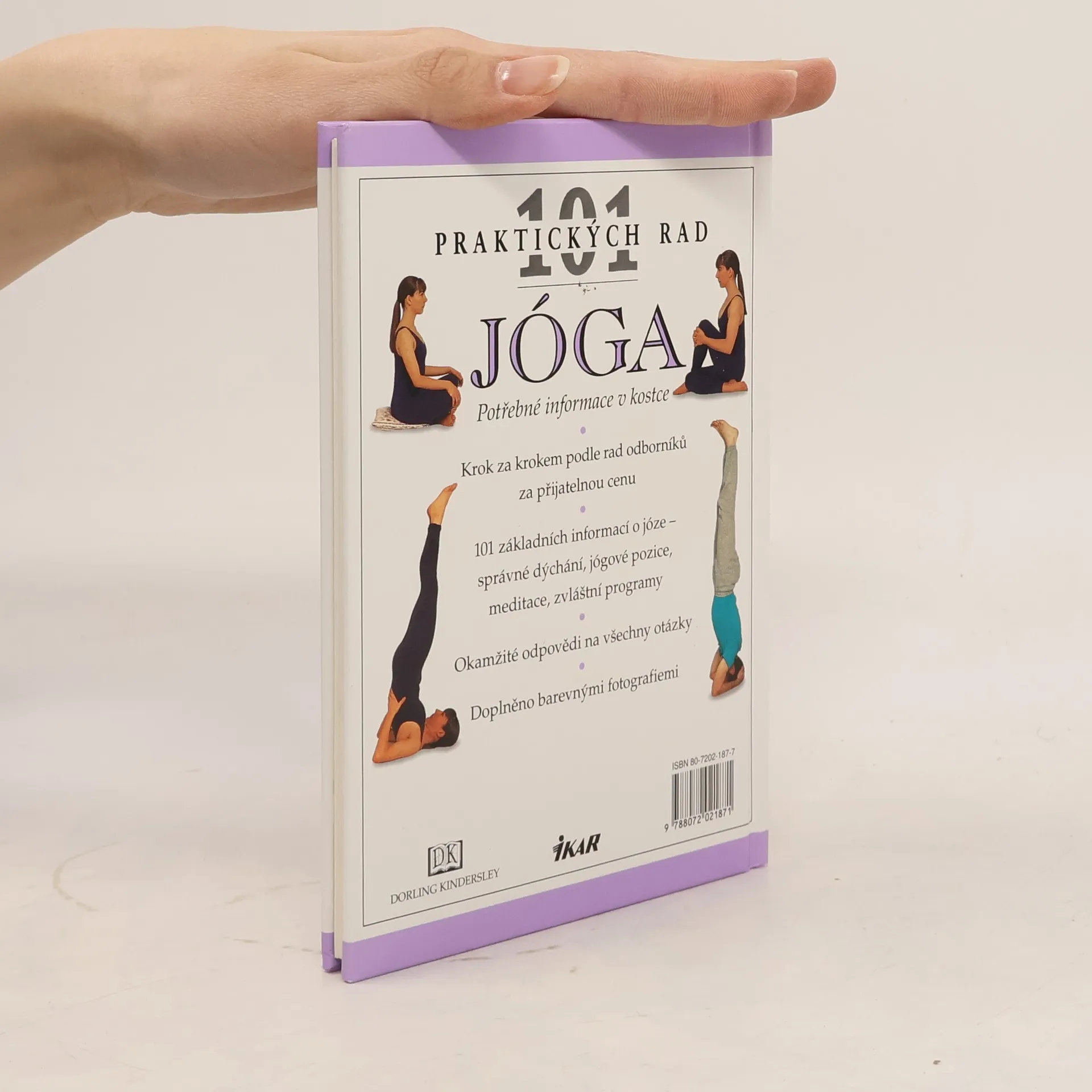 Přehledně zpracované informace v kostce, návody krok za krokem, názorné barevné fotografie ke každému cviku, nauka správného dýchání, jógové pozice, meditace, zvláštní programy atd.