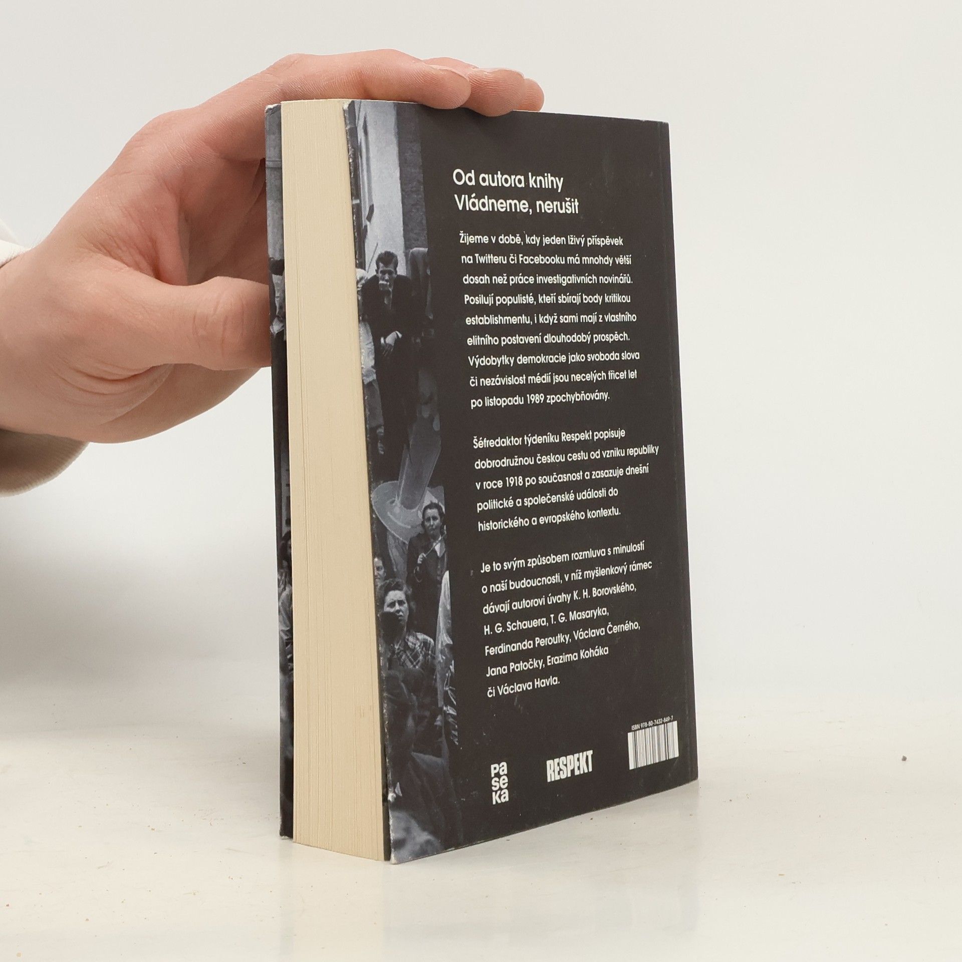 Česká cesta od Masaryka k Babišovi. Žijeme v době, kdy jeden lživý příspěvek na Twitteru či Facebooku má větší dosah než systematická práce investigativních novinářů. Posilují populisté, kteří sbírají body kritikou establishmentu, i když sami mají z vlastního elitního postavení dlouhodobý prospěch. Výdobytky demokracie jako svoboda slova či nezávislost médií jsou necelých třicet let po listopadu 1989 zpochybňovány. Šéfredaktor týdeníku Respekt popisuje dobrodružnou českou cestu od vzniku republiky po současnost a zasazuje dnešní politické a společenské události do historického a evropského kontextu. Je to svým způsobem rozmluva s minulostí o naší budoucnosti, v níž myšlenkový rámec dávají autorovi úvahy K. H. Borovského, H. G. Schauera, T. G. Masaryka, Ferdinanda Peroutky, Václava Černého, Jana Patočky, Erazima Koháka či Václava Havla. S odkazem na velké kritické duchy demokratické tradice Tabery jasně ukazuje, že rizikům přítomnosti se nejlépe čelí nikoliv panikou, ale chladnou hlavou a rozhodností.