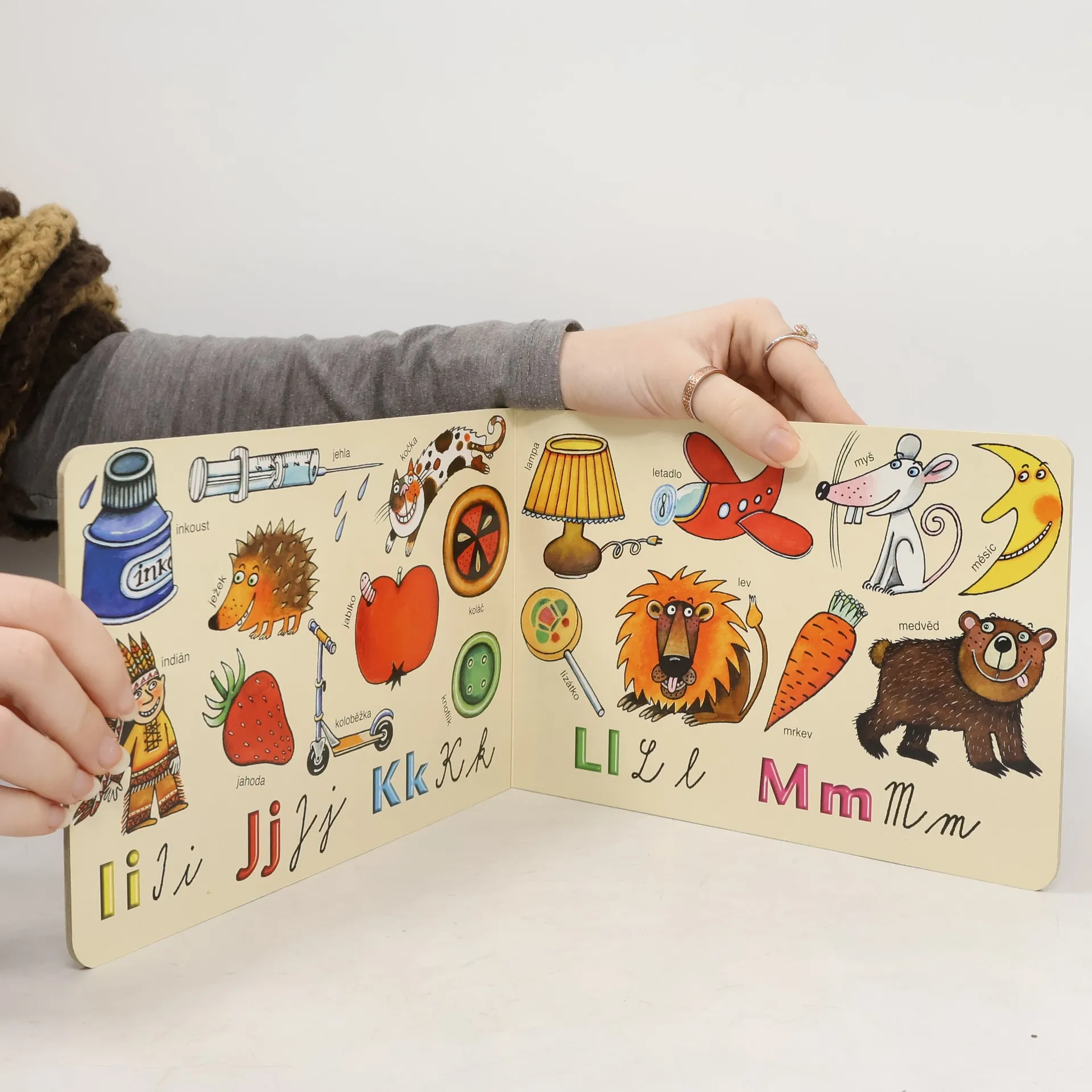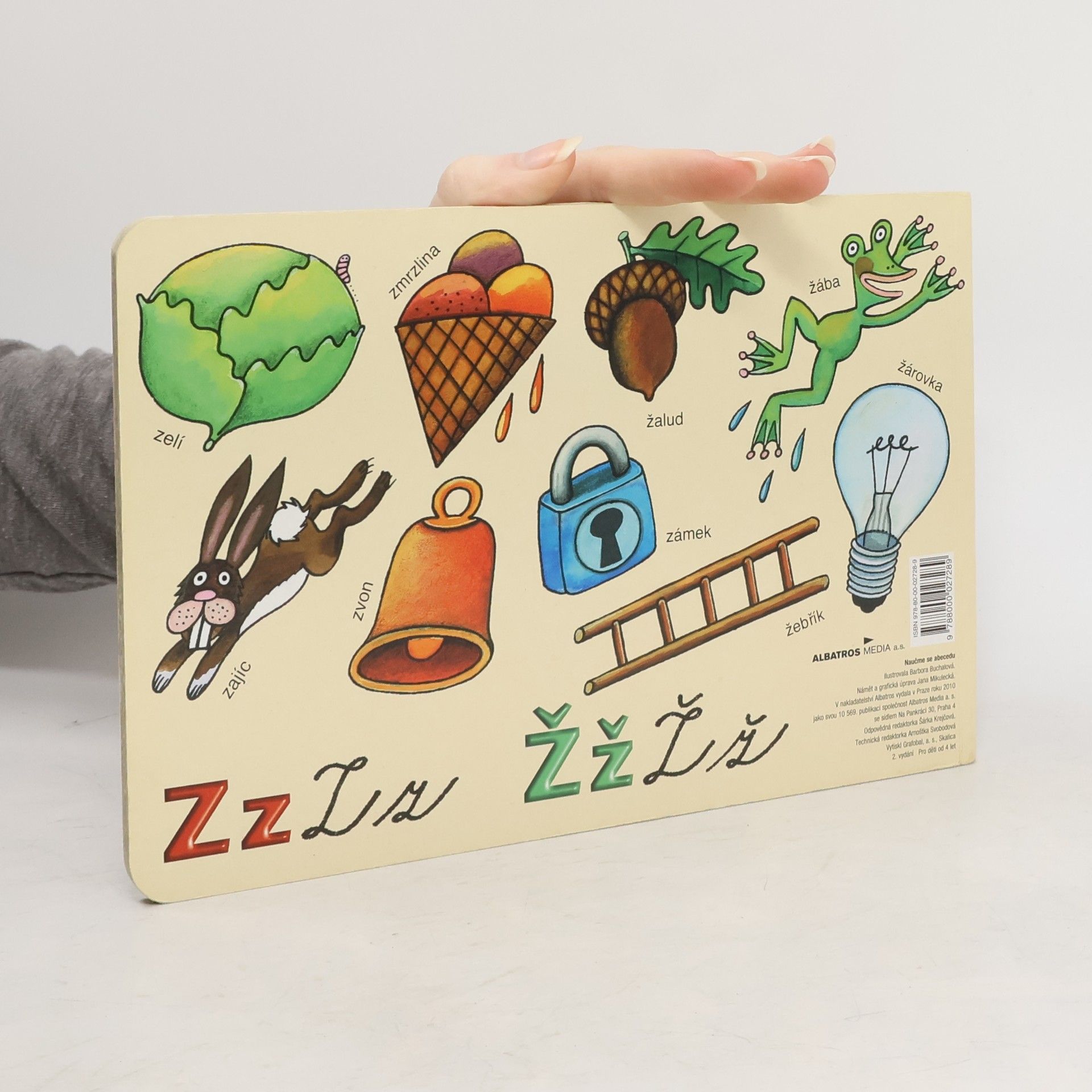 Klasické leporelo plné jednoduchých barevných obrázků, které jsou vybrány a seřazeny od A do Ž. Každý obrázek je opatřen popiskem a doplněn odpovídajícím písmenem v tištěné i psané podobě. Leporelo můžete využít dvojím způsobem: menší dítě poznává a pojmenovává obrázky, větší už může obrázky spojovat s písmeny a učit se abecedu.