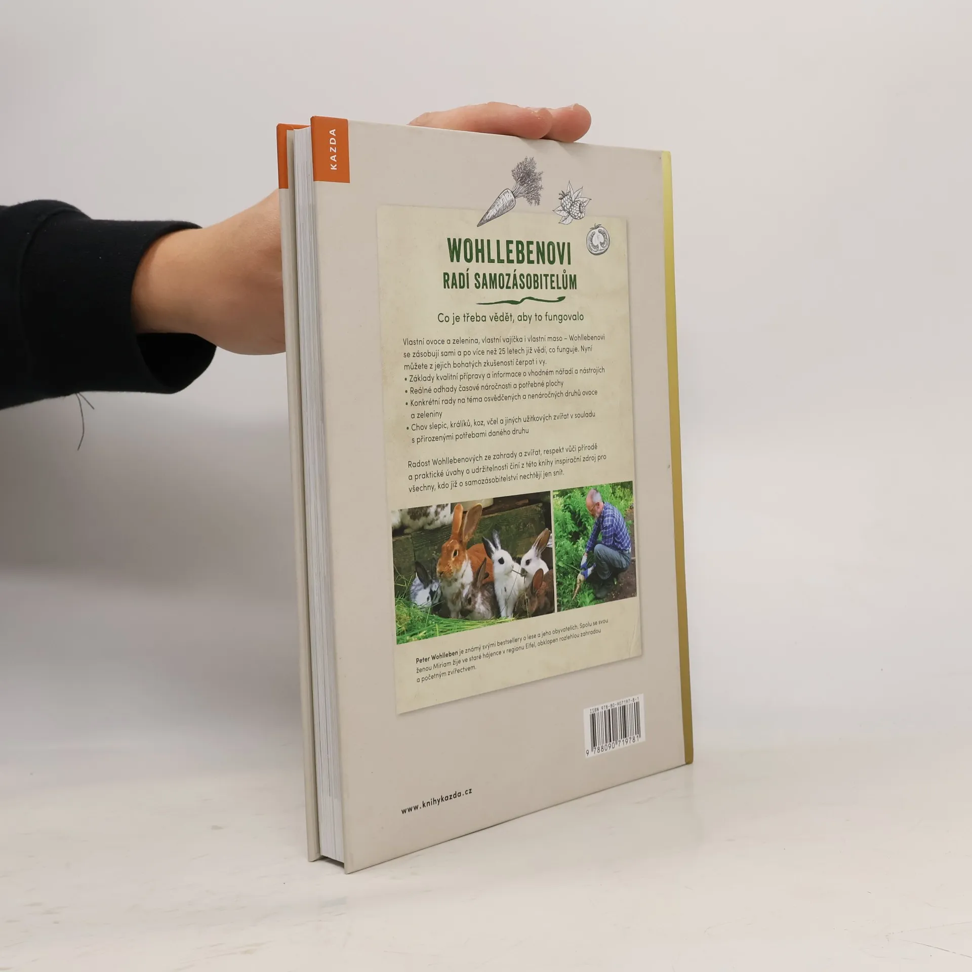 Wohllebenovi v této knize radí samozásobitelům co je třeba vědět, aby to fungovalo. Vlastní ovoce a zelenina, vlastní vajíčka i vlastní maso – Wohllebenovi se zásobují sami a po více než 25 letech již vědí, co funguje. Nyní můžete z jejich bohatých zkušeností čerpat i vy. - Základ kvalitní přípravy a informace o vhodném nářadí a nástrojích - Reálné odhady časové náročnosti a potřebné plochy - Konkrétní rady na téma osvědčených a nenáročných druhů ovoce a zeleniny - Chov slepic, králíků, koz, včel a jiných užitkových zvířat v souladu s přirozenými potřebami daného druhu Radost Wohllebenových ze zahrady a zvířat, respekt vůči přírodě a praktické úvahy o udržitelnosti činí z této knihy inspirační zdroj pro všechny, kdo již o samozásobitelství nechtějí jen snít.