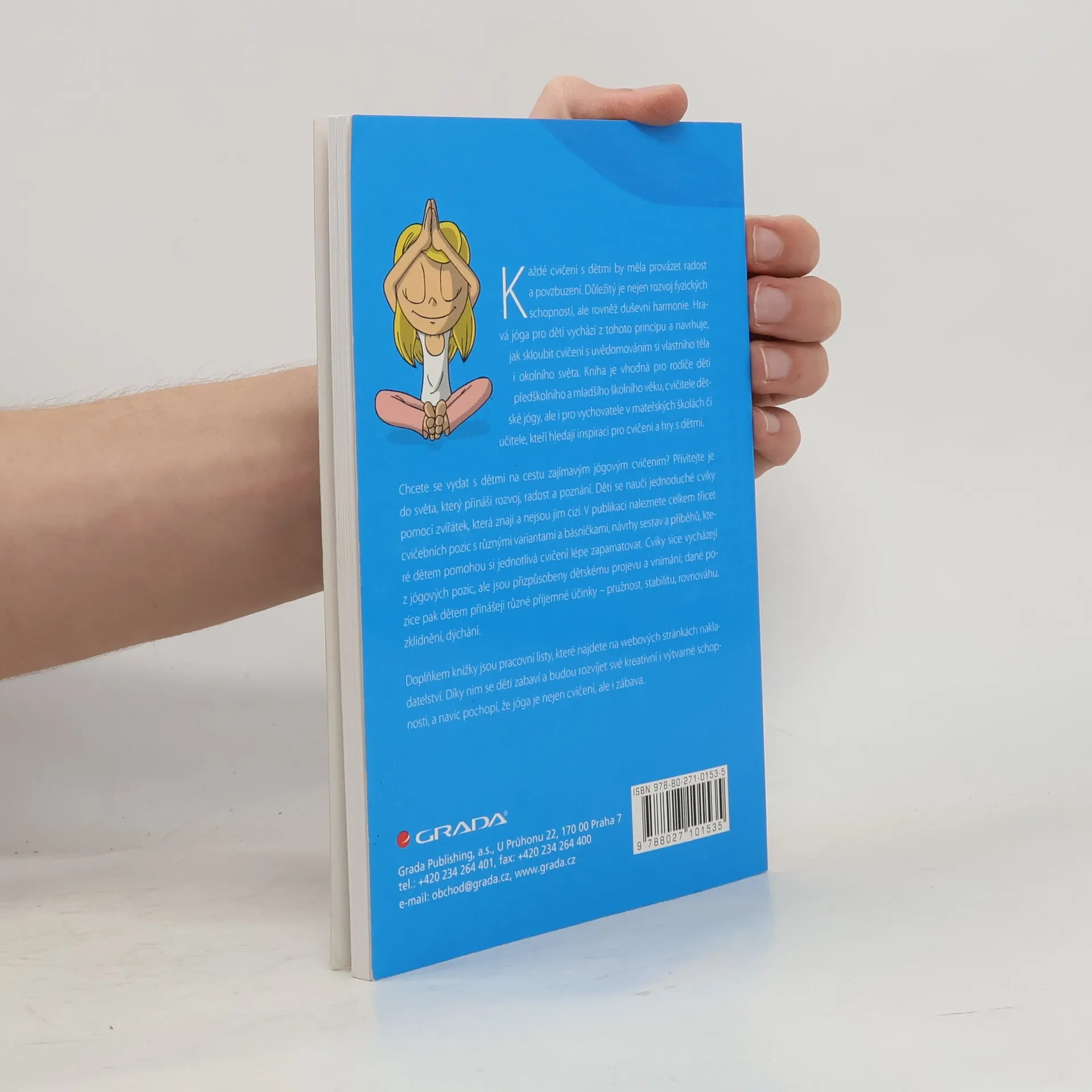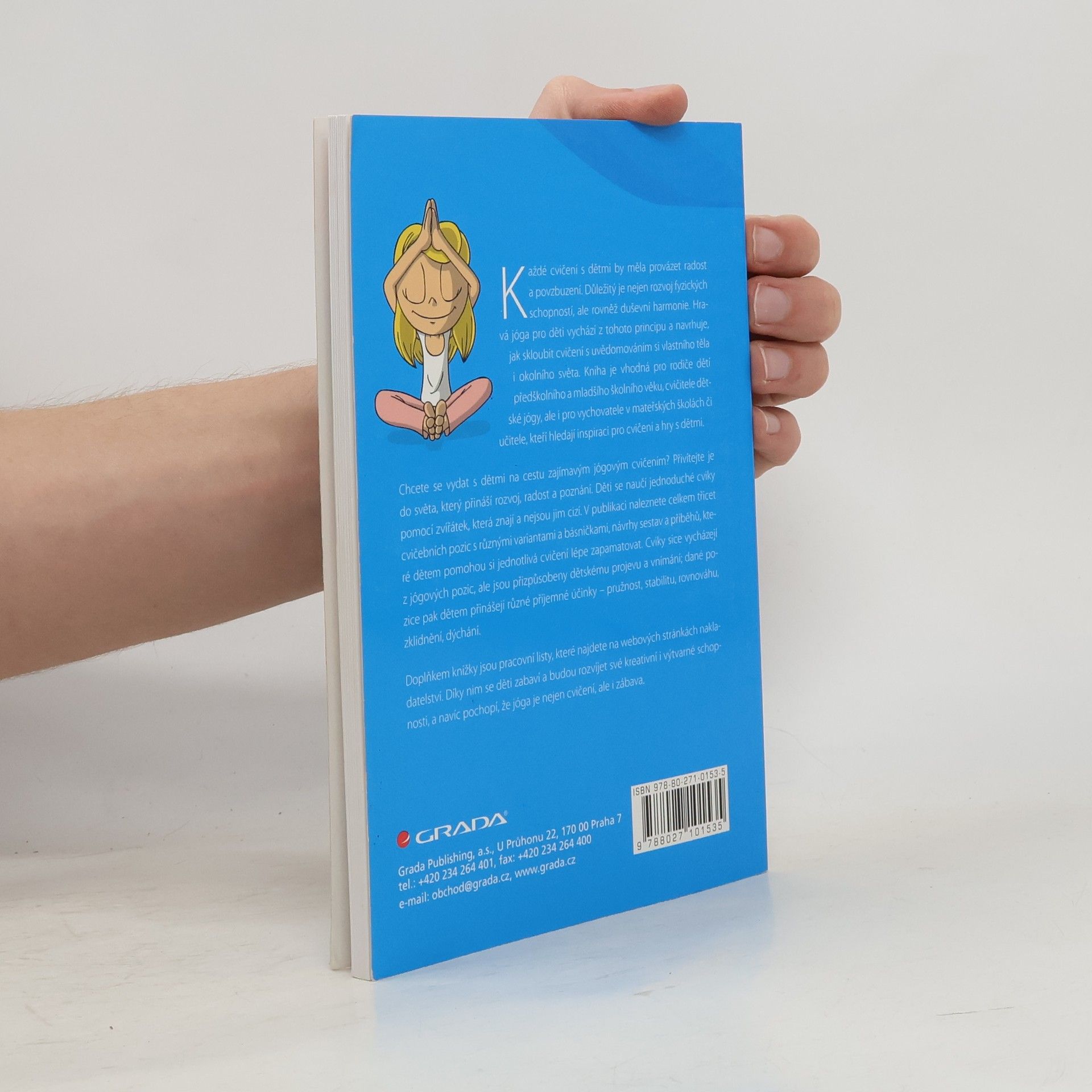 Chcete se vydat s dětmi na cestu zajímavým jógovým cvičením? Přivítejte je do světa, který přináší rozvoj, radost a poznání. Děti se naučí jednoduché cviky pomocí zvířátek, která znají a nejsou jim cizí. V publikaci naleznete celkem třicet cvičebních pozic s různými variantami a básničkami, návrhy sestav a příběhů, které dětem pomohou si jednotlivá cvičení lépe zapamatovat. Cviky sice vycházejí z jógových pozic, ale jsou přizpůsobeny dětskému projevu a vnímání; dané pozice pak dětem přinášejí různé příjemné účinky – pružnost, stabilitu, rovnováhu, zklidnění, dýchání. Doplňkem knížky jsou pracovní listy, které najdete zde na webových stránkách. Díky nim se děti zabaví a budou rozvíjet své kreativní i výtvarné schopnosti, a navíc pochopí, že jóga je nejen cvičení, ale i zábava.