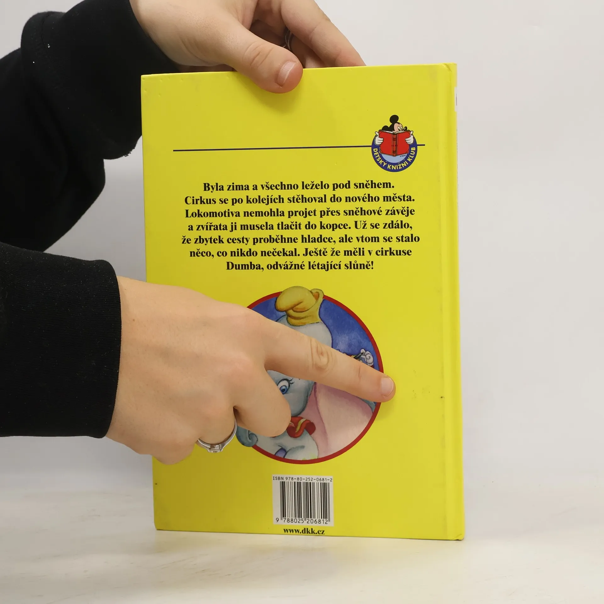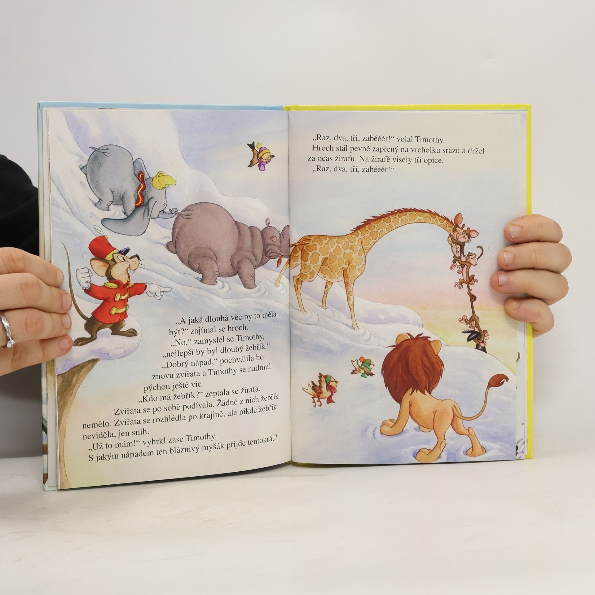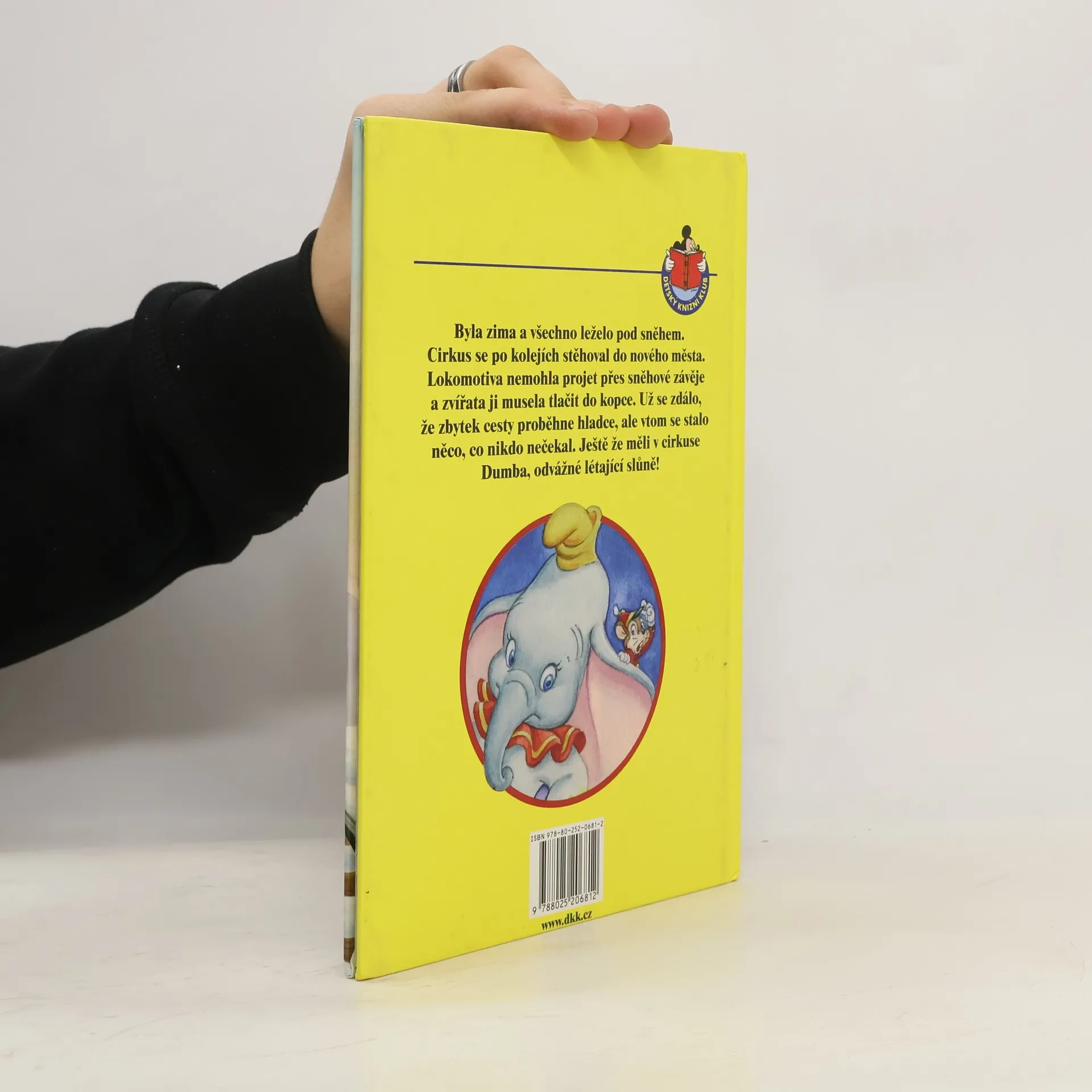 Byla zima a vše leželo pod sněhem. Cirkus se po kolejích stěhoval do nového města. Lokomotiva nemohla projet přes sněhové závěje a zvířata ji musela tlačit do kopce. Už se zdálo, že zbytek cesty proběhne hladce, ale v tom se stalo něco, co nikdo nečekal. Ještě že měli v cirkuse Dumba, odvážné létající slůně!
