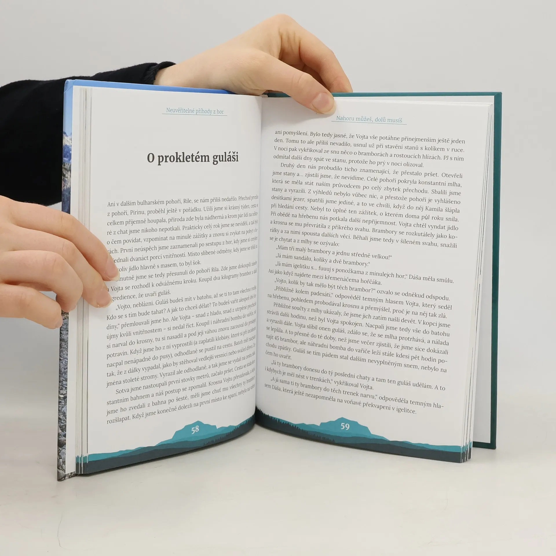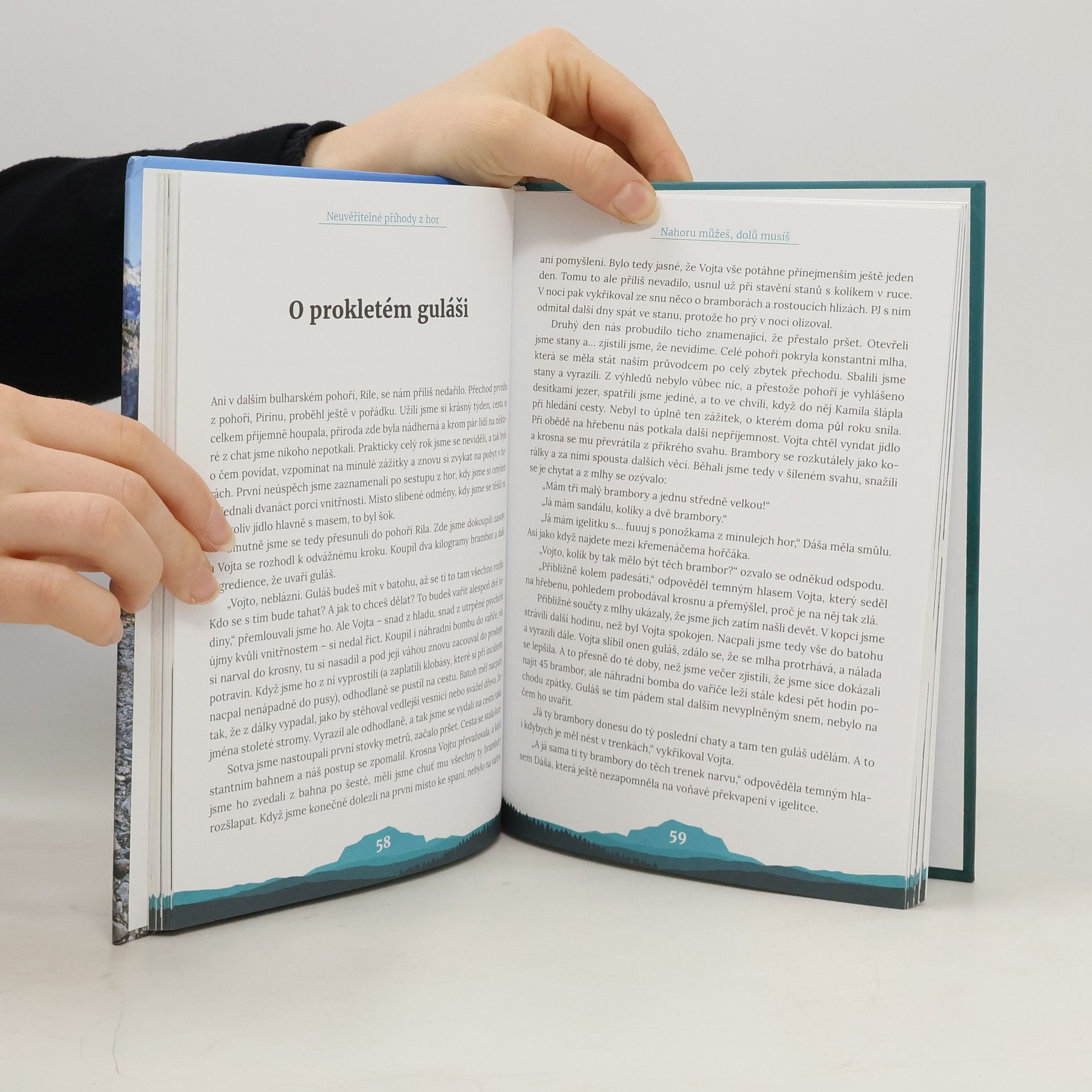 Co se stane, když expedici vede gumové kuře? Jaké jsou typické sny na treku? Jak to dopadá, když chlapec vezme svoji přítelkyni na 14 dní mimo civilizaci? Ač se může na první pohled zdát, že se úsměvné a někdy až k smíchu přivádějící příběhy z této knihy odehrávají v čistě horském prostředí, není tomu tak. Během čtení čtenář zjistí, že jsou to příběhy napsané životem a o životě každého z nás. A jako i v životě, tak i na horách zdoláváte vrcholy i pády, ale s partou kamarádů jde všechno líp.