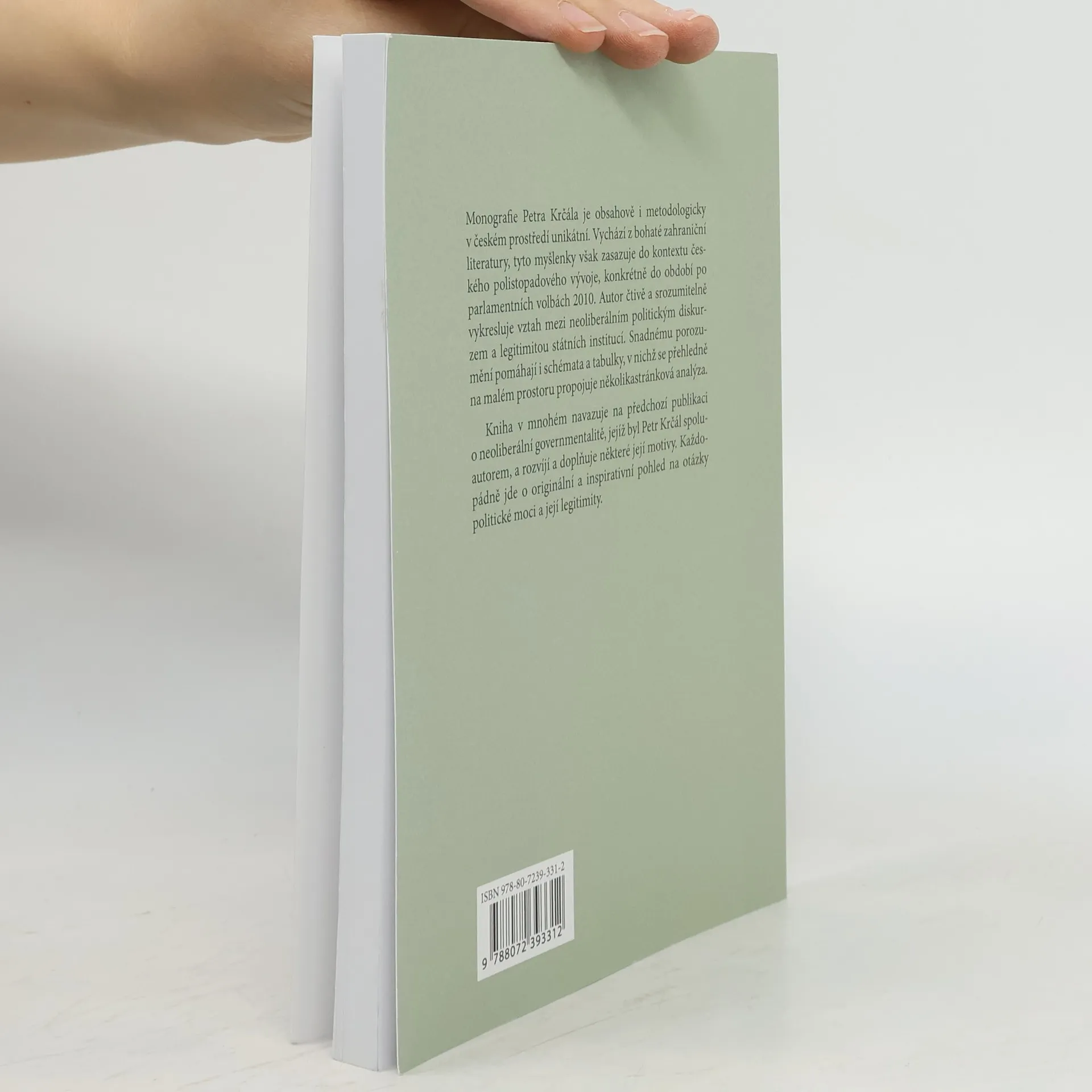 Monografie Petra Krčála je obsahově i metodologicky v českém prostředí unikátní. Vychází z bohaté zahraniční literatury, tyto myšlenky však zasazuje do kontextu českého polistopadového vývoje, konkrétně do období po parlamentních volbách 2010. Autor čtivě a srozumitelně vykresluje vztah mezi neoliberálním politickým diskurzem a legitimitou státních institucí. Snadnému porozumění pomáhají i schémata a tabulky, v nichž se přehledně na malém prostoru propojuje několikastránková analýza. Kniha v mnohém navazuje na předchozí publikaci o neoliberální governmentalitě, jejíž byl Petr Krčál spoluautorem, a rozvíjí a doplňuje některé její motivy. Každopádně jde o originální a inspirativní pohled na otázky politické moci a její legitimity.