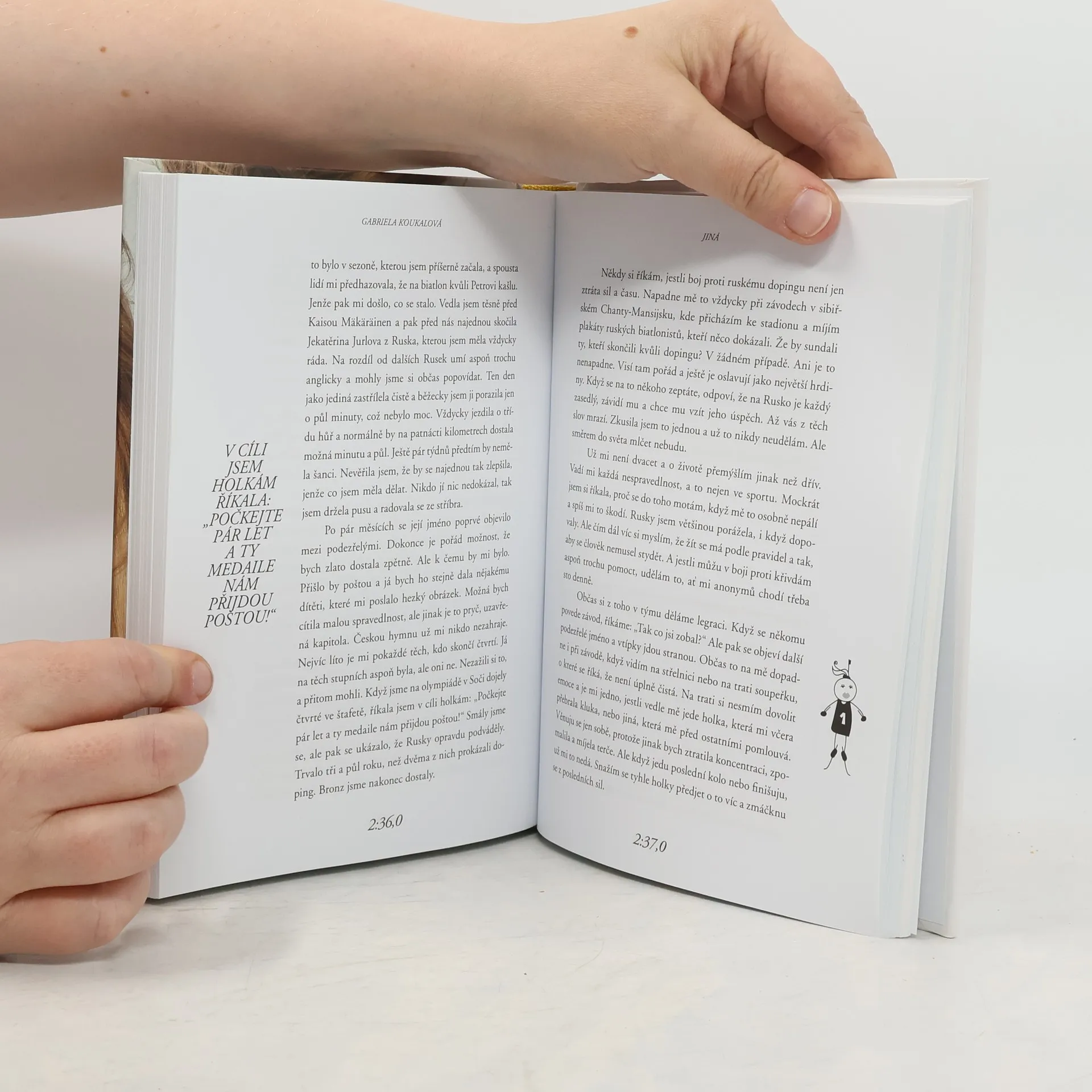 Zažila slávu, úspěchy, medaile. Ale taky spoustu okamžiků, o kterých dosud nikomu neřekla. O některých proto, že se bála, o dalších proto, že se styděla. Teď je Gabriela Koukalová poprvé odhaluje ve své biografii. Vychází sportovní i osobní zpověď nejlepší biatlonistky naší historie. Mistryně světa, olympijské medailistky, vítězky Světového poháru. Kniha je psaná autenticky v první osobě a odhaluje zákulisí tréninkové dřiny, nejdůležitějších závodů i mysli vrcholové sportovkyně v těch nejvypjatějších momentech. Gabriela jde ve svých pocitech na dřeň. Popisuje nejen velké výhry, ale i to, co se skrývá za nimi. Třeba desítky probrečených nocí, spory s rodiči a trenéry, ne vždy ideální atmosféra v týmu nebo těžká nemoc, kterou před světem dlouho tajila… Součástí knihy jsou i dosud nezveřejněné fotografie.