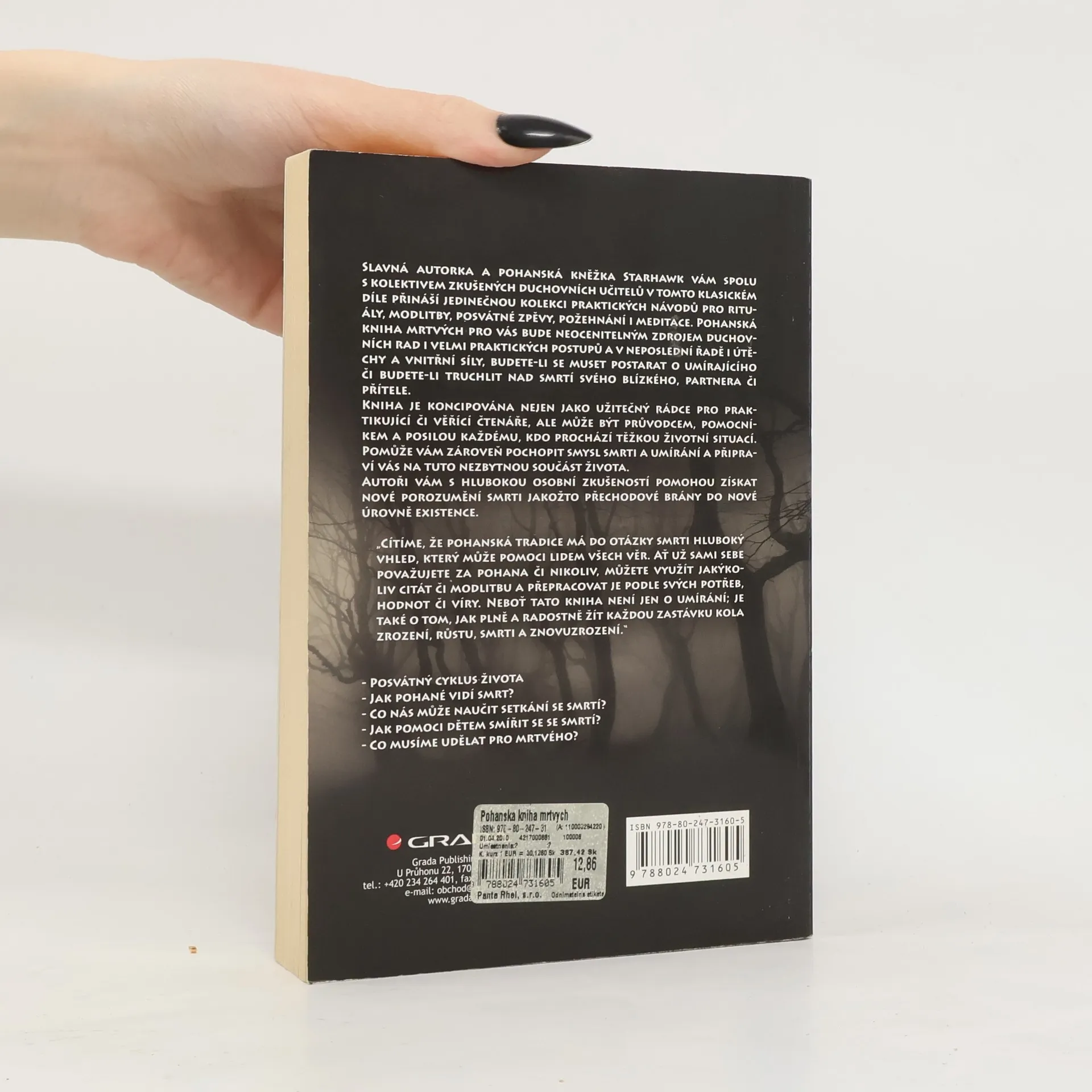 Slavná autorka Starhawk vám ve svém klasickém díle přináší praktické návody pro rituály, modlitby, posvátné zpěvy, požehnání i meditace. Pohanská kniha mrtvých pro vás bude neocenitelným zdrojem duchovních rad i velmi praktických technik, budete-li se muset postarat o umírajícího, či budete-li truchlit nad smrtí svého blízkého, partnera či přítele. Pomůže vám zároveň pochopit smysl smrti a připraví vás samotné na tuto nezbytnou součást života.S hlubokou osobní zkušeností vám autorka pomůže získat nové porozumění smrti, jakožto přechodové brány do nové úrovně existence. Kniha zaujme všechny zájemce o pohanství, bílou magii, ale i o problematiku smrti a znovuzrození.