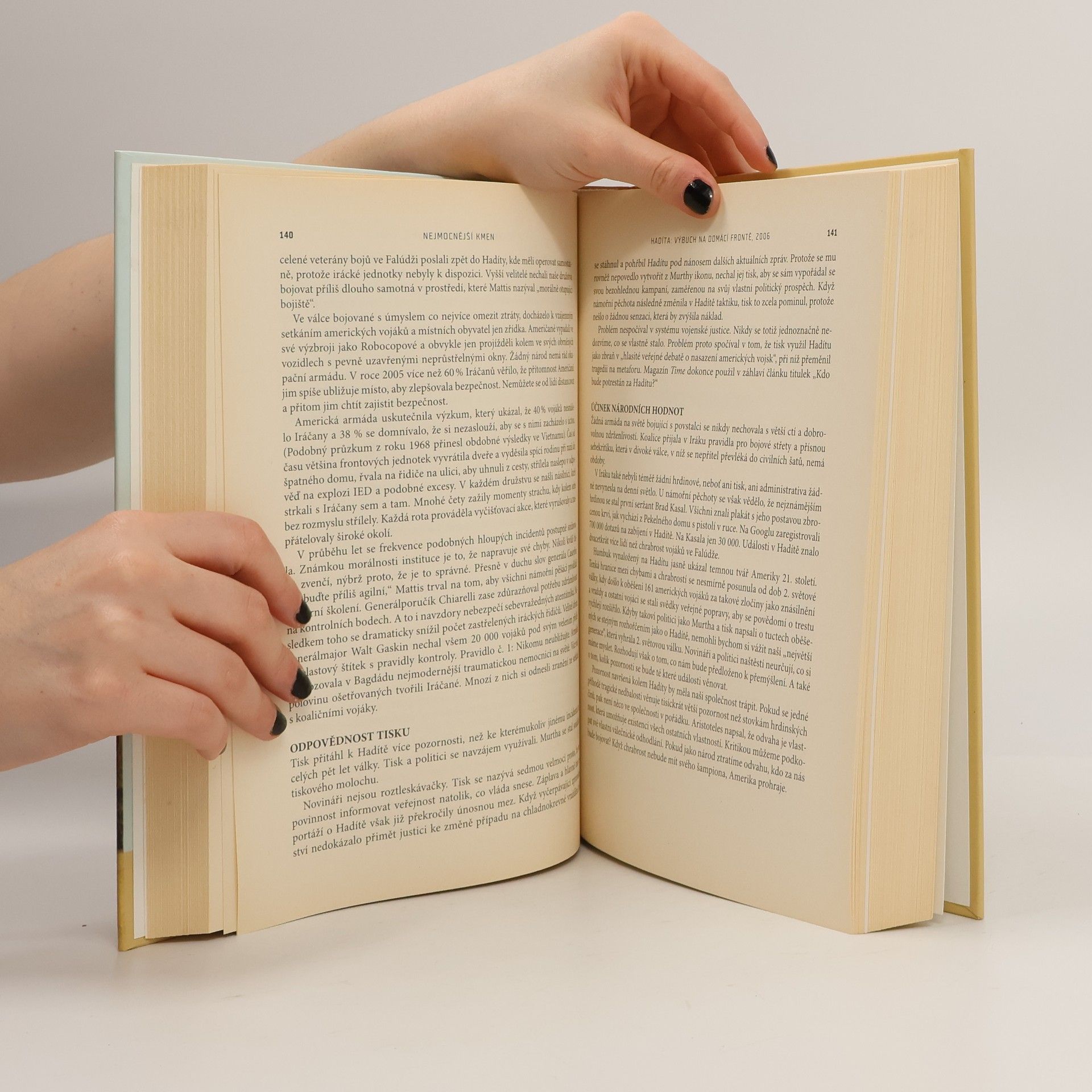Napínavá historie od všeobecně uznávaného válečného dopisovatele vychází z šesti let frontových reportáží o vývoji války a možnostech, před nimiž nyní Amerika stojí. V průběhu zuřivých bojů o Falúdžu se Bing West zeptal svého známého plukovníka nové irácké armády, proč jeden z vůdců teroristů Abú Musab al-Zarkáví uprchl z města v přestrojení do ženských šatů. Plukovník kývl hlavou k hlídce americké námořní pěchoty procházející okolo a řekl: „Vy Američané jste totiž nejmocnější kmen.“ Spojené státy se dopouštěly v Iráku jedné chyby za druhou. Mnozí Američané začali proto na válku kašlat. Pak však došlo k prudkému obratu. Generálové David Petraeus a Raymond Odierno začali předvádět způsob velení, který Amerika očekávala. Toto pozoruhodné vyprávění přivádí čtenáře z Bílého domu přímo mezi americké vojáky účastnící se pouličních bojů a vysvětluje, proč dokázali situaci zvrátit.
