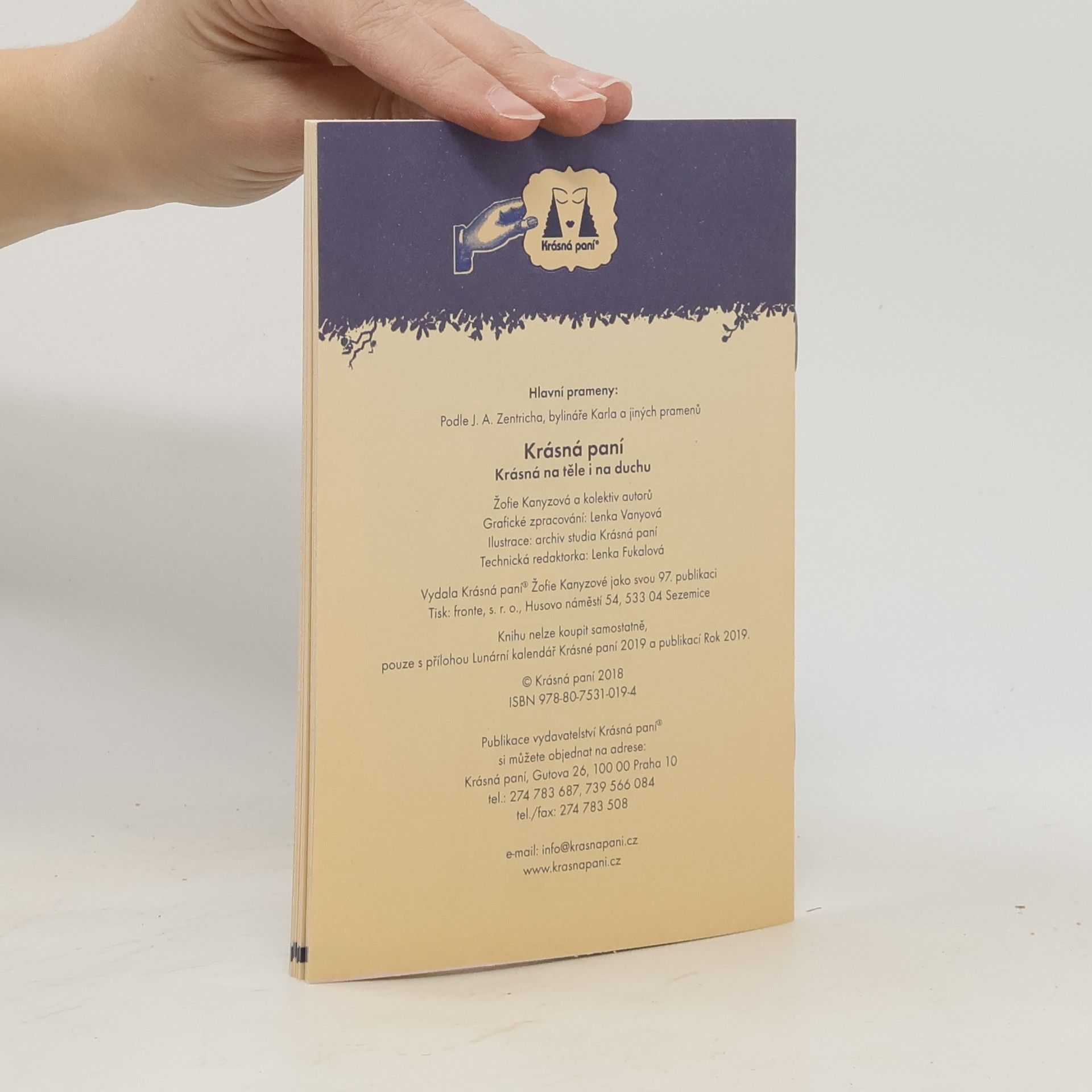 Lunární kalendář Krásné paní nabízí praktické rady pro každodenní život vztahující se k podobě a pohybu Měsíce ve zvěrokruhu i užitečný přehled dění na obloze v roce 2019. Letošní téma je tradiční motto: krásná na těle i na duchu.