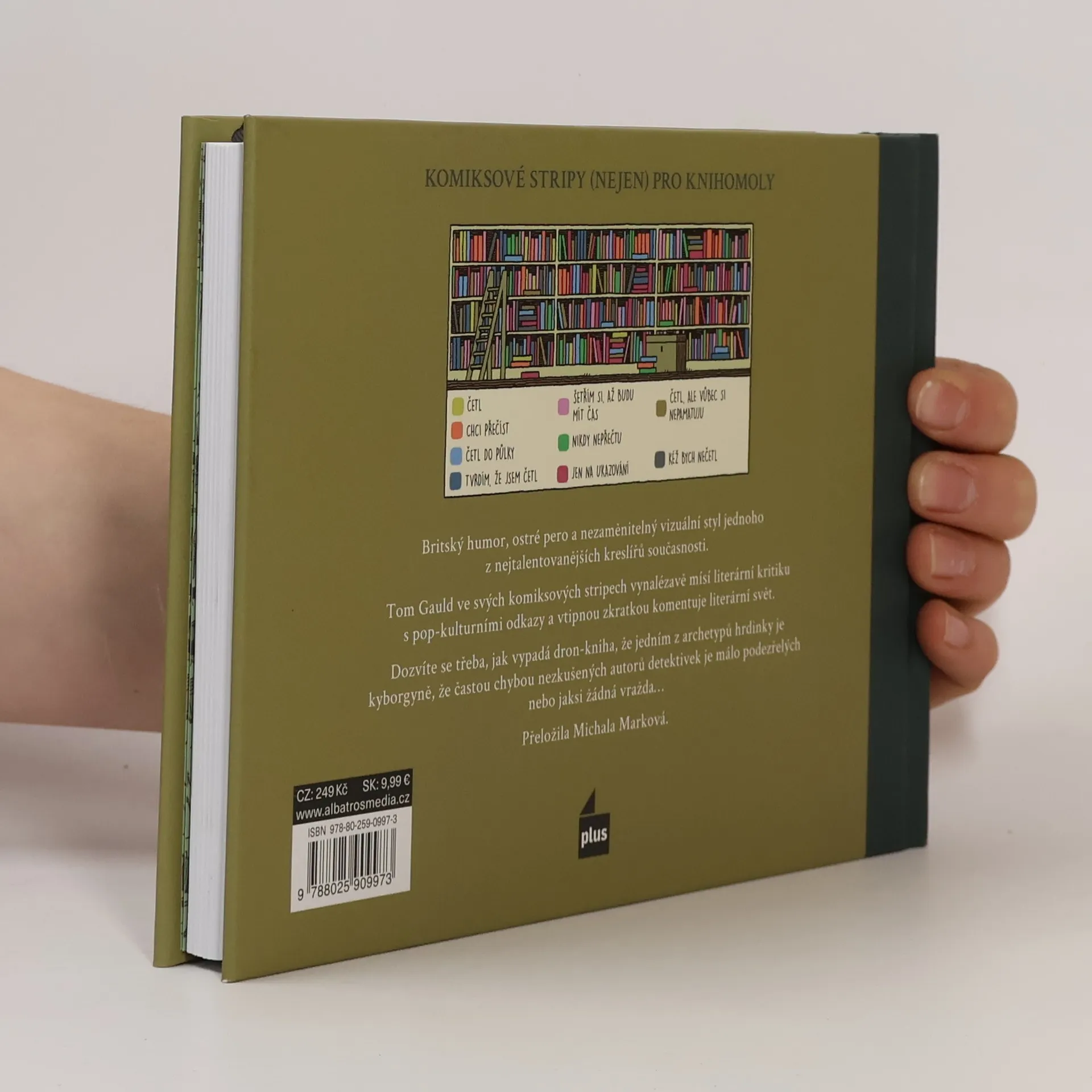 Britský humor, ostré pero a nezaměnitelný vizuální styl jednoho z nejtalentovanějších kreslířů současnosti. Týden co týden kreslí Tom Gauld stripy pro britský deník The Guardian. Vynalézavě v nich mísí literární kritiku s pop-kulturními odkazy a vtipnou zkratkou komentuje literární svět. Dozvíte se třeba, jak vypadá dron-kniha, že jedním z archetypů hrdinky je kyborgyně, že častý omyl nezkušených autorů detektivek je málo podezřelých nebo jaksi žádná vražda… Můžete si také udělat kvíz: ROMÁNY SE PŘEKLÁDAJÍ POMOCÍ… černé magie, minirobotů, tvrdé práce, osmózy? Tyto komiksové stripy pro vás ovšem přeložila Michala Marková! Ilustrátor a komiksový kreslíř Tom Gauld se narodil v roce 1976 a vyrostl ve skotském hrabství Aberdeen. Pravidelně přispívá svými komiksovými stripy do periodik The Guardian, The New York Times a The New Scientist. Žije s rodinou v Londýně.