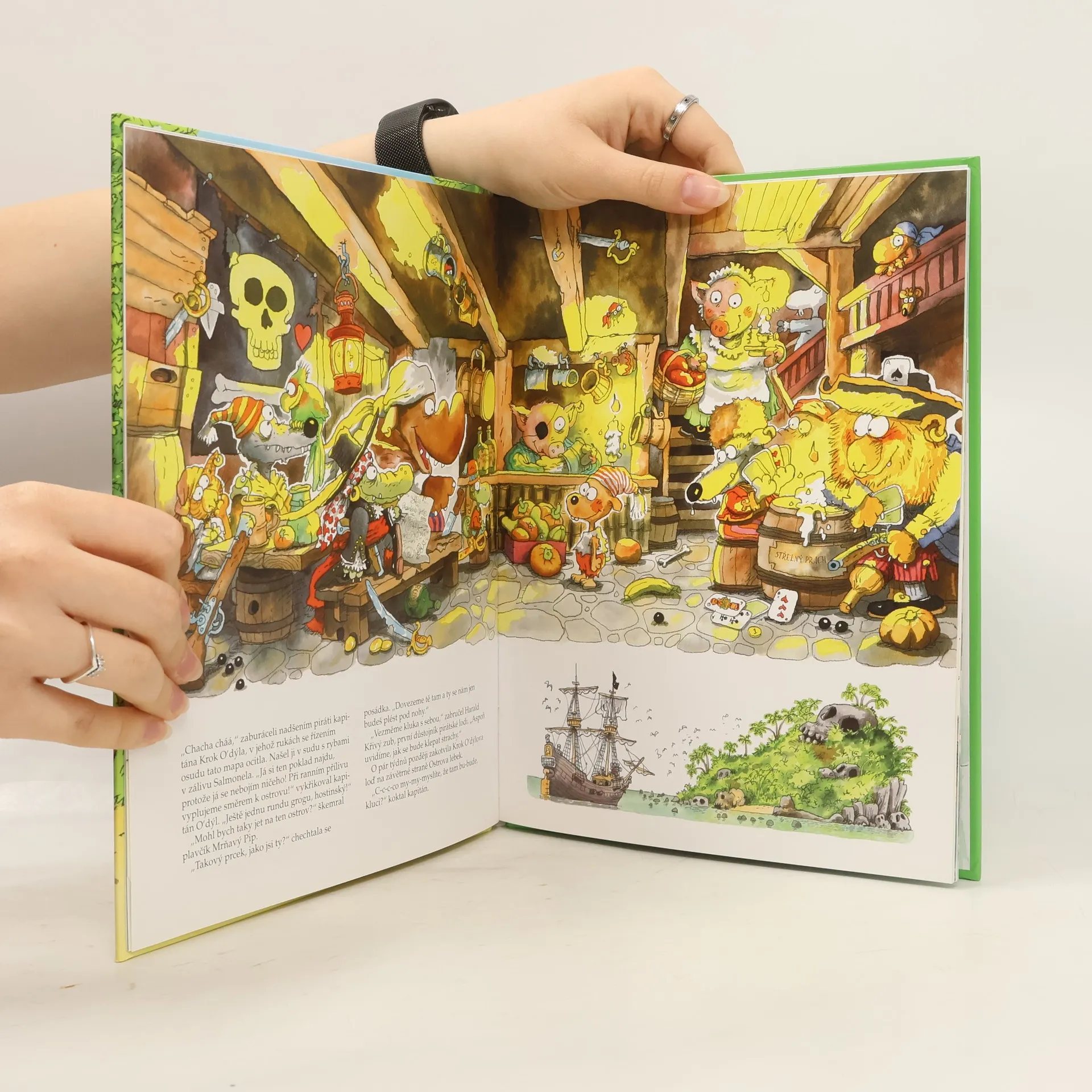 Máte rádi piráty? Pak je tahle knížka, plná barevných obrázků, přesně pro vás. Šest příběhů velkých pirátských kapitánů a bukanýrů, pirátské princezny a jednoho trosečníka je skutečně napínavých. Na velkých obrázcích plných veselých příběhů, zvířat a jiných bytostí najdete vše, co od povídání o pirátech očekáváme - dřevěné lodi, lodní děla, mořské obludy, mapu pokladu, ztroskotaný vrak a samozřejmě ukryté zlato a drahokamy. Knížka vás bude bavit a na obrázcích je tolik podrobností, že si je můžete prohlížet celý den.