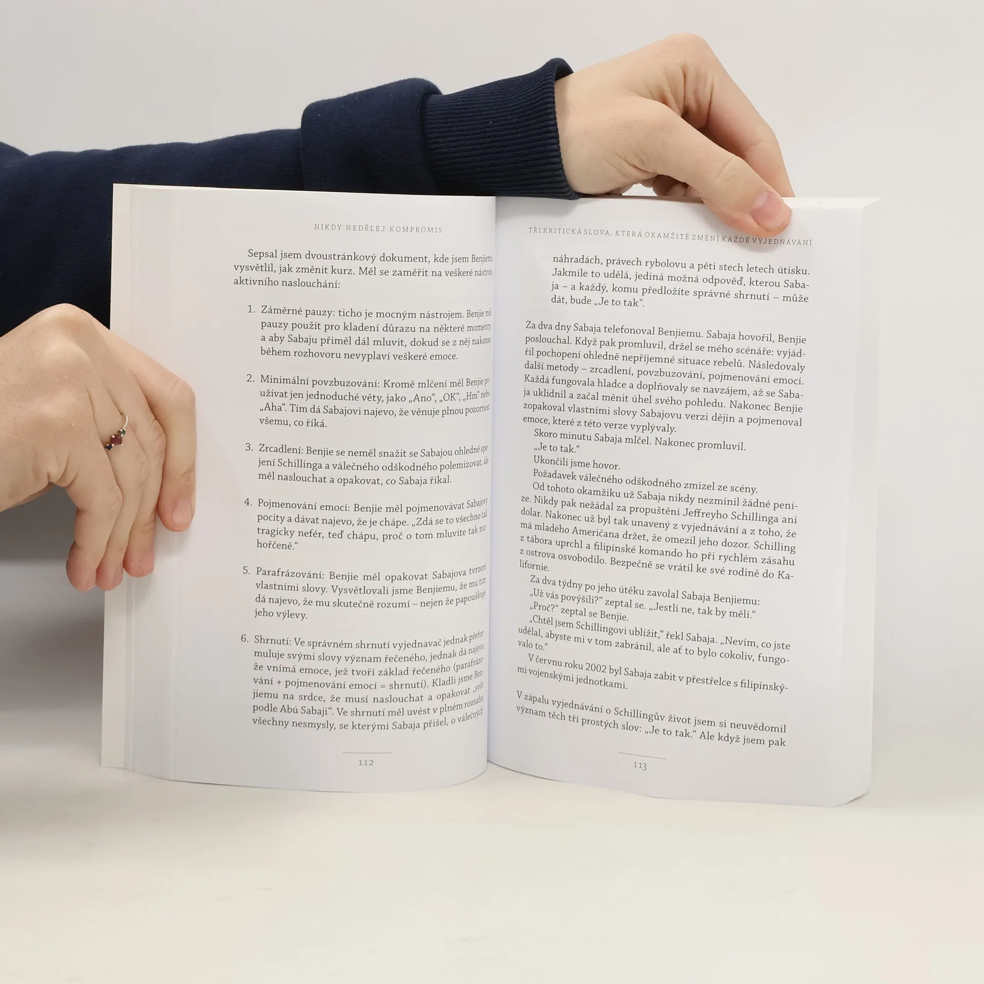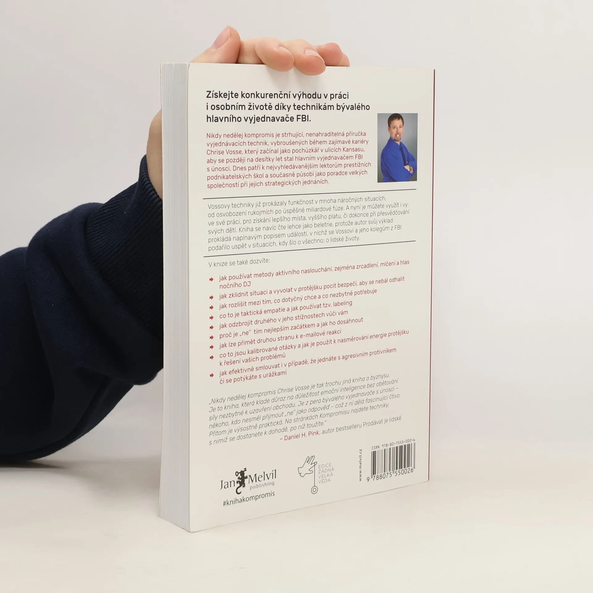 Život je plný vyjednávání, ať už se jedná o nákup auta, pořízení domu nebo sjednání podmínek s partnerem či dětmi. Klasické knihy jako Getting to Yes či Crucial Conversations obohatily arzenál vyjednavačů, avšak některé metody se ukázaly jako neefektivní a potřebují aktualizaci. Chris Voss, bývalý hlavní vyjednavač FBI, přináší nový, na neurovědě podložený přístup. Začínal jako běžný policista a postupně se vypracoval na specialistu na vyjednávání s nebezpečnými zločinci, kde šlo o lidské životy. V těchto situacích nelze dělat kompromisy. Vossův přístup, založený na dlouholeté praxi a výzkumech FBI, nenahrazuje předchozí metody, ale rozvíjí je a překonává. FBI jako první začala v jednáních pracovat s emocemi, zatímco dříve se vyučoval přístup založený na racionálním jednání obou stran. Po 25 letech ve FBI se Voss zaměřil na firemní vyjednávání a stal se vyhledávaným konzultantem, který asistuje u obchodních jednání Fortune 500 a přednáší na prestižních školách jako Harvard či MIT. Jeho kniha představuje významný a praktický příspěvek k tématu vyjednávání, které ovlivňuje naše osobní i pracovní životy.