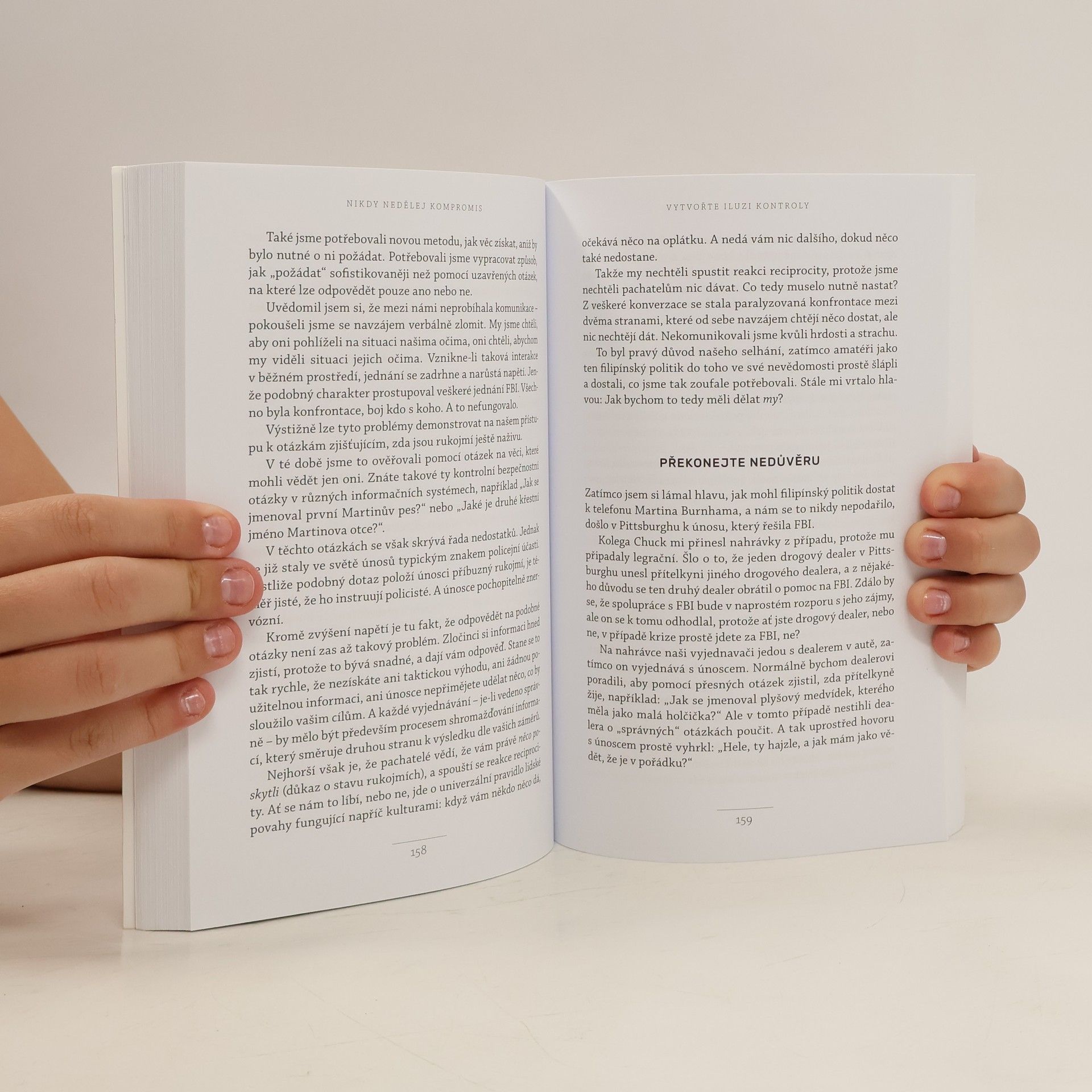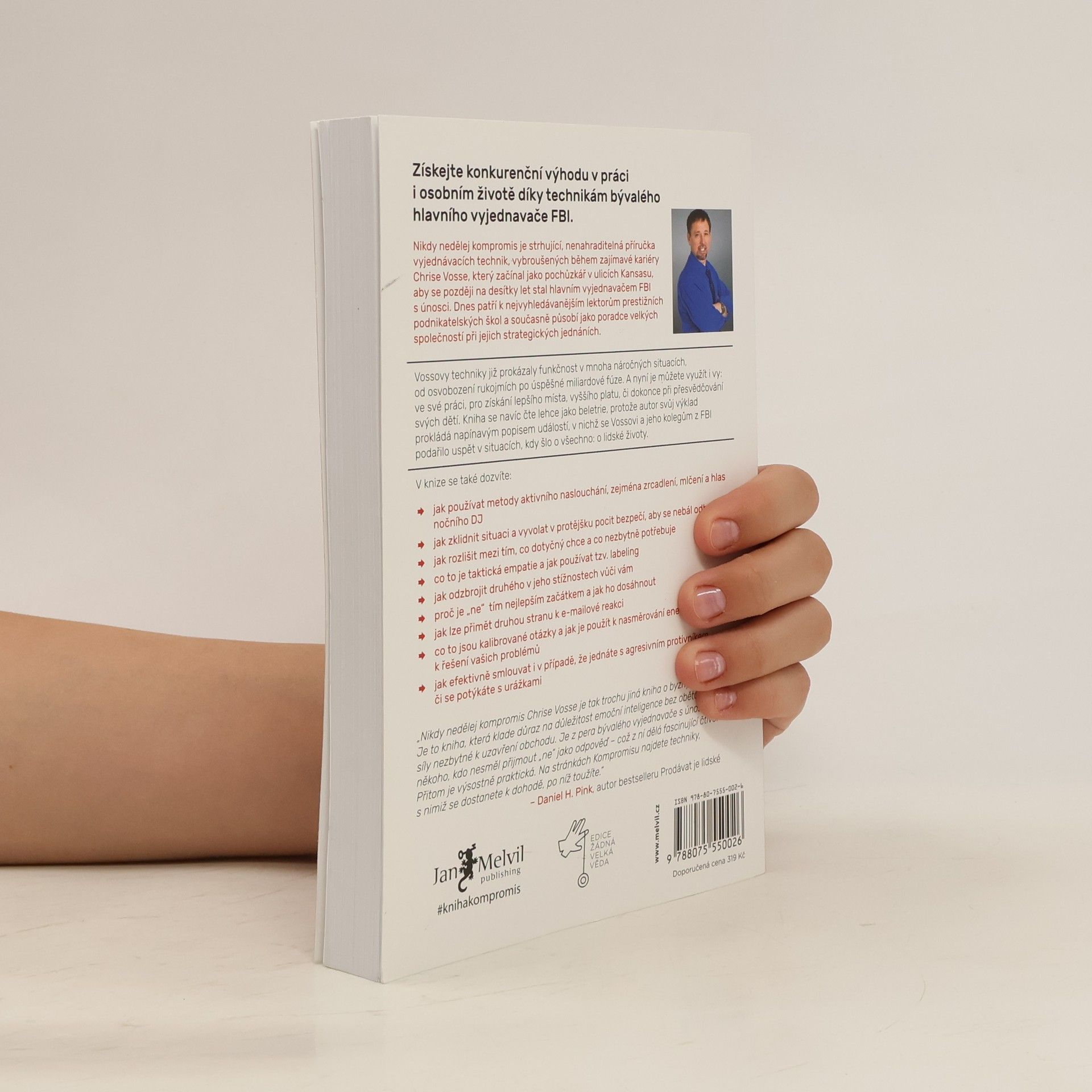 Život je plný vyjednávání, ať už se jedná o nákup auta, pořízení domu nebo sjednání podmínek s partnerem či dětmi. Klasické knihy jako Getting to Yes či Crucial Conversations obohatily arzenál vyjednavačů, avšak některé metody se ukázaly jako neefektivní a potřebují aktualizaci. Chris Voss, bývalý hlavní vyjednavač FBI, přináší nový, na neurovědě podložený přístup. Začínal jako běžný policista a postupně se vypracoval na specialistu na vyjednávání s nebezpečnými zločinci, kde šlo o lidské životy. V těchto situacích nelze dělat kompromisy. Vossův přístup, založený na dlouholeté praxi a výzkumech FBI, nenahrazuje předchozí metody, ale rozvíjí je a překonává. FBI jako první začala v jednáních pracovat s emocemi, zatímco dříve se vyučoval přístup založený na racionálním jednání obou stran. Po 25 letech ve FBI se Voss zaměřil na firemní vyjednávání a stal se vyhledávaným konzultantem, který asistuje u obchodních jednání Fortune 500 a přednáší na prestižních školách jako Harvard či MIT. Jeho kniha představuje významný a praktický příspěvek k tématu vyjednávání, které ovlivňuje naše osobní i pracovní životy.