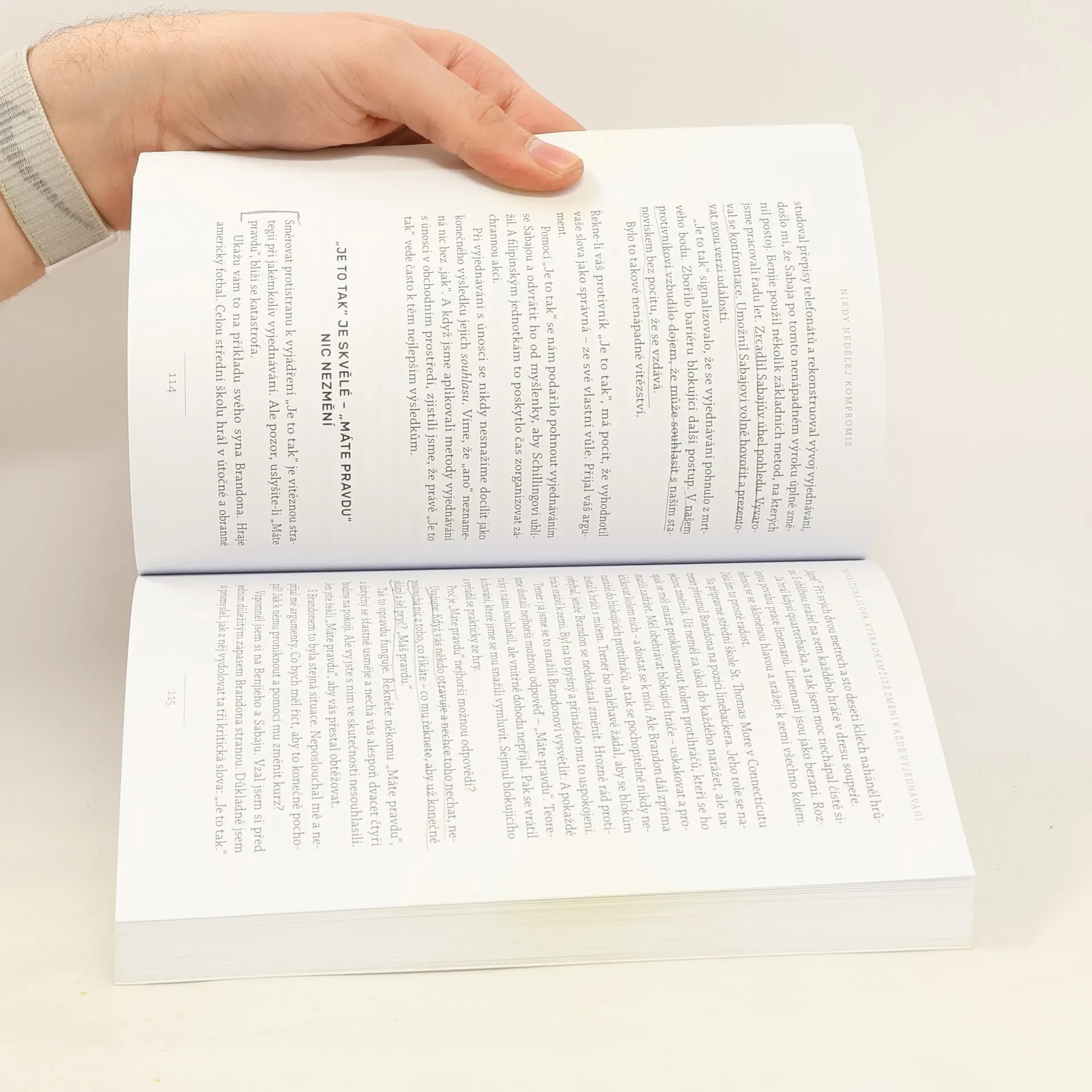 Život je plný vyjednávání, ať už se jedná o nákup auta, pořízení domu nebo sjednání podmínek s partnerem či dětmi. Klasické knihy jako Getting to Yes či Crucial Conversations obohatily arzenál vyjednavačů, avšak některé metody se ukázaly jako neefektivní a potřebují aktualizaci. Chris Voss, bývalý hlavní vyjednavač FBI, přináší nový, na neurovědě podložený přístup. Začínal jako běžný policista a postupně se vypracoval na specialistu na vyjednávání s nebezpečnými zločinci, kde šlo o lidské životy. V těchto situacích nelze dělat kompromisy. Vossův přístup, založený na dlouholeté praxi a výzkumech FBI, nenahrazuje předchozí metody, ale rozvíjí je a překonává. FBI jako první začala v jednáních pracovat s emocemi, zatímco dříve se vyučoval přístup založený na racionálním jednání obou stran. Po 25 letech ve FBI se Voss zaměřil na firemní vyjednávání a stal se vyhledávaným konzultantem, který asistuje u obchodních jednání Fortune 500 a přednáší na prestižních školách jako Harvard či MIT. Jeho kniha představuje významný a praktický příspěvek k tématu vyjednávání, které ovlivňuje naše osobní i pracovní životy.