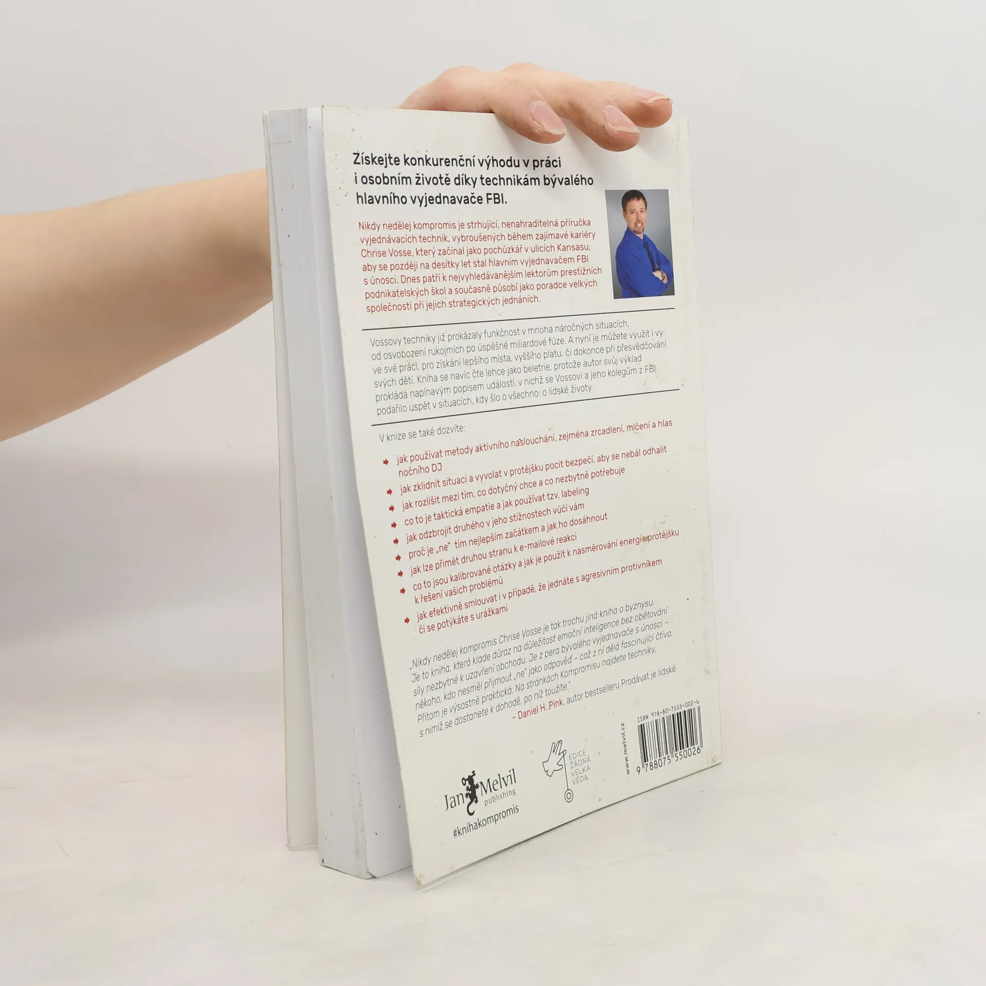 Život je plný vyjednávání, ať už se jedná o nákup auta, pořízení domu nebo sjednání podmínek s partnerem či dětmi. Klasické knihy jako Getting to Yes či Crucial Conversations obohatily arzenál vyjednavačů, avšak některé metody se ukázaly jako neefektivní a potřebují aktualizaci. Chris Voss, bývalý hlavní vyjednavač FBI, přináší nový, na neurovědě podložený přístup. Začínal jako běžný policista a postupně se vypracoval na specialistu na vyjednávání s nebezpečnými zločinci, kde šlo o lidské životy. V těchto situacích nelze dělat kompromisy. Vossův přístup, založený na dlouholeté praxi a výzkumech FBI, nenahrazuje předchozí metody, ale rozvíjí je a překonává. FBI jako první začala v jednáních pracovat s emocemi, zatímco dříve se vyučoval přístup založený na racionálním jednání obou stran. Po 25 letech ve FBI se Voss zaměřil na firemní vyjednávání a stal se vyhledávaným konzultantem, který asistuje u obchodních jednání Fortune 500 a přednáší na prestižních školách jako Harvard či MIT. Jeho kniha představuje významný a praktický příspěvek k tématu vyjednávání, které ovlivňuje naše osobní i pracovní životy.