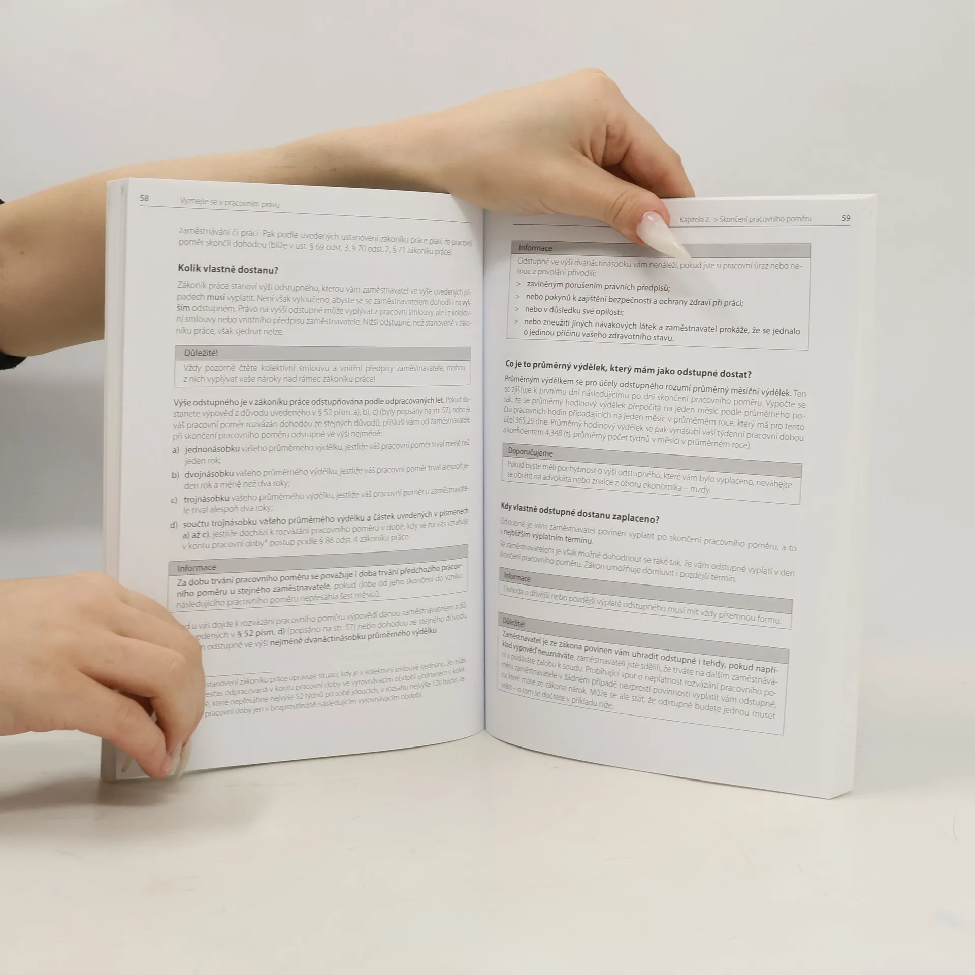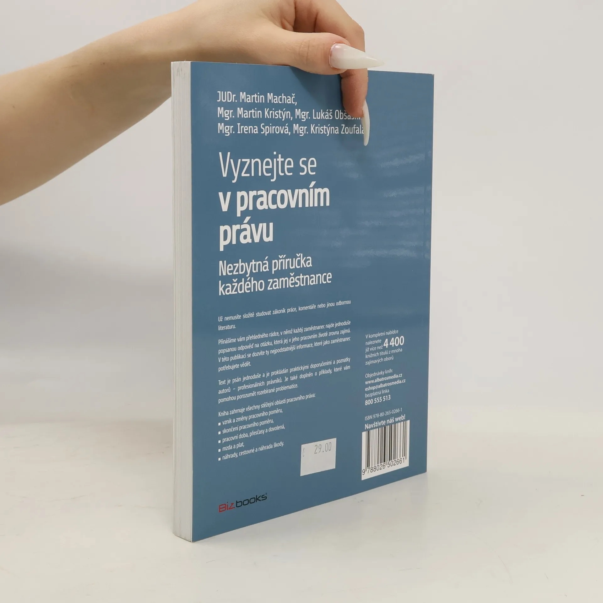 Podtitul: Nezbytná příručka pro každého zaměstnance Už nemusíte složitě studovat zákoník práce, komentáře nebo jinou odbornou literaturu. Přinášíme vám přehledného rádce, v němž každý zaměstnanec najde jednoduše popsanou odpověď na otázku, která jej v jeho pracovním životě zrovna zajímá. V této publikaci se dozvíte ty nejpodstatnější informace, které jako zaměstnanec potřebujete vědět. Text je psán srozumitelným jazykem a je prokládán praktickými doporučeními a poznatky autorů – profesionálních právníků. Je také doplněn o praktické příklady, které vám pomohou porozumět rozebírané problematice. Kniha zahrnuje všechny stěžejní oblasti pracovního práva: - vznik a změny pracovního poměru - skončení pracovního poměru, - pracovní doba, přesčasy a dovolená - mzda a plat - náhrady, cestovné a náhrada škody. Autoři se zaměřili na témata, která jsou podle jejich zkušeností pro zaměstnance nejvíce užitečná.