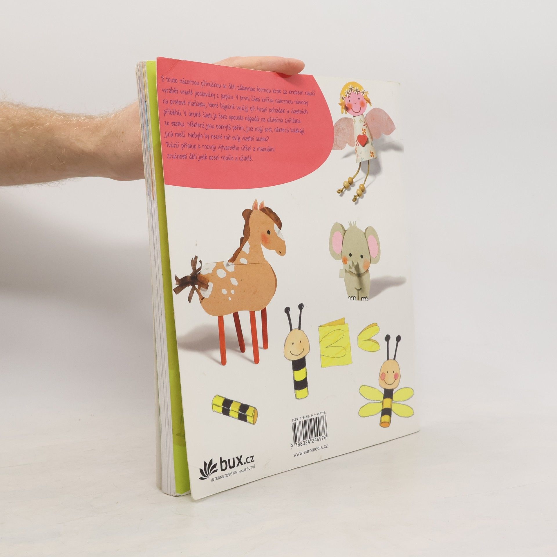 Prstové maňásky a zvířátka ze statku S touto názornou příručkou se děti zábavnou formou krok za krokem naučí vyrábět veselé postavičky z papíru. V první části knížky naleznou návody na prstové maňásky, které báječně využijí při hraní pohádek a vlastních příběhů. V druhé části je čeká spousta nápadů na užitečná zvířátka ze statku. Tvůrčí přístup k rozvoji výtvarného cítění a manuální zručnosti dětí ocení rodiče i učitelé.