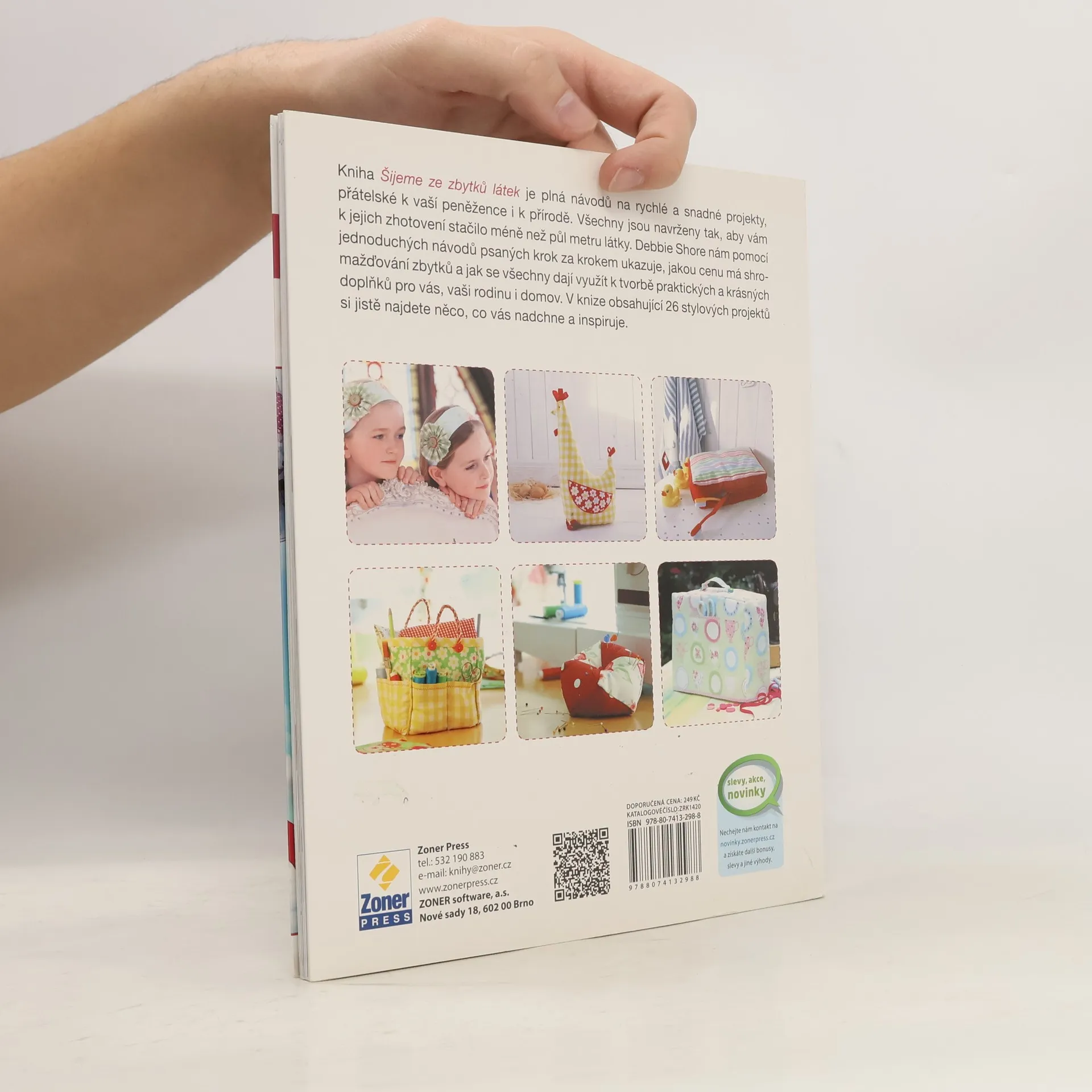 Užitečné a krásné doplňky pro vás i vaše blízké, ušité snadno, rychle a levně. Hromadí se vám doma zbytky látek, které nejsou dost velké na to, aby se z nich dalo něco kloudného ušít, a zároveň je vám líto je vyhodit? Kniha od zkušené švadlenky Debbie Shore vám předvede, jak se i takové odstřižky dají přeměnit v překrásné a užitečné doplňky. Díky přehledným návodům si krok za krokem vytvoříte praktickou zástěrku s kapsami, obal na knihu, kterým můžete spolu s knihou obdarovat své nejbližší, hřejivé domácí papučky, elegantní nákupní tašku, roztomilou slepičku jako zarážku do dveří a spoustu dalších maličkostí pro radost.