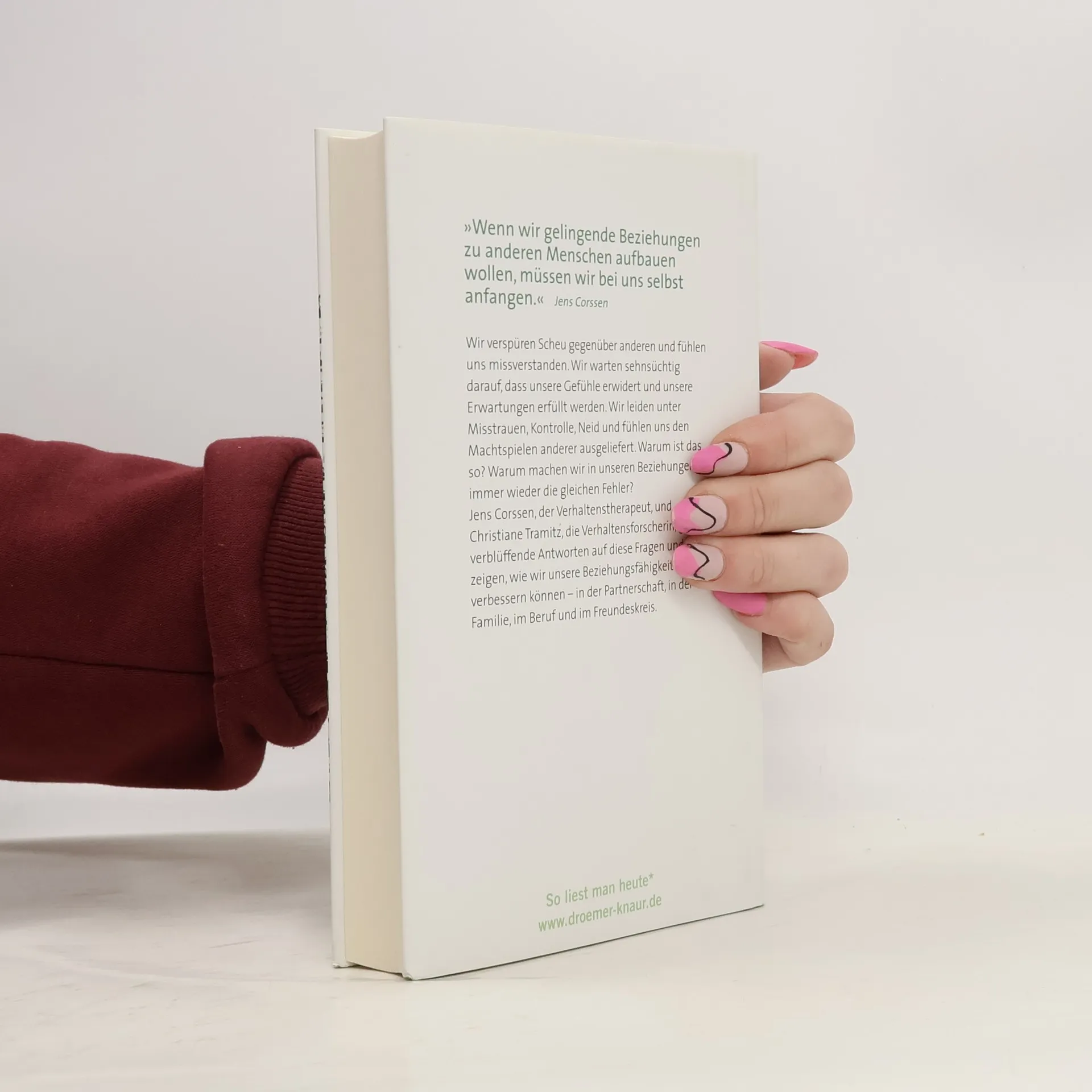Jens Corssen, Diplompsychologe und laut Manager Magazin der »Guru der deutschen Top-Manager«, ist einer der erfolgreichsten Coaches für Zielerreichung. Sein Markenzeichen ist die von ihm entwickelte Philosophie und Praxis des Selbst-Entwicklers®. Christiane Tramitz, promovierte Verhaltensforscherin, beschäftigt sich seit mehr als zwanzig Jahren mit den biologischen Grundlagen des menschlichen Verhaltens. Die Autoren präsentieren in ihrem Buch „Ich und die anderen. Als Selbst-Entwickler zu gelingenden Beziehungen“ ihre Erfahrungen und Erkenntnisse aus jahrzehntelanger Beratungspraxis und wissenschaftlicher Forschungstätigkeit. Jens Corssen und Christiane Tramitz zeigen Wege auf, um zu stabilen und respektvollen Beziehungen zu gelangen. Im Fokus stehen dabei nicht nur die Beziehungen zwischen Mann und Frau, sondern ebenso die Beziehungen zwischen Eltern und Kindern, Beziehungen innerhalb der Verwandtschaft, zwischen Chef und Untergebenem sowie die Beziehungen zwischen Kollegen. Erzählerisch und mit Augenzwinkern werden alle Stadien einer Beziehung unter die Lupe genommen, und es werden konkrete Methoden zu Verbesserung der eigenen Beziehungsfähigkeit vorgestellt.