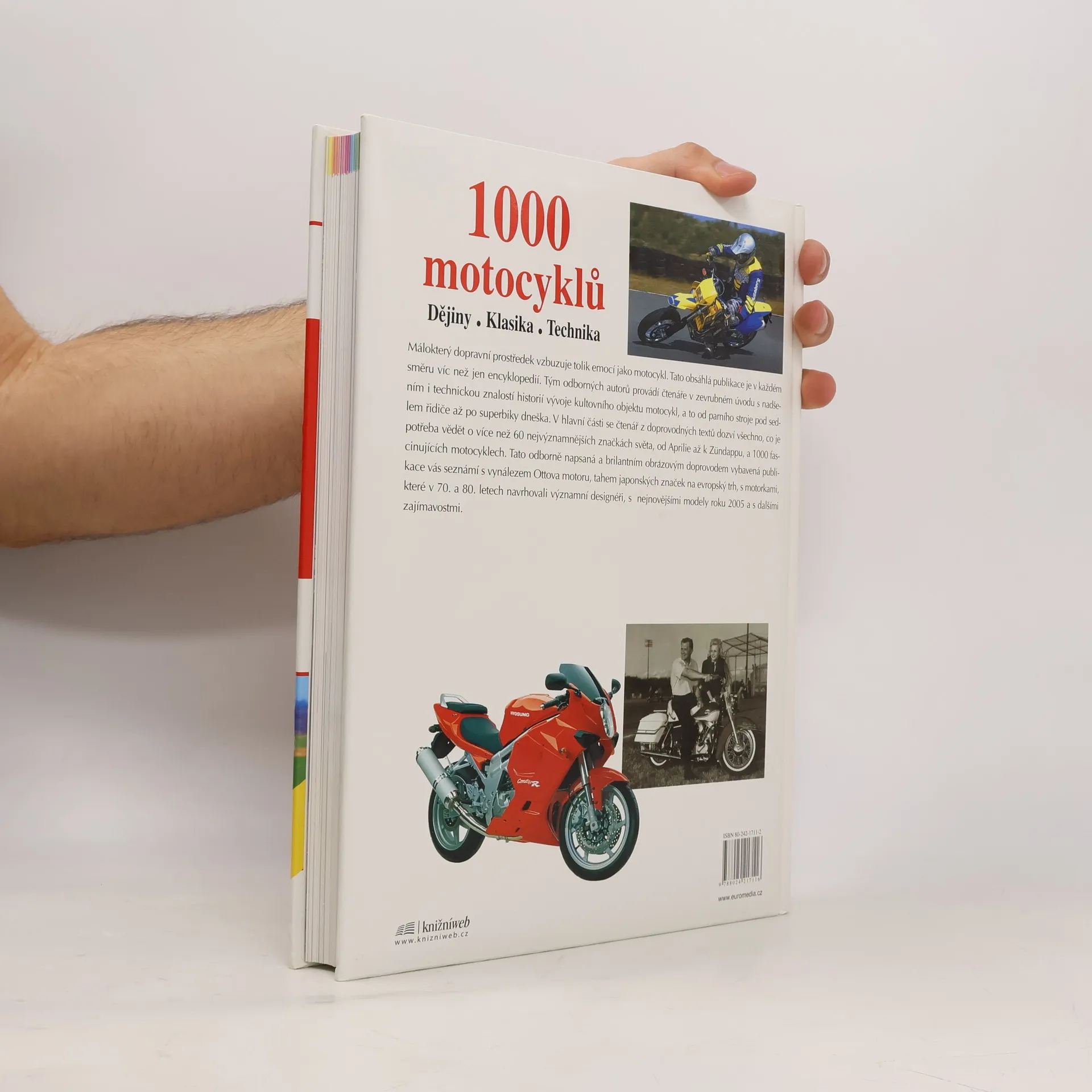 Tato obsáhlá publikace je v každém směru víc než jen encyklopedií. Tým odborných autorů provádí čtenáře historií vývoje motocyklů, od parního stroje pod sedlem řidiče až po dnešní superbiky. Čtenář se dozví vše, co je potřeba vědět o více než 60 nejvýznamnějších značkách světa a 1000 fascinujících motocyklech. Kniha obsahuje také brilantní obrazový doprovod.