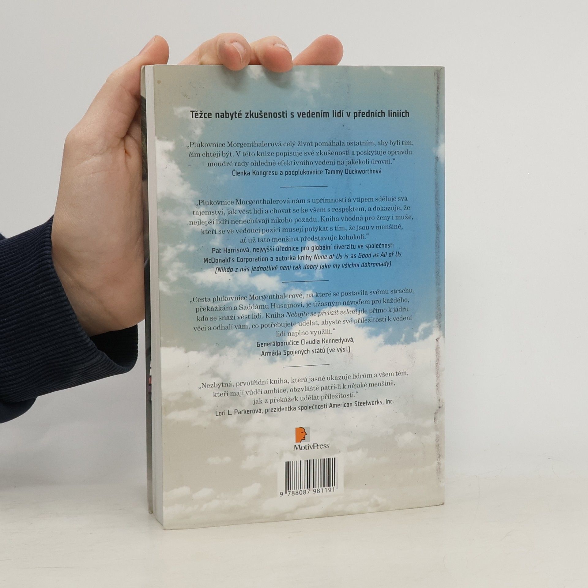 Jedna z prvních plukovnic v americké armádě sdílí své zkušenosti s vedením lidí. Jill Morgenthalerová, která v roce 1975 přišla do výcvikového tábora jako jedna z 83 kadetek mezi 50 000 muži, ví, jak překonávat překážky. V knize poskytuje cenné rady o vedení vycházející z její třicetileté vojenské služby, od prvního dne v Armádním sboru záložních důstojníků až po nasazení v nebezpečných válečných zónách. Naučila se, že vedení nespočívá v rozkazování, ale v nalezení rovnováhy mezi rozumem a citem, odstupem a blízkostí. Doporučuje zachovat si vizi, ale být otevřený novým myšlenkám, řešit překážky obratně a chránit tým. Je důležité dávat najevo své vedení a zároveň podporovat slabší členy. Udržujte týmového ducha, ale netolerujte průměrnost. Přijměte vlastní strach, ale nenechte se jím ovládat. Mějte plán, ale důvěřujte instinktu a vyjadřujte sebedůvěru s pokorou. Morgenthalerová, silná a empatická, využívá své zkušenosti k vytvoření přístupu k vedení, který pomůže uspět na všech úrovních organizace. Kniha popisuje metody a postupy, které vám umožní uskutečnit svou vůdčí vizi a inspirovat tým, i když se zdá, že vše hraje proti vám.