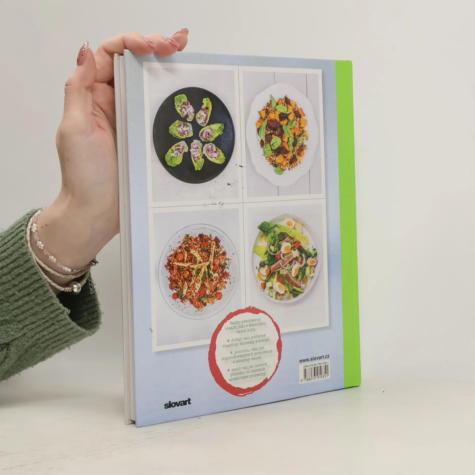 Saláty prošly za poslední roky velkou proměnou. Zahraniční dovolené vyvolaly zájem o kulinářské objevy, a protože je dnes v obchodech k dostání mnoho pro nás nových surovin, můžete si připravovat saláty z celého světa a zkoušet stále nové nápady. Odborníci na zdravou výživu se totiž shodují v tom, že klíčem ke zdravé stravě je rozmanitost. Stačí si tedy každý den vybrat ze Salátového baru některý z vyzkoušených receptů, inspirovat se lákavou fotografií a máte na talíři svou pravidelnou dávku vitaminů a minerálů. Co takhle dát si špenátový salát s pancettou a houbami nebo salát s avokádem, paprikou a kukuřicí či indický salát z červeného zelí? Kniha vás naučí jíst čerstvé, přírodní, co nejméně zpracované potraviny. A pochutnávat si na nich.