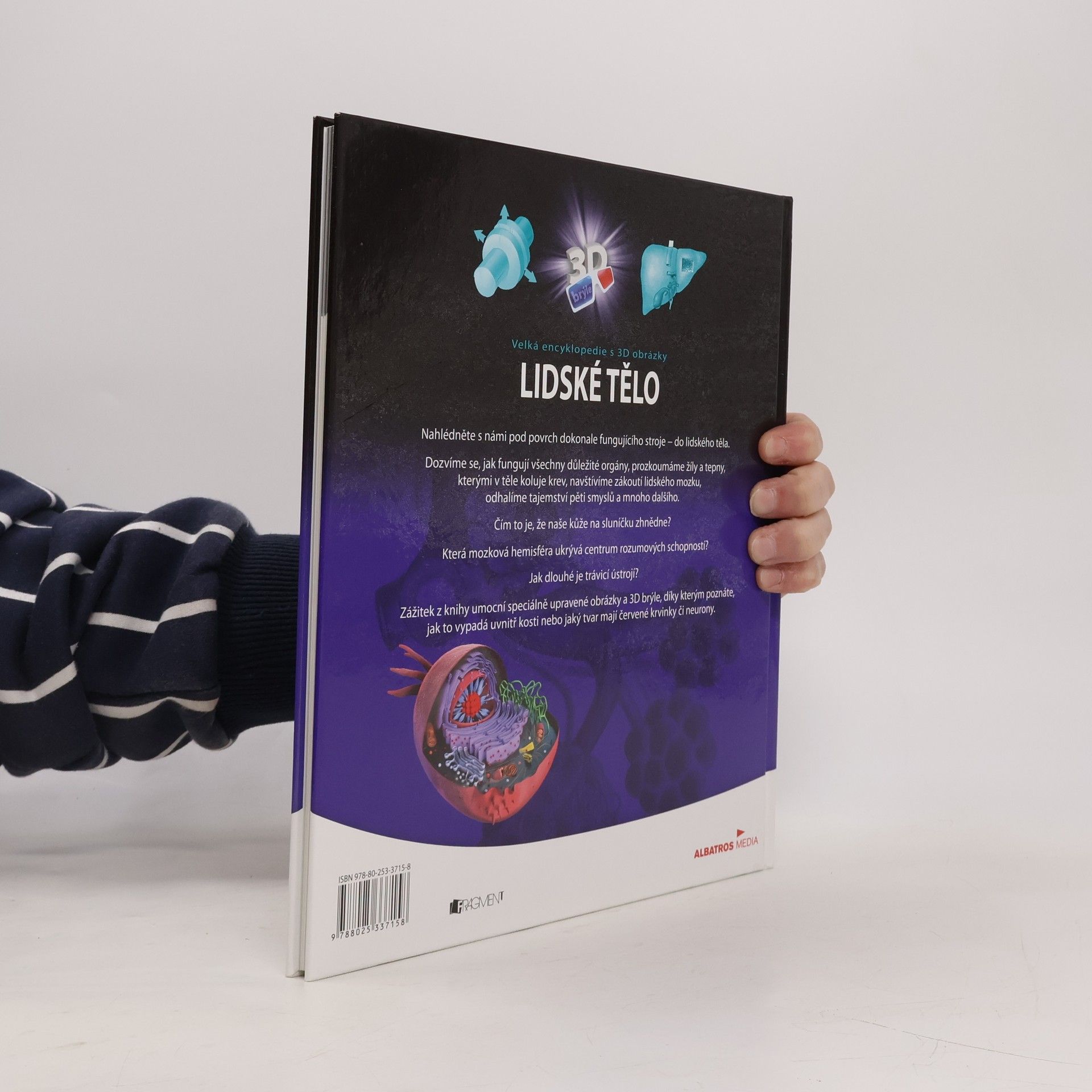 Nahlédněne s námi pod povrch dokonale fungujícího stroje - do lidského těla. Dozvíme se, jak fungují všechny důležité orgány, prozkoumáme žíly a tepny, kterými v těle koluje krev, navštívíme zákoutí lidského mozku, odhalíme tajemství pěti smyslů a mnoho dalšího. Čím to je, že naše kůže na sluníčku zhnědne? Která mozková hemisféra ukrývá centrum rozumových schopností? Jak dlouhé je trávicí ústrojí? Zážitek z knihy umocní speciálně upravené obrázky a 3D brýle, díky kterým poznáte, jak to vypadá uvnitř kosti nebo jaký tvar mají červené krvinky či neurony.