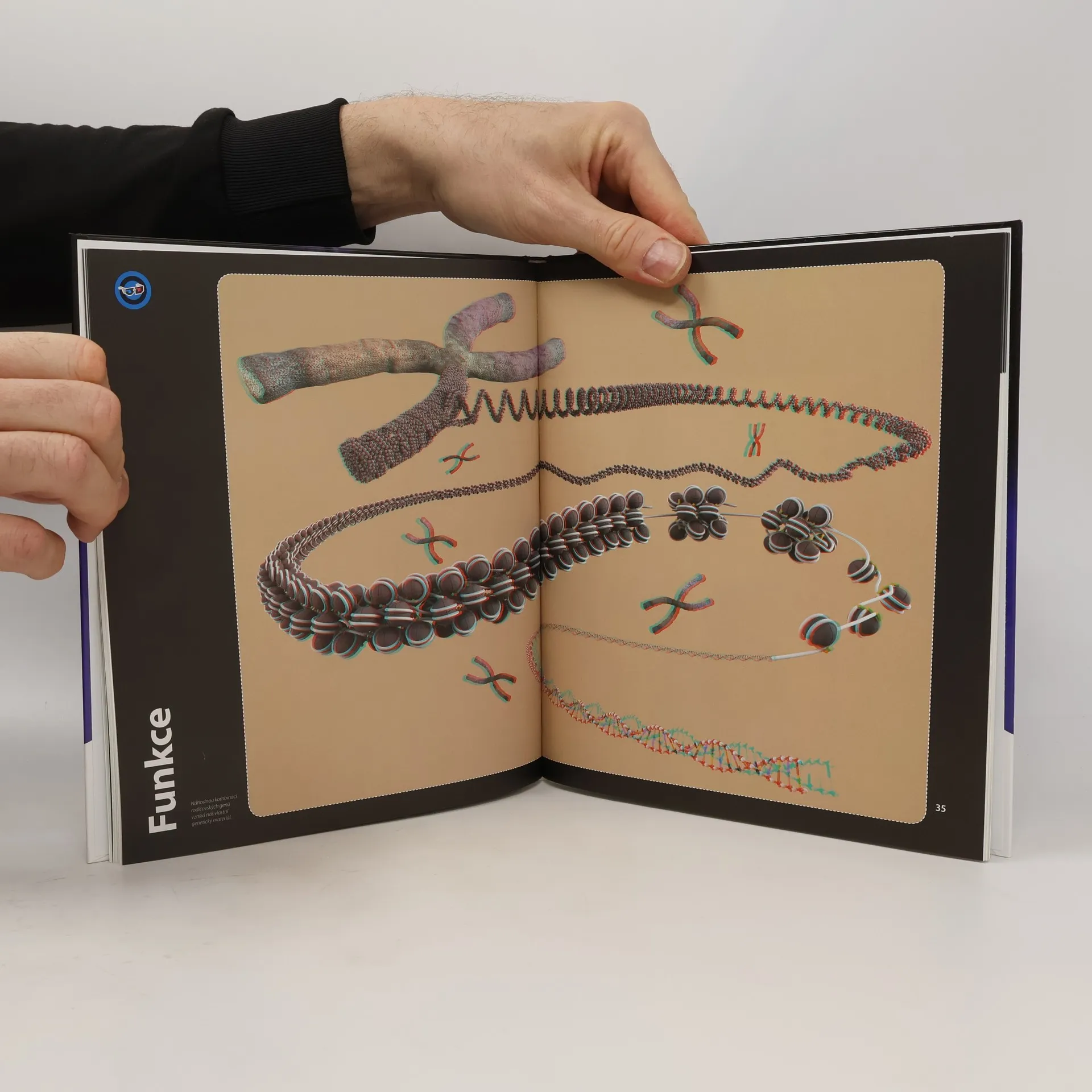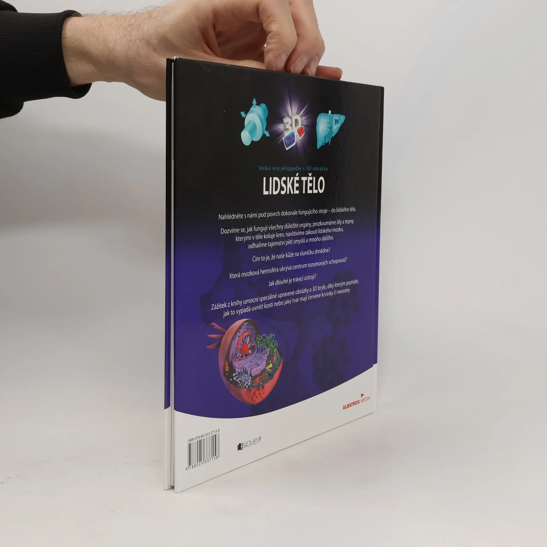 Nahlédněne s námi pod povrch dokonale fungujícího stroje - do lidského těla. Dozvíme se, jak fungují všechny důležité orgány, prozkoumáme žíly a tepny, kterými v těle koluje krev, navštívíme zákoutí lidského mozku, odhalíme tajemství pěti smyslů a mnoho dalšího. Čím to je, že naše kůže na sluníčku zhnědne? Která mozková hemisféra ukrývá centrum rozumových schopností? Jak dlouhé je trávicí ústrojí? Zážitek z knihy umocní speciálně upravené obrázky a 3D brýle, díky kterým poznáte, jak to vypadá uvnitř kosti nebo jaký tvar mají červené krvinky či neurony.