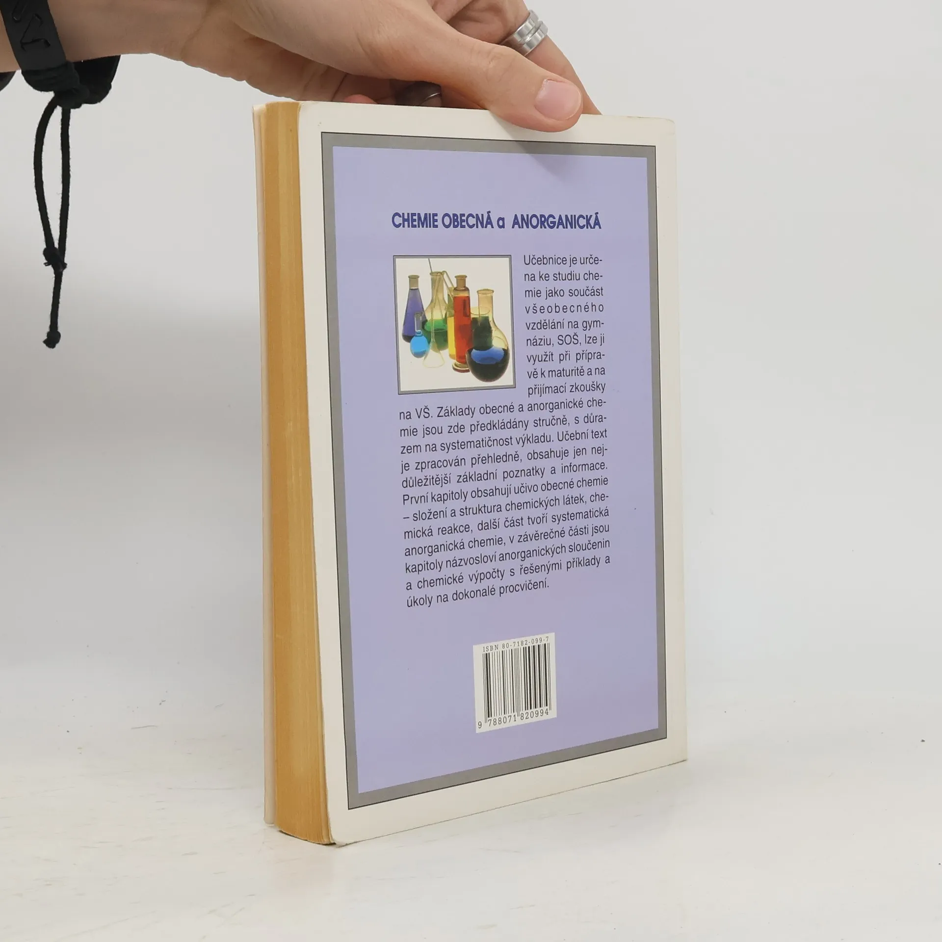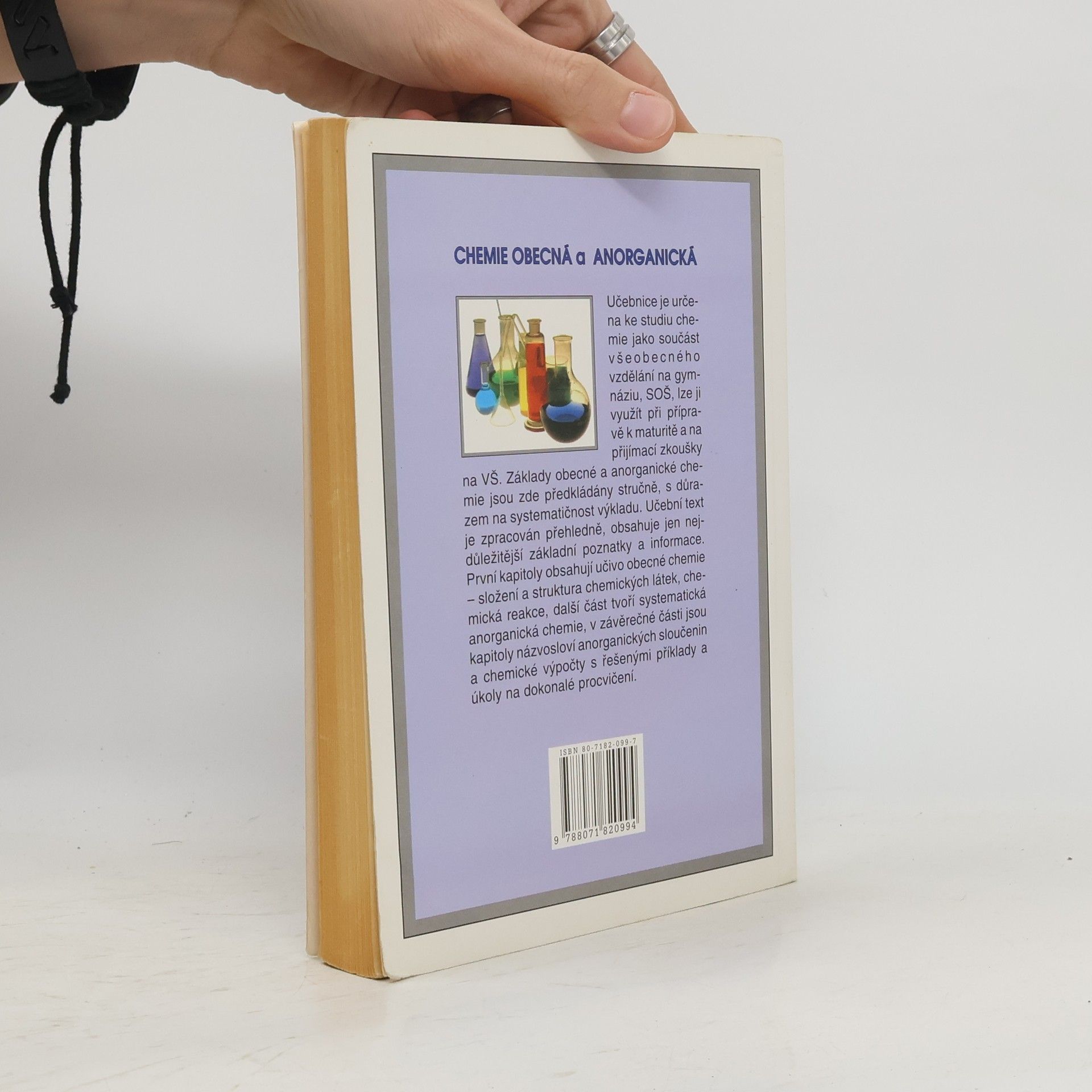 Základy obecné a anorganické chemie jsou předkládány stručně, s důrazem na systematičnost výkladu. Učební text jednotlivých kapitol je ukončen kontrolními otázkami k procvičení učiva. Užitý styl výkladu vychází z pedagogické praxe, obsahuje jen nejdůležitější základní poznatky a podstatná fakta. Učebnice je určena ke studiu chemie na gymnáziích, středních odborných školách, lze ji použít při přípravě k maturitě a na přijímací zkoušky z chemie na VŠ (obory chemické, biologické, ekologické, lékařství atd.).